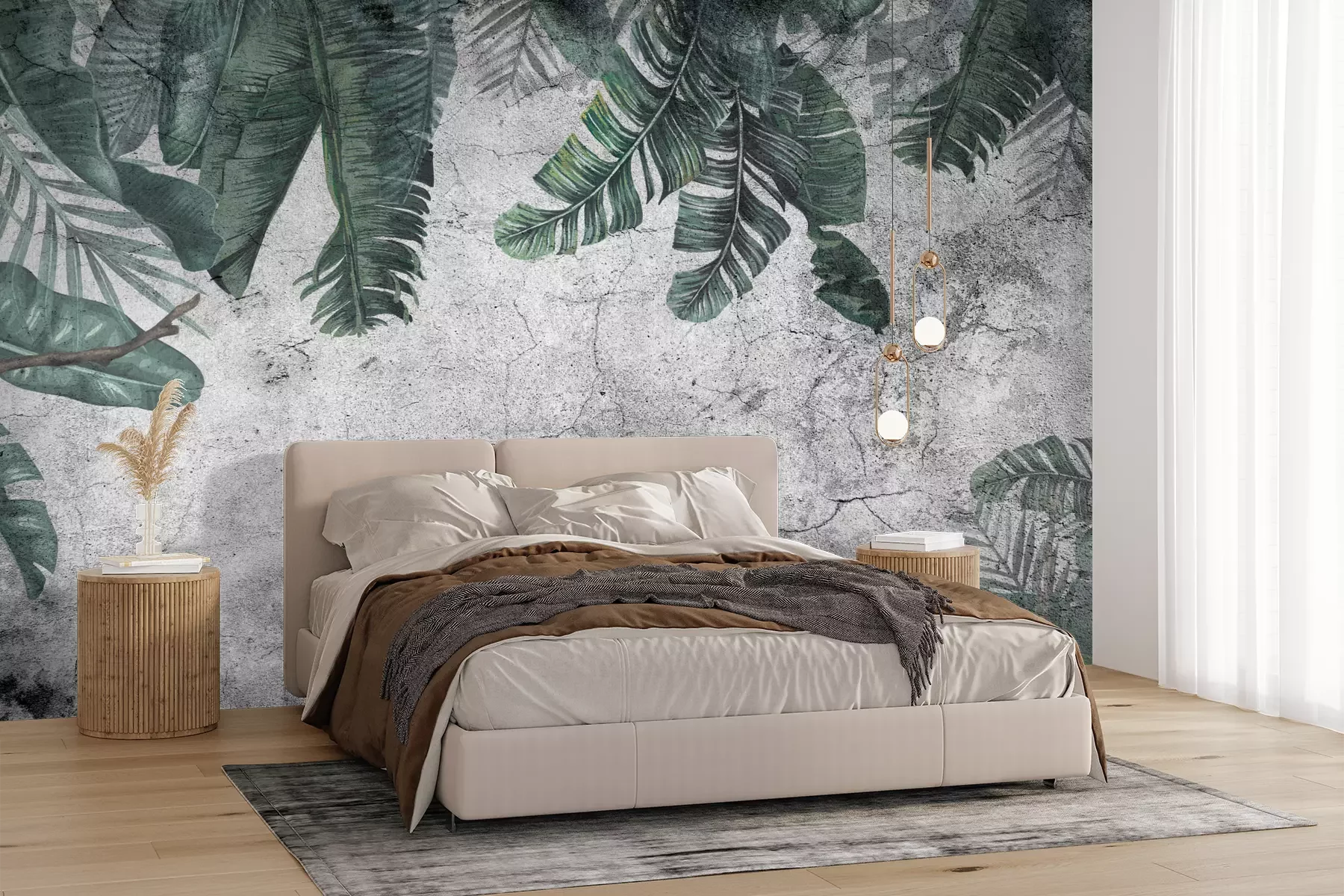 Het materiaal Premium+ is een gestructureerd vinyl op vlies met een gewicht van 255 g/m², dat kleine oneffenheden in de muur effectief camoufleert. De subtiele structuur van fijn zand geeft het oppervlak een exclusieve uitstraling, terwijl de halfmatte afwerking de diepte van de kleuren benadrukt. Het materiaal is dampdoorlatend, waardoor het ook in de keuken en badkamer kan worden gebruikt. De maximale breedte van één baan bedraagt 100 cm – bij grotere afmetingen wordt het fotobehang in meerdere gelijke banen verdeeld. De lijm wordt direct op de muur aangebracht en het behang wordt rand-aan-rand geplakt, wat zorgt voor een esthetisch resultaat zonder zichtbare naden. Het oppervlak kan gemakkelijk worden schoongemaakt door het voorzichtig af te nemen met een vochtige doek.