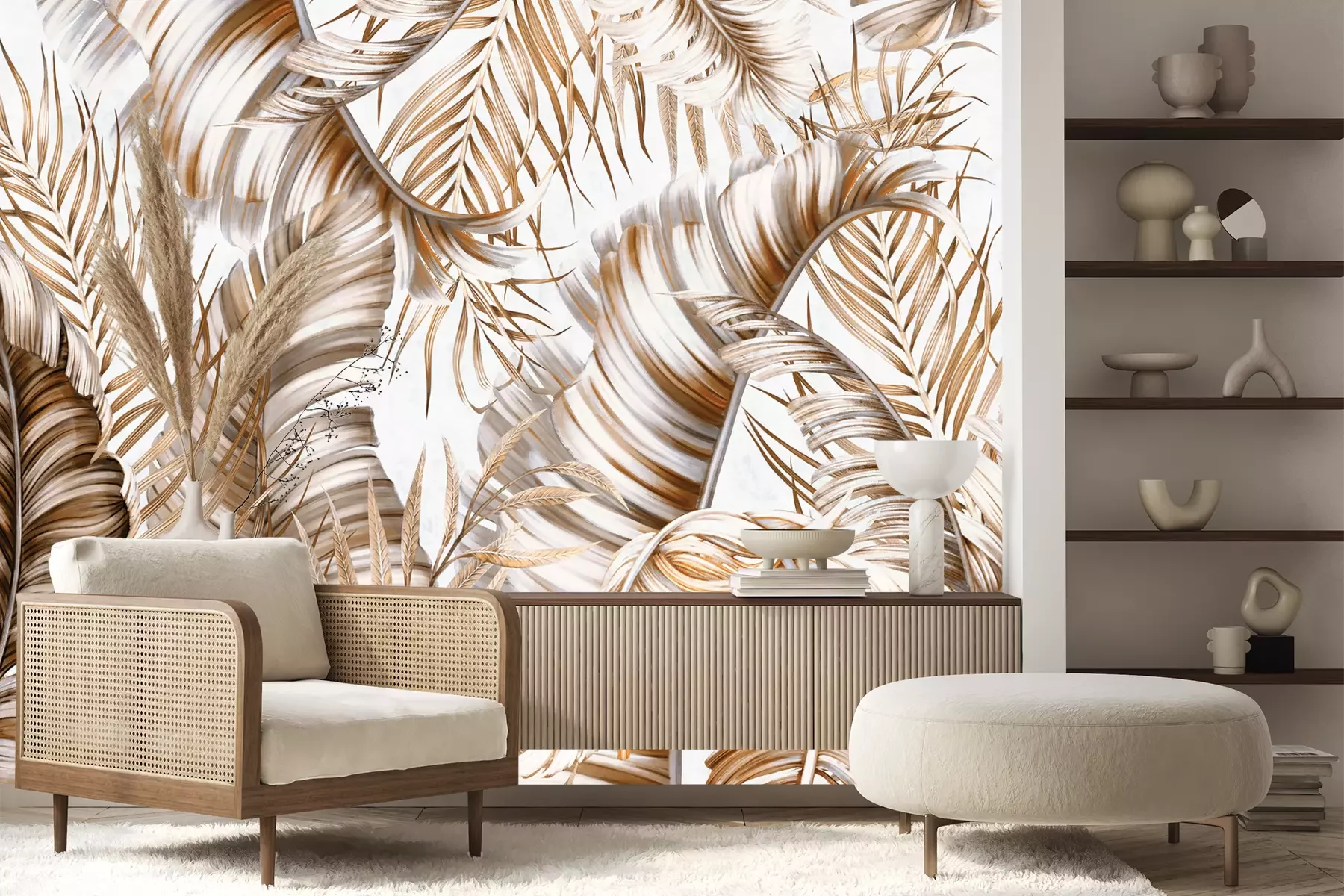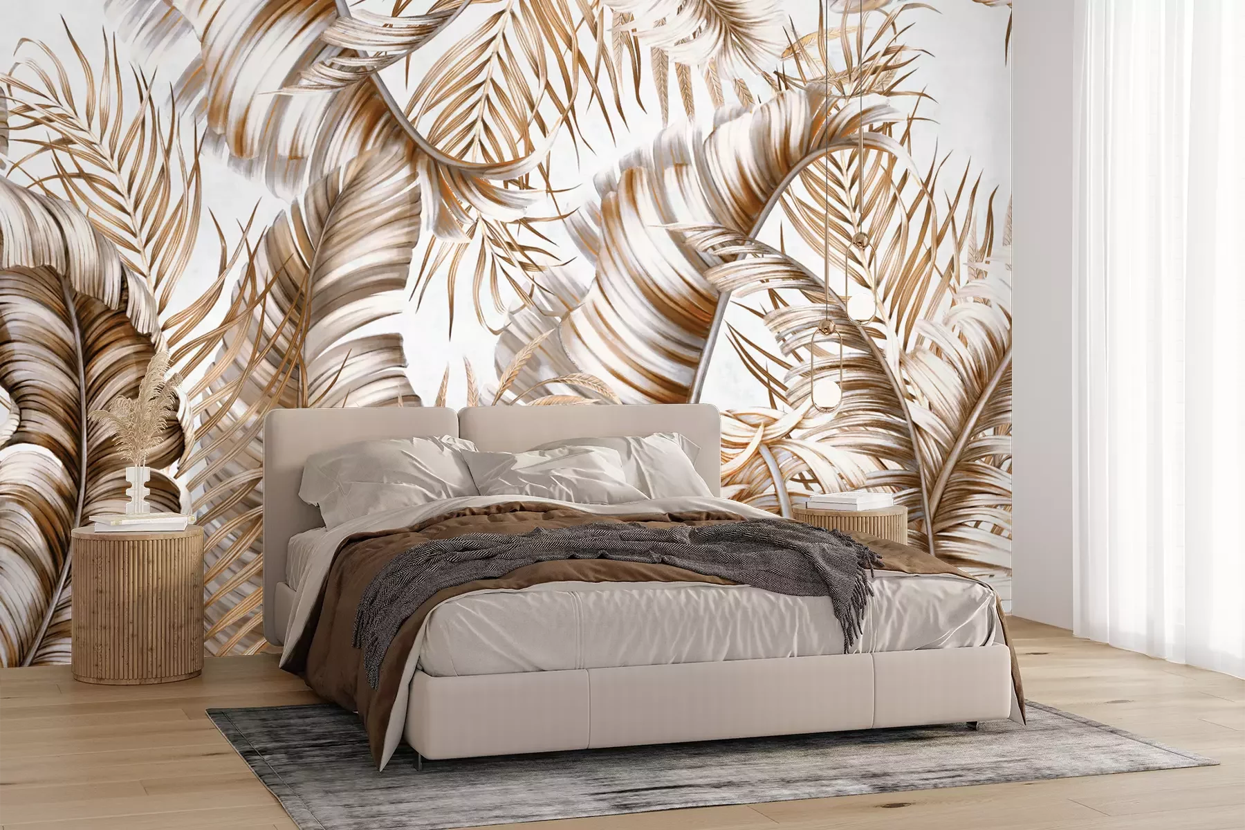 Het materiaal Premium+ is een gestructureerd vinyl op vlies met een gewicht van 255 g/m², dat kleine oneffenheden in de muur effectief camoufleert. De subtiele structuur van fijn zand geeft het oppervlak een exclusieve uitstraling, terwijl de halfmatte afwerking de diepte van de kleuren benadrukt. Het materiaal is dampdoorlatend, waardoor het ook in de keuken en badkamer kan worden gebruikt. De maximale breedte van één baan bedraagt 100 cm – bij grotere afmetingen wordt het fotobehang in meerdere gelijke banen verdeeld. De lijm wordt direct op de muur aangebracht en het behang wordt rand-aan-rand geplakt, wat zorgt voor een esthetisch resultaat zonder zichtbare naden. Het oppervlak kan gemakkelijk worden schoongemaakt door het voorzichtig af te nemen met een vochtige doek.