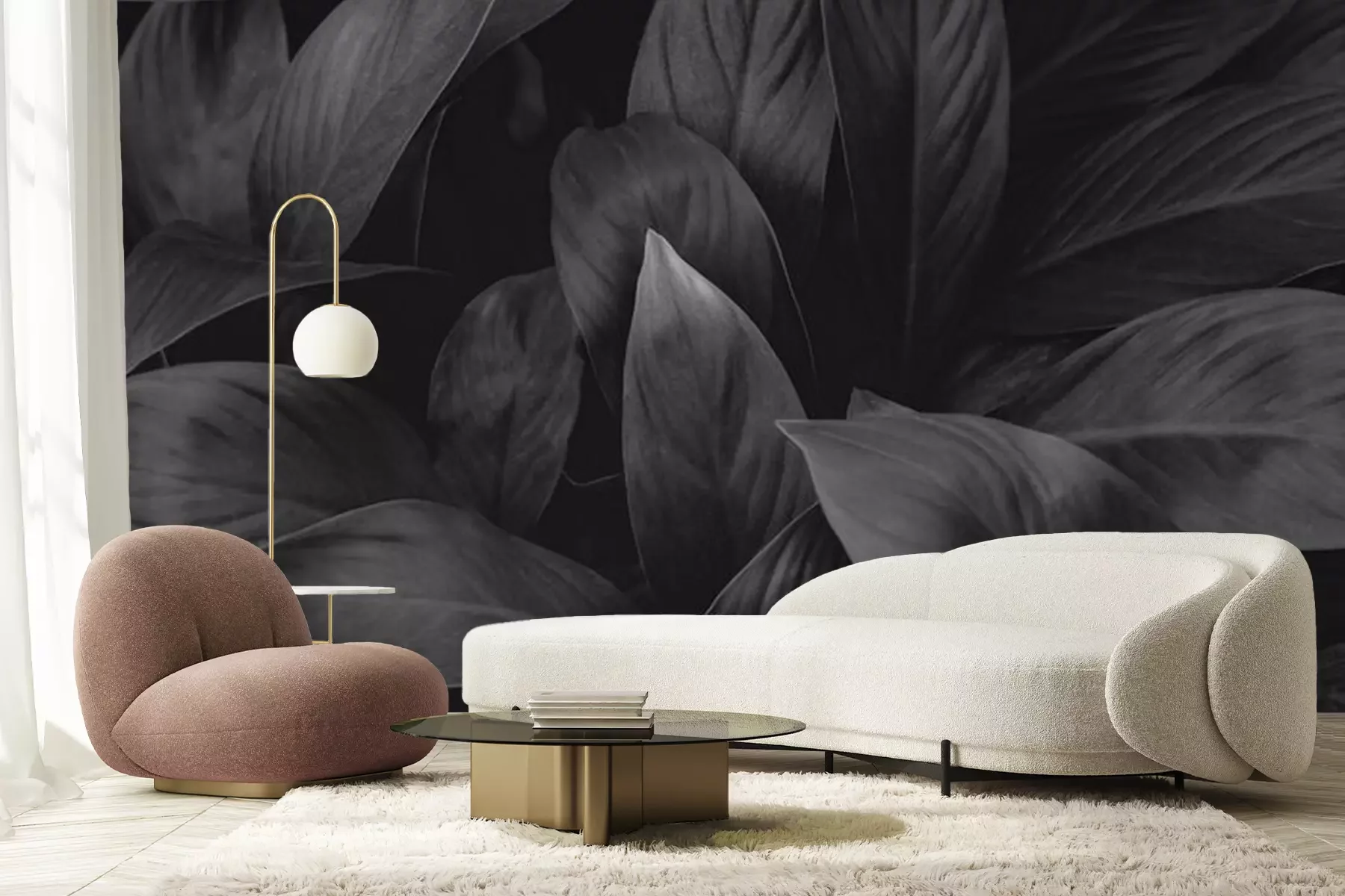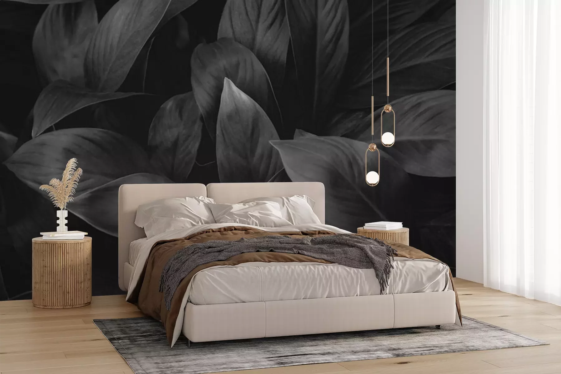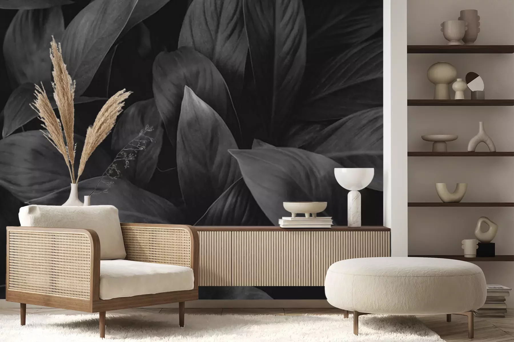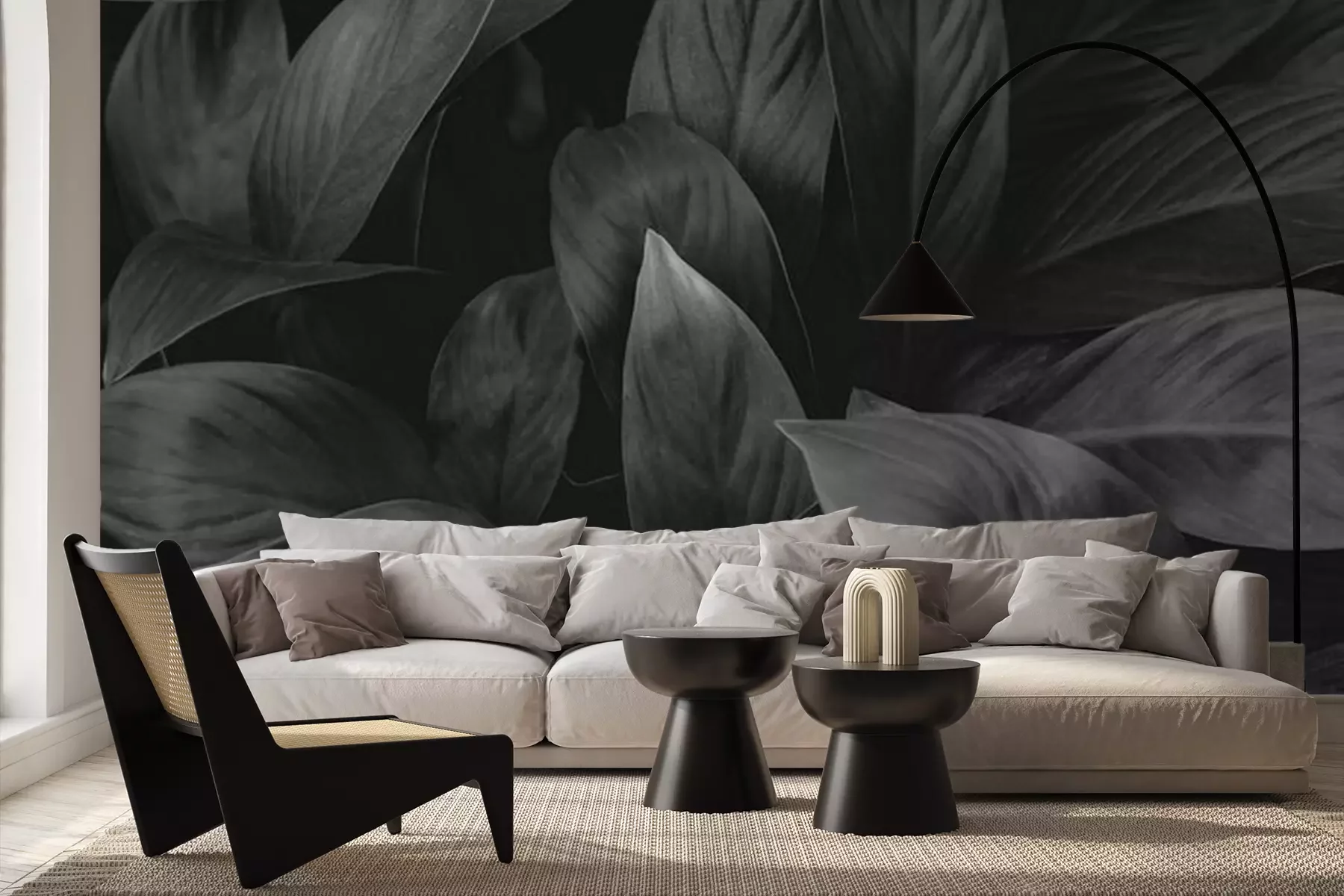 Fotobehang Tropische bladeren in zwart