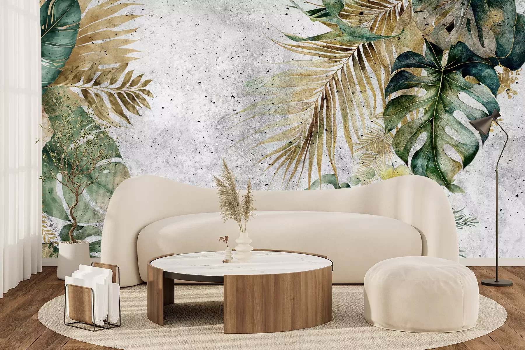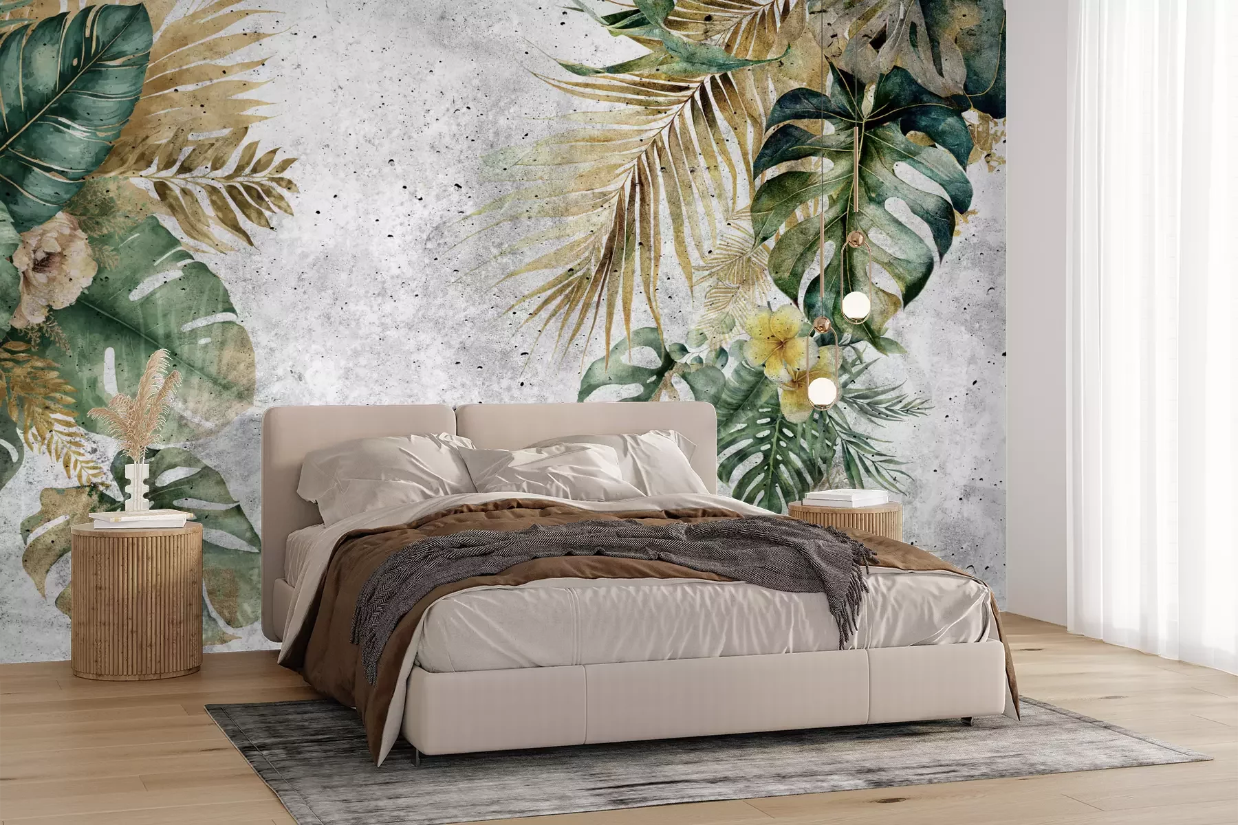 *Korting is niet van toepassing op lijmen, accessoires en cadeaubonnen.Het vintage fotobehang dat we hier presenteren, is een oplossing die al vele seizoenen erg populair is. Het is een voorbeeld van een uiterst originele decoratie die een geheel nieuw karakter aan het interieur geeft – expressief en een beetje gedurfd. Dit is geen typisch bloemrijk fotobehang. Tropische bladeren, afgebeeld tegen een ruw betonnen achtergrond, krijgen een moderne uitstraling. De uitstekende kwaliteit van onze print zorgt ervoor dat de betonimitatie er uiterst realistisch uitziet. Dit maakt het een perfecte keuze voor een kamer ingericht in industriële stijl, waar beton perfect past. De combinatie van plantaardige motieven met een ruwe textuur creëert een interessant effect en maakt dit type vintage fotobehang geschikt voor veel verschillende interieurstijlen. Je kunt er niet alleen een loft mee decoreren, maar ook een minimalistisch ingerichte woonkamer, waardoor de ruimte een gezelligere uitstraling krijgt. Ons geselecteerde fotobehang – bladeren en bloemen – verrijkt de ruimte subtiel en behoudt tegelijkertijd het evenwichtige karakter van de inrichting. Een andere plek waar dit patroon perfect tot zijn recht komt, is een romantische slaapkamer in pasteltinten. Zo’n stijl kan prachtig worden doorbroken met een opvallend element, en in deze rol is ons fotobehang ideaal. Bloemen passen perfect in een romantisch interieur, maar de betonnen achtergrond maakt het geheel veel origineler en verrassender. Omdat plantaardige motieven universeel en tijdloos zijn, is dit fotobehang de perfecte oplossing voor een langdurige decoratie. Het is ook de moeite waard om te vermelden dat dit type fotobehang niet alleen in de woonkamer of slaapkamer prachtig zal staan. Bloemen kunnen worden geïntegreerd in de meeste kamers van het huis – in de hal, eetkamer, keuken en zelfs in de badkamer. Bij Redro is er bij aankoop de optie voor laminering beschikbaar, wat betekent dat de banen worden beschermd met een beschermfolie. Als je een muur bij het bad of de wastafel wilt decoreren, is een waterbestendig fotobehang de beste keuze. Tropische bladeren als decoratief motief raden we ook aan voor commerciële ruimtes – schoonheids- en spa-salons, kapsalons of horecagelegenheden.