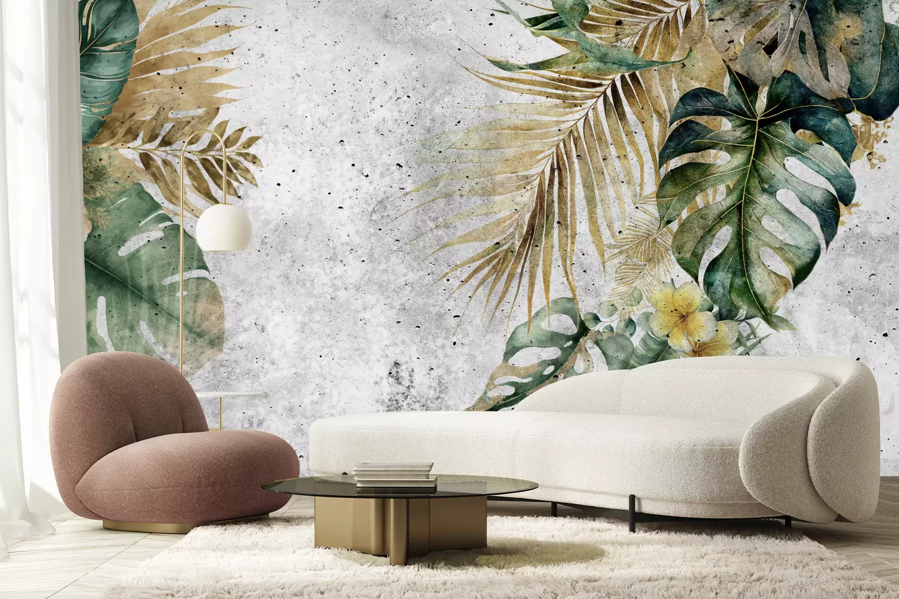 Het vintage fotobehang dat we hier presenteren, is een oplossing die al vele seizoenen erg populair is. Het is een voorbeeld van een uiterst originele decoratie die een geheel nieuw karakter aan het interieur geeft – expressief en een beetje gedurfd. Dit is geen typisch bloemrijk fotobehang. Tropische bladeren, afgebeeld tegen een ruw betonnen achtergrond, krijgen een moderne uitstraling. De uitstekende kwaliteit van onze print zorgt ervoor dat de betonimitatie er uiterst realistisch uitziet. Dit maakt het een perfecte keuze voor een kamer ingericht in industriële stijl, waar beton perfect past. De combinatie van plantaardige motieven met een ruwe textuur creëert een interessant effect en maakt dit type vintage fotobehang geschikt voor veel verschillende interieurstijlen. Je kunt er niet alleen een loft mee decoreren, maar ook een minimalistisch ingerichte woonkamer, waardoor de ruimte een gezelligere uitstraling krijgt. Ons geselecteerde fotobehang – bladeren en bloemen – verrijkt de ruimte subtiel en behoudt tegelijkertijd het evenwichtige karakter van de inrichting. Een andere plek waar dit patroon perfect tot zijn recht komt, is een romantische slaapkamer in pasteltinten. Zo’n stijl kan prachtig worden doorbroken met een opvallend element, en in deze rol is ons fotobehang ideaal. Bloemen passen perfect in een romantisch interieur, maar de betonnen achtergrond maakt het geheel veel origineler en verrassender. Omdat plantaardige motieven universeel en tijdloos zijn, is dit fotobehang de perfecte oplossing voor een langdurige decoratie. Het is ook de moeite waard om te vermelden dat dit type fotobehang niet alleen in de woonkamer of slaapkamer prachtig zal staan. Bloemen kunnen worden geïntegreerd in de meeste kamers van het huis – in de hal, eetkamer, keuken en zelfs in de badkamer. Bij Redro is er bij aankoop de optie voor laminering beschikbaar, wat betekent dat de banen worden beschermd met een beschermfolie. Als je een muur bij het bad of de wastafel wilt decoreren, is een waterbestendig fotobehang de beste keuze. Tropische bladeren als decoratief motief raden we ook aan voor commerciële ruimtes – schoonheids- en spa-salons, kapsalons of horecagelegenheden.