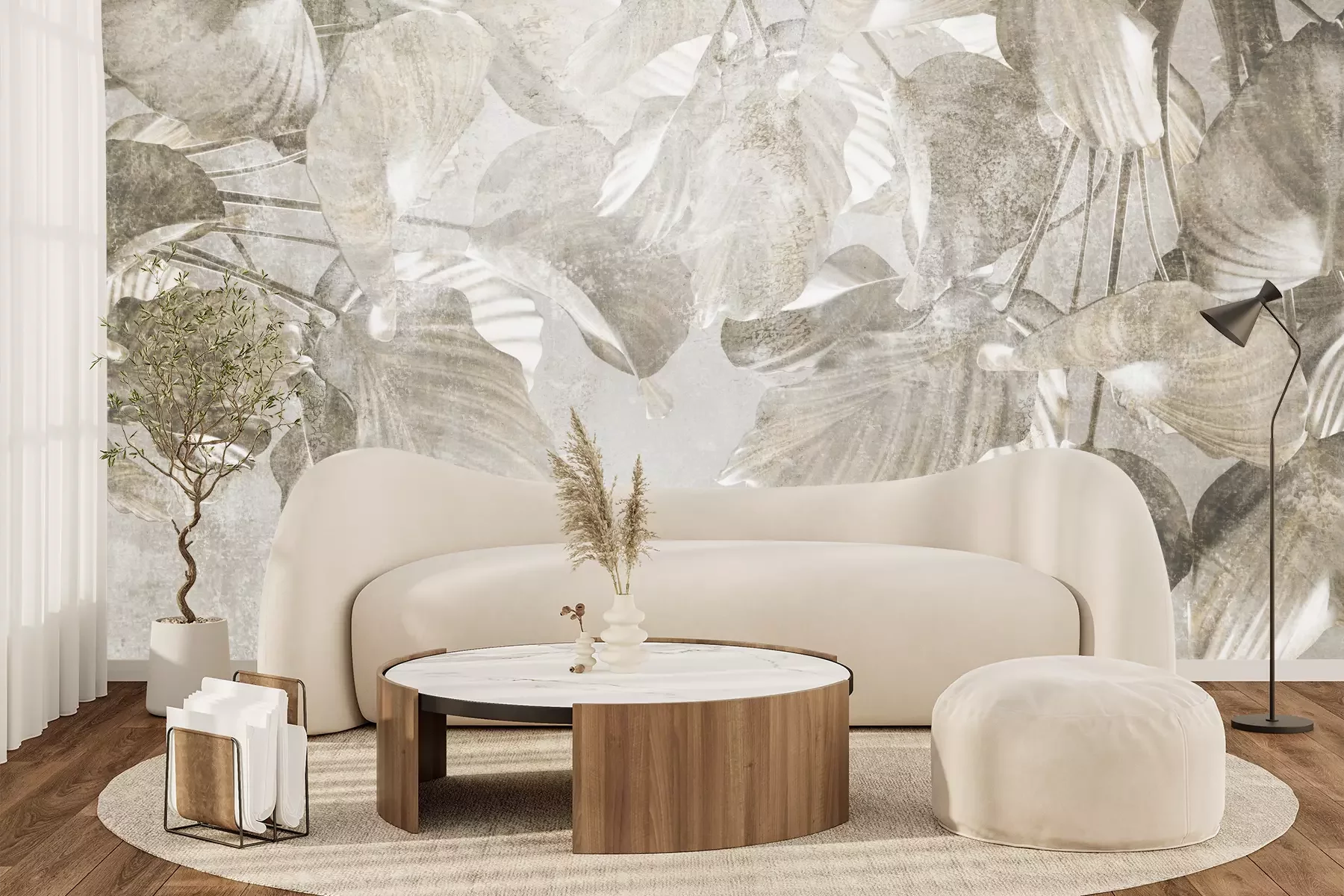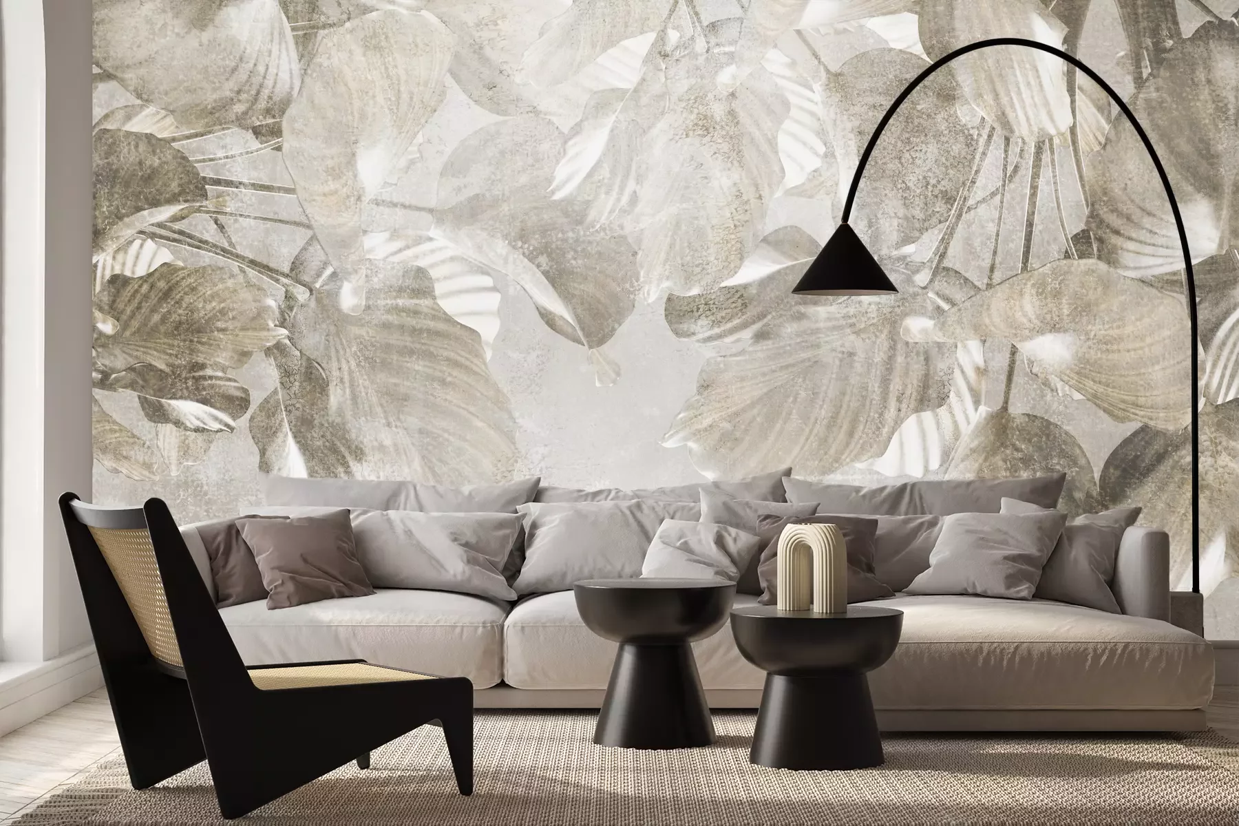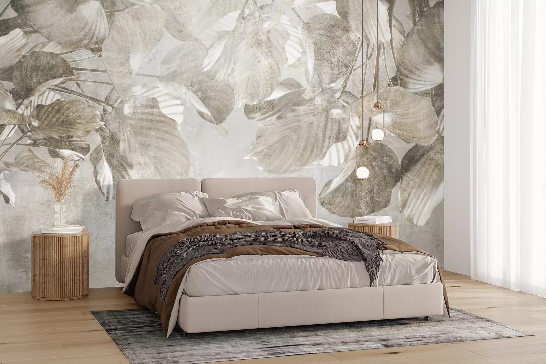 Het materiaal Premium+ is een gestructureerd vinyl op vlies met een gewicht van 255 g/m², dat kleine oneffenheden in de muur effectief camoufleert. De subtiele structuur van fijn zand geeft het oppervlak een exclusieve uitstraling, terwijl de halfmatte afwerking de diepte van de kleuren benadrukt. Het materiaal is dampdoorlatend, waardoor het ook in de keuken en badkamer kan worden gebruikt. De maximale breedte van één baan bedraagt 100 cm – bij grotere afmetingen wordt het fotobehang in meerdere gelijke banen verdeeld. De lijm wordt direct op de muur aangebracht en het behang wordt rand-aan-rand geplakt, wat zorgt voor een esthetisch resultaat zonder zichtbare naden. Het oppervlak kan gemakkelijk worden schoongemaakt door het voorzichtig af te nemen met een vochtige doek.