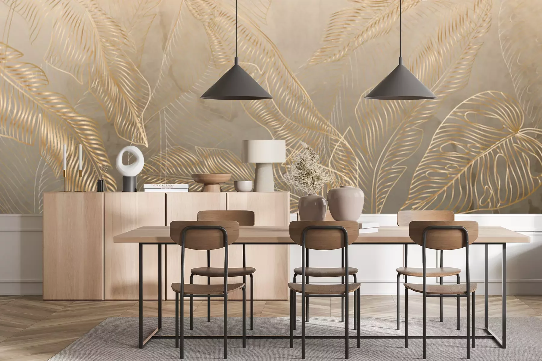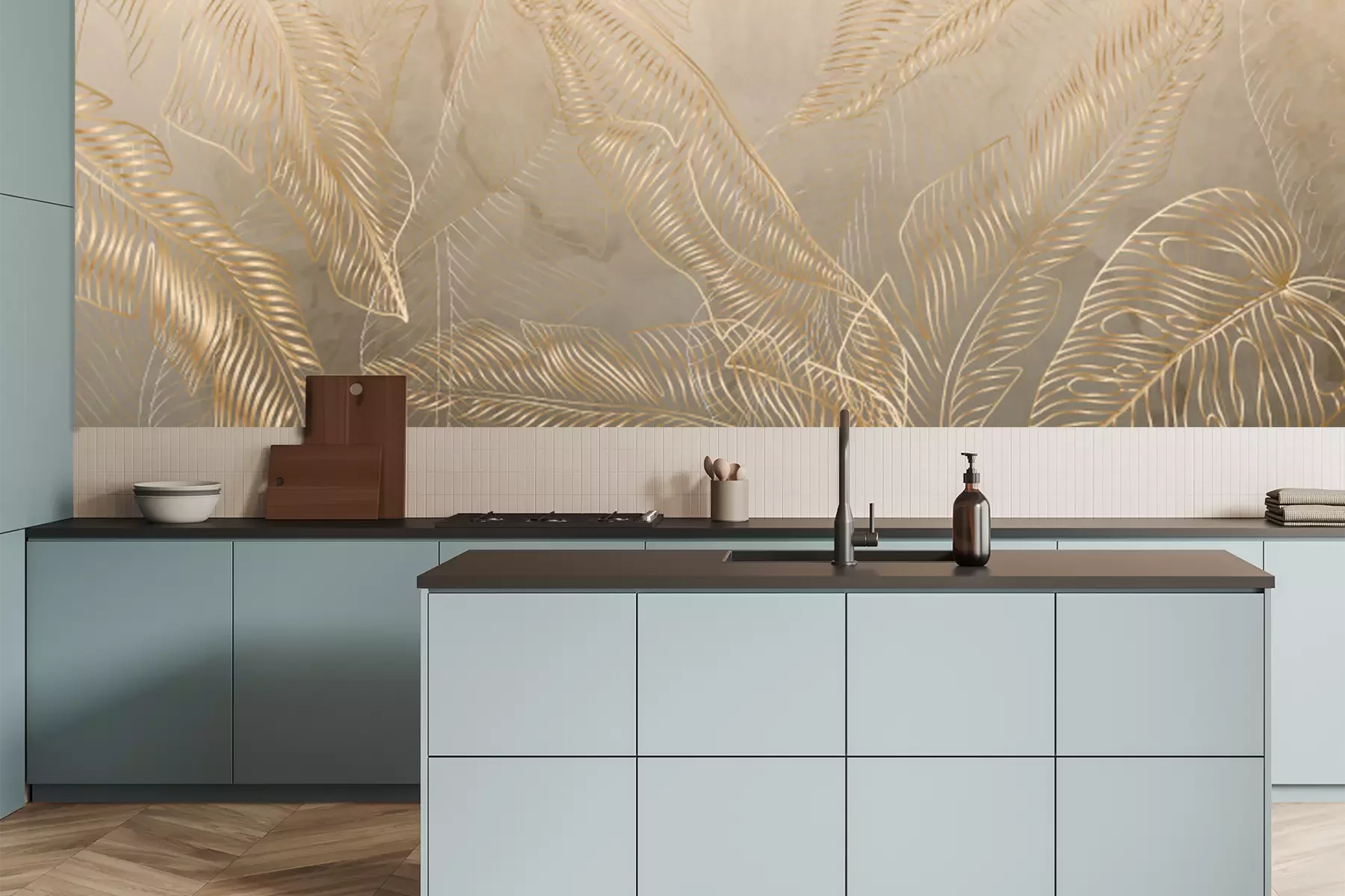 Fotobehang Tropische bladeren op een aquarel achtergrond