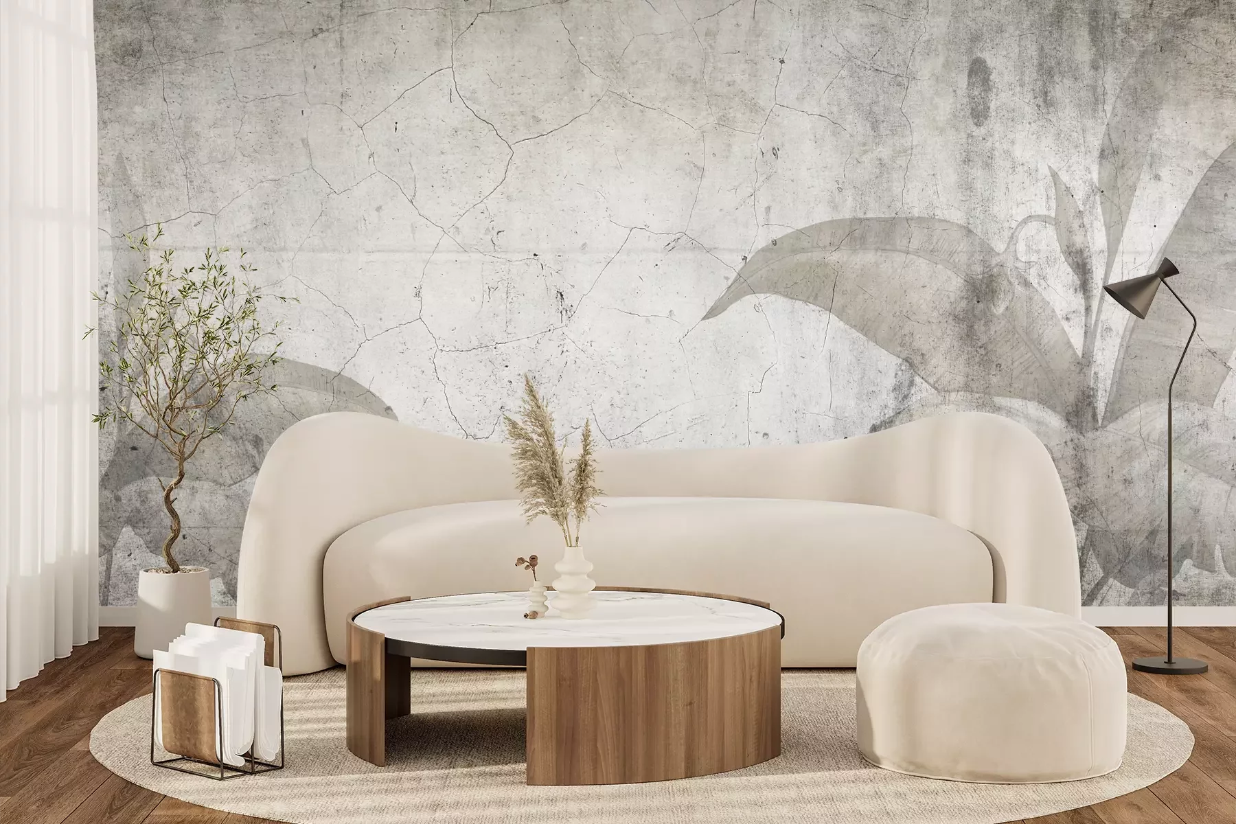 Het materiaal Premium+ is een gestructureerd vinyl op vlies met een gewicht van 255 g/m², dat kleine oneffenheden in de muur effectief camoufleert. De subtiele structuur van fijn zand geeft het oppervlak een exclusieve uitstraling, terwijl de halfmatte afwerking de diepte van de kleuren benadrukt. Het materiaal is dampdoorlatend, waardoor het ook in de keuken en badkamer kan worden gebruikt. De maximale breedte van één baan bedraagt 100 cm – bij grotere afmetingen wordt het fotobehang in meerdere gelijke banen verdeeld. De lijm wordt direct op de muur aangebracht en het behang wordt rand-aan-rand geplakt, wat zorgt voor een esthetisch resultaat zonder zichtbare naden. Het oppervlak kan gemakkelijk worden schoongemaakt door het voorzichtig af te nemen met een vochtige doek.
