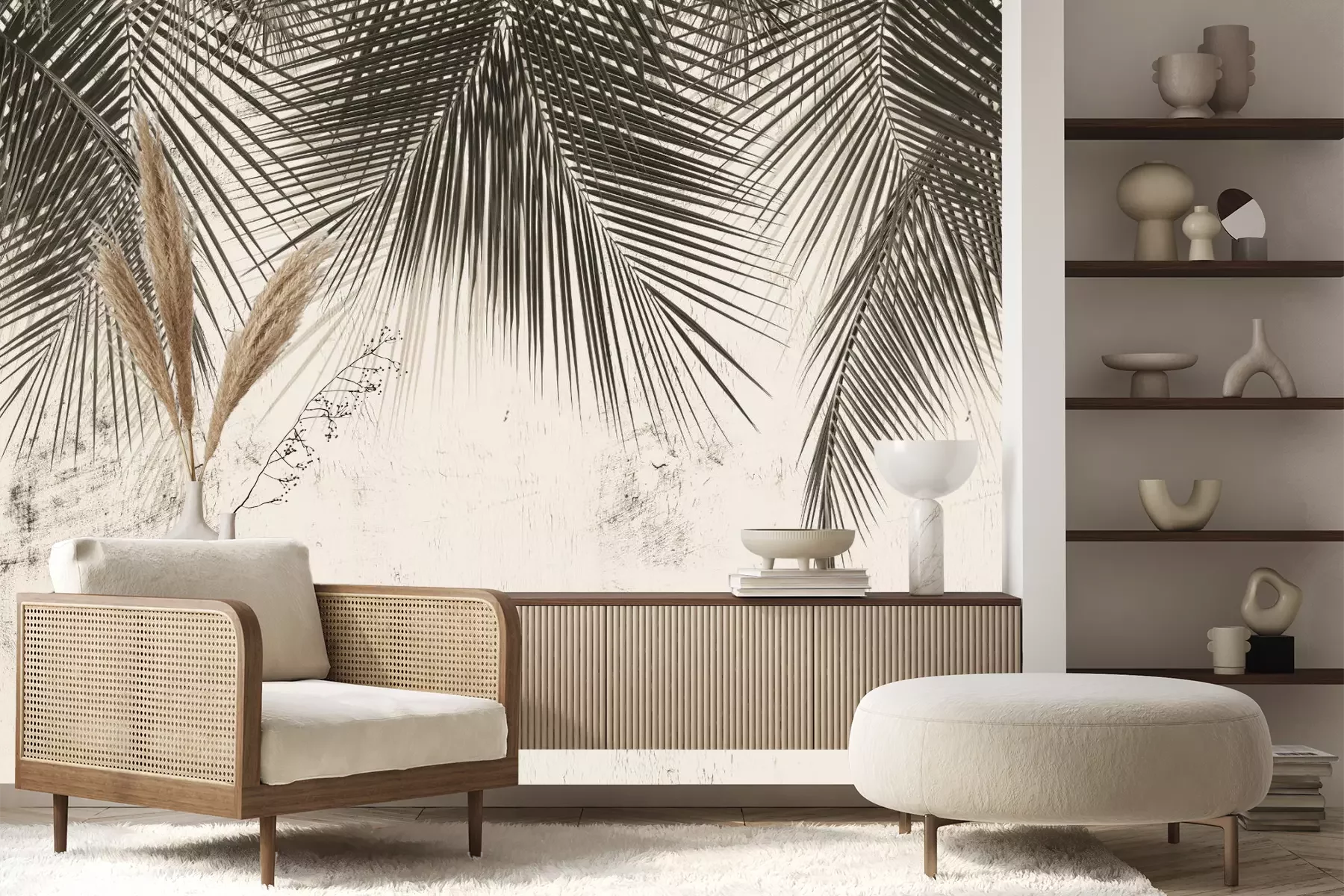 Het materiaal Premium+ is een gestructureerd vinyl op vlies met een gewicht van 255 g/m², dat kleine oneffenheden in de muur effectief camoufleert. De subtiele structuur van fijn zand geeft het oppervlak een exclusieve uitstraling, terwijl de halfmatte afwerking de diepte van de kleuren benadrukt. Het materiaal is dampdoorlatend, waardoor het ook in de keuken en badkamer kan worden gebruikt. De maximale breedte van één baan bedraagt 100 cm – bij grotere afmetingen wordt het fotobehang in meerdere gelijke banen verdeeld. De lijm wordt direct op de muur aangebracht en het behang wordt rand-aan-rand geplakt, wat zorgt voor een esthetisch resultaat zonder zichtbare naden. Het oppervlak kan gemakkelijk worden schoongemaakt door het voorzichtig af te nemen met een vochtige doek.