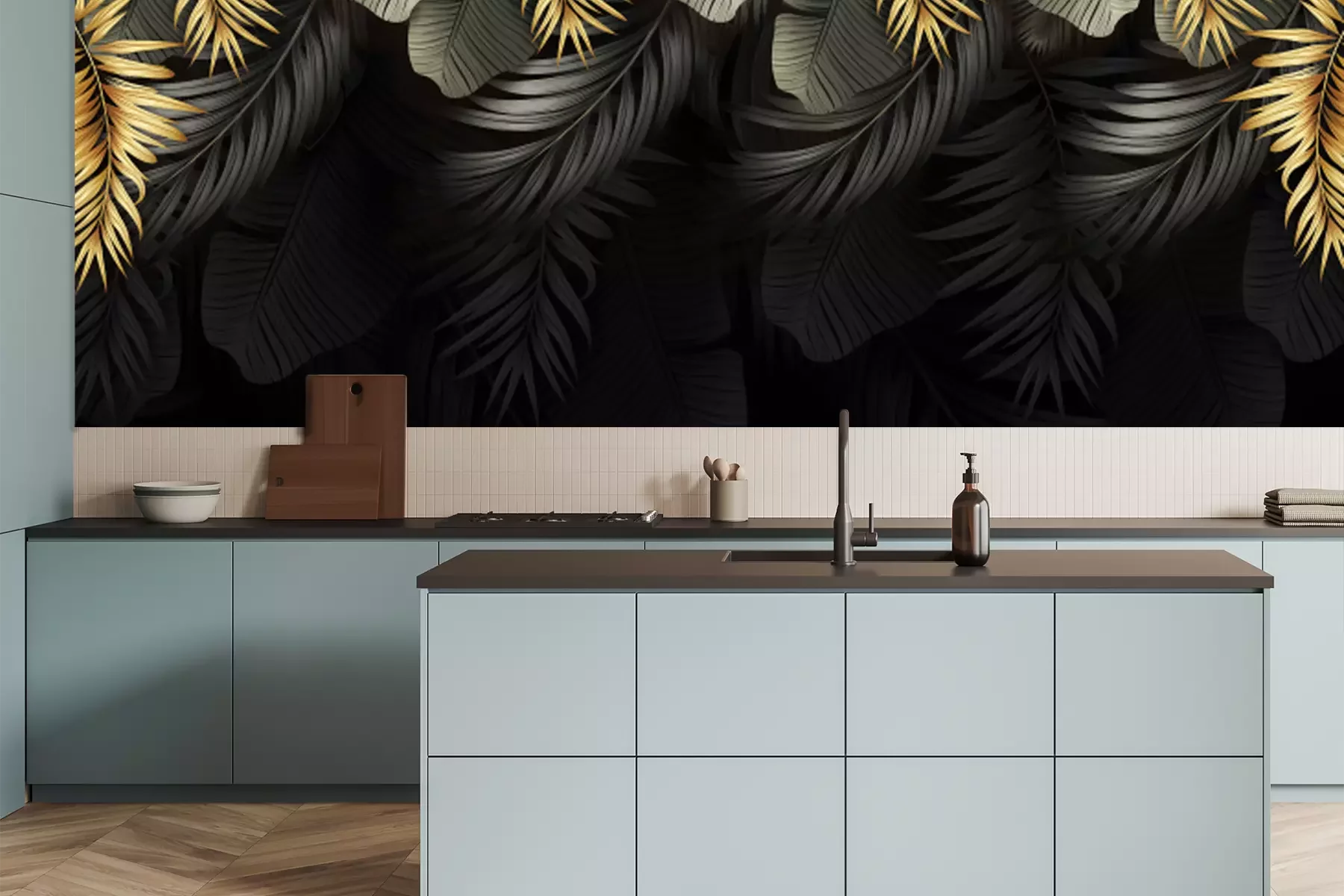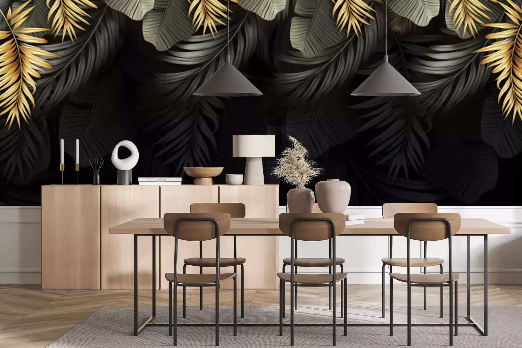 Fotobehang Tropische bladeren op een zwarte achtergrond