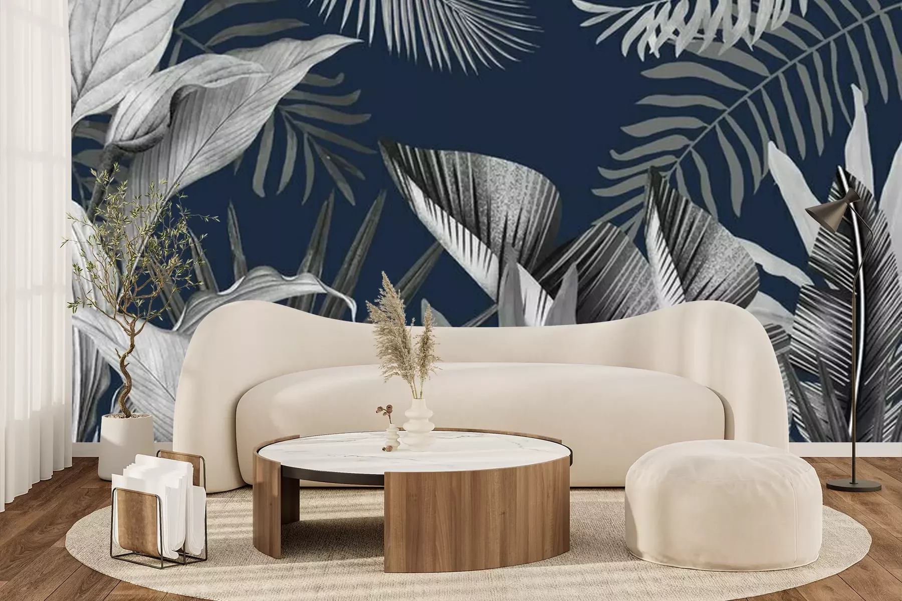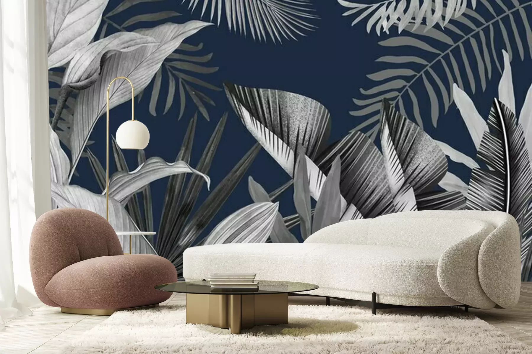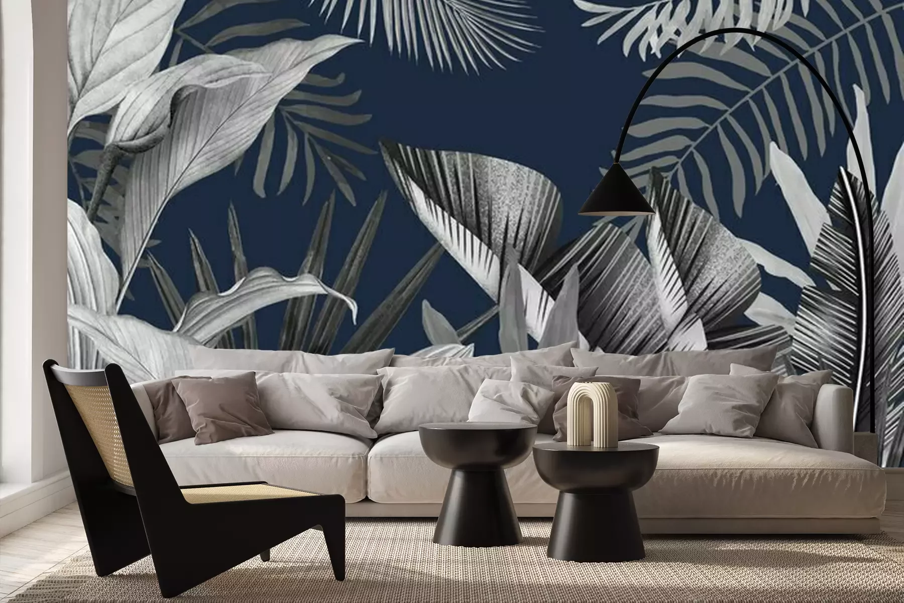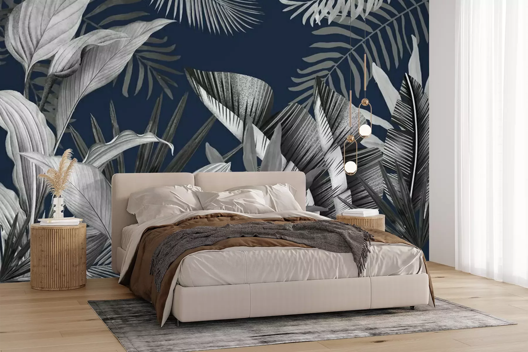 Botanisch patroon in grijsWe beginnen de beschrijving van ons geselecteerde product door de vraag te beantwoorden in hoeveel verschillende interieurs een dergelijk kan fotobehang worden gebruikt. Tropische bladeren, wat voor velen verrassend kan zijn, zijn een echt universeel motief. Ze kunnen zowel in elegante als minimalistische interieurs worden gebruikt. Het is het gemakkelijkst om dit te illustreren met enkele voorbeelden. Vanwege het ingetogen kleurenschema, dat op zwart en grijstinten is gebaseerd, is het een geweldige decoratieve accent voor een kamer in industriële stijl. Zowel in combinatie met een bakstenen als een betonnen muur zal een dergelijk fotobehang er geweldig uitzien. Tropische bladeren doorbreken het ascetische karakter van het interieur en geven het een gezelligere uitstraling. Een totaal andere oplossing is een kamer in glamourstijl. In een ruimte met vergulde accenten en een bank in een malachiet-, kobalt- of paarse tint, zal het donkere, plantaardige motief een prachtige aanvulling op het geheel zijn. In een minimalistisch ingericht interieur, waar dit de hoofdrol speelt, zal de fotobehang jungle een snelle manier zijn om een ruimte die iets miste, op te fleuren. Dit is een motief dat perfect past in de woonkamer. Het zal ook goed werken in de slaapkamer, omdat de ruimte voor ontspanning zal worden gevuld met planten. Een andere suggestie is het thuiskantoor, waar een dergelijk fotobehang er prachtig zal uitzien. Tropische bladeren zullen een uitstekend decor vormen voor het dagelijkse werk, en gunstige voorwaarden scheppen voor concentratie. Het patroon is noch eentonig, noch te opzichtig om af te leiden. Dankzij de hoge kwaliteit van onze producten kunnen ze zelfs in een veeleisende ruimte zoals de badkamer worden gebruikt. Een ontspannend bad omgeven door weelderige planten? De oplossing is een fotobehang. Tropische bladeren kunnen de muur sieren bij de wastafel of de badkuip. Zoals je kunt zien, is dit een patroon met echt veel toepassingen. Omdat de natuur nooit uit de mode raakt, kunt u er zeker van zijn dat dit een oplossing is voor vele jaren, en niet alleen voor je eigen huis. Een dergelijk fotobehang zal ook goed passen in commerciële ruimtes. Jungle kan de hotellobby, een restaurant, een schoonheidssalon en zelfs een yogastudio versieren.