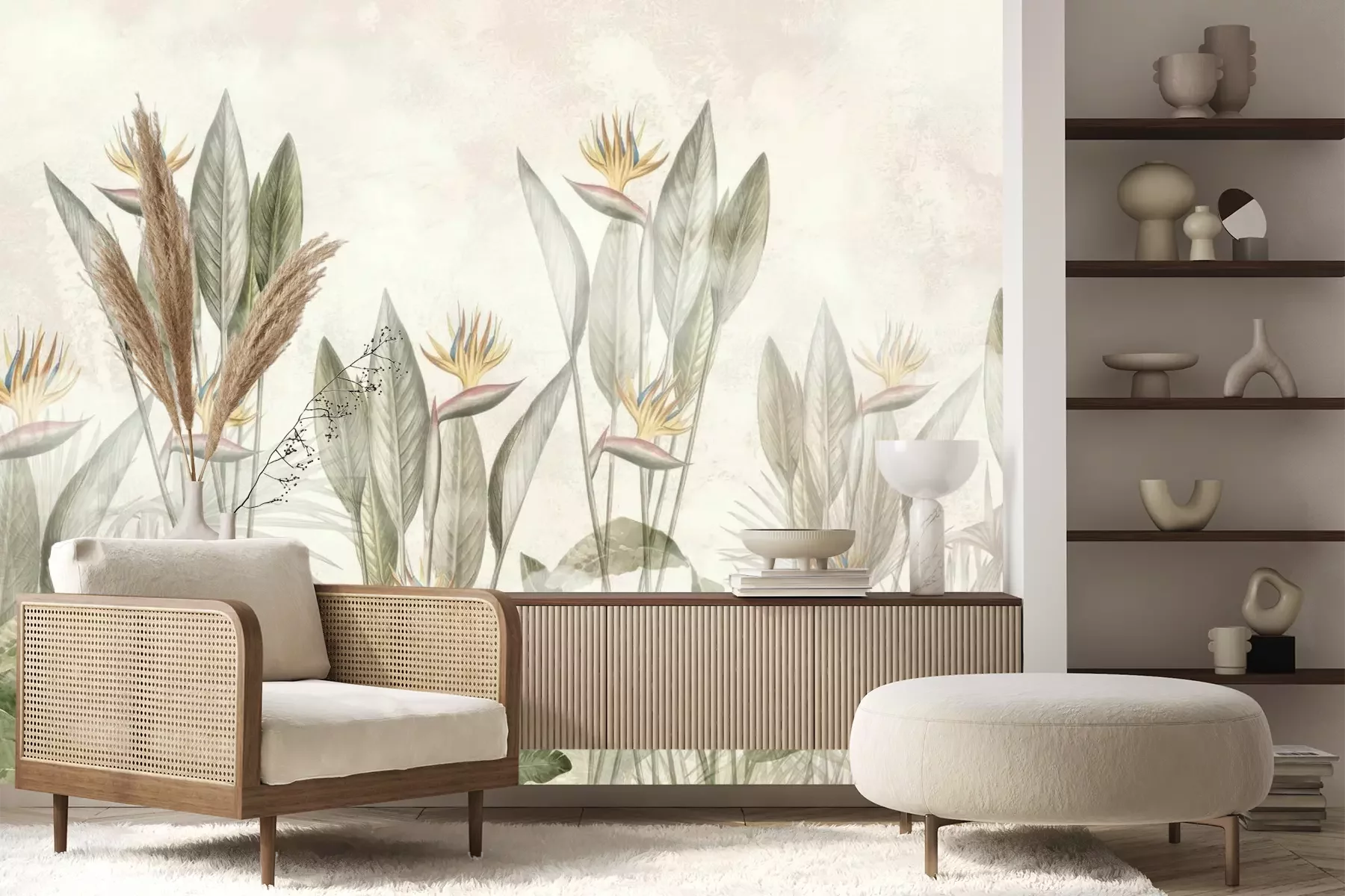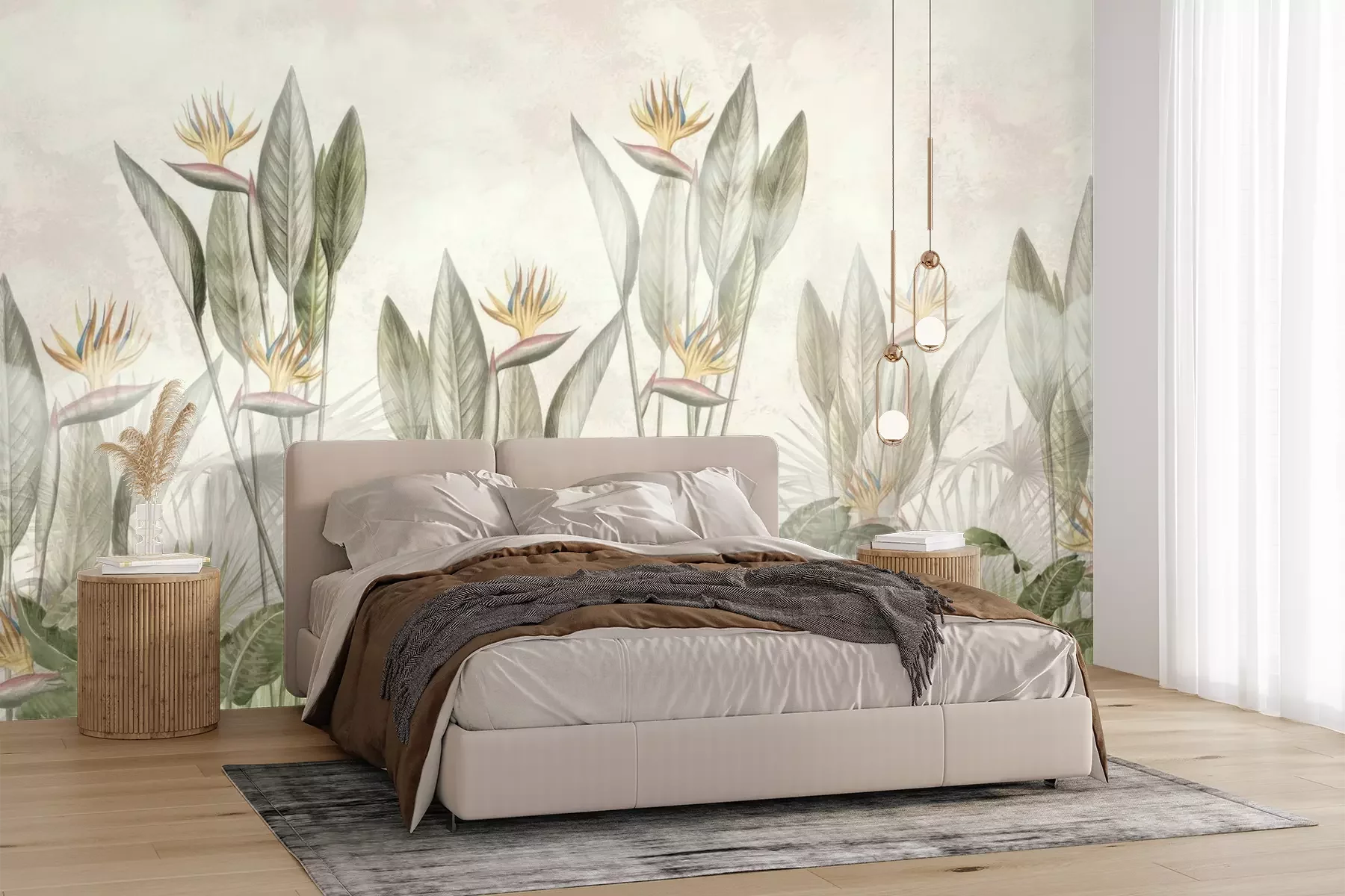 Het materiaal Premium+ is een gestructureerd vinyl op vlies met een gewicht van 255 g/m², dat kleine oneffenheden in de muur effectief camoufleert. De subtiele structuur van fijn zand geeft het oppervlak een exclusieve uitstraling, terwijl de halfmatte afwerking de diepte van de kleuren benadrukt. Het materiaal is dampdoorlatend, waardoor het ook in de keuken en badkamer kan worden gebruikt. De maximale breedte van één baan bedraagt 100 cm – bij grotere afmetingen wordt het fotobehang in meerdere gelijke banen verdeeld. De lijm wordt direct op de muur aangebracht en het behang wordt rand-aan-rand geplakt, wat zorgt voor een esthetisch resultaat zonder zichtbare naden. Het oppervlak kan gemakkelijk worden schoongemaakt door het voorzichtig af te nemen met een vochtige doek.