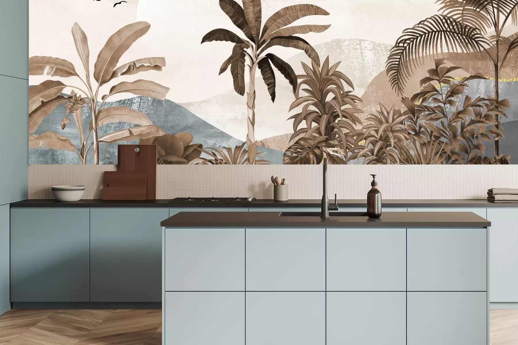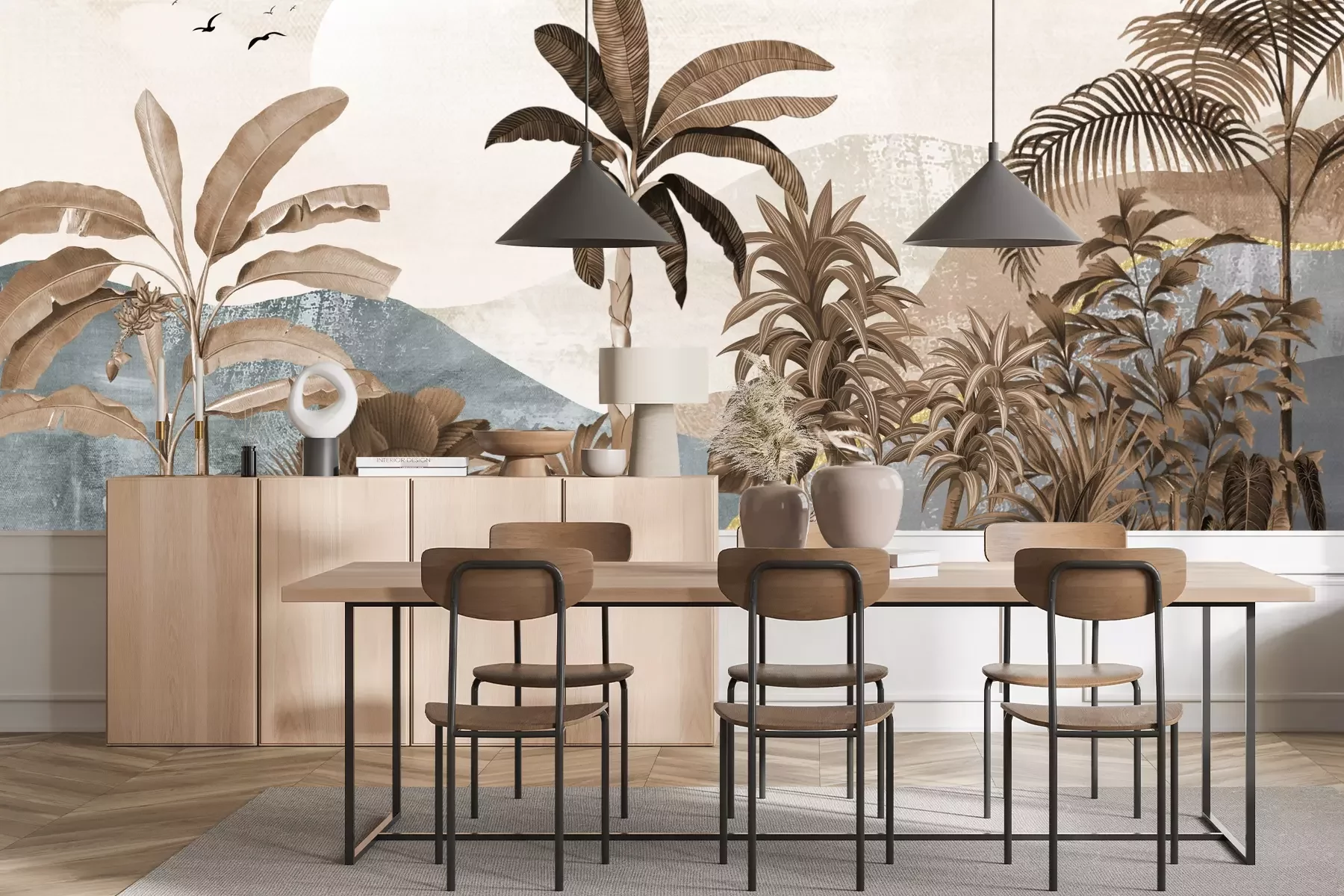 Het materiaal Premium+ is een gestructureerd vinyl op vlies met een gewicht van 255 g/m², dat kleine oneffenheden in de muur effectief camoufleert. De subtiele structuur van fijn zand geeft het oppervlak een exclusieve uitstraling, terwijl de halfmatte afwerking de diepte van de kleuren benadrukt. Het materiaal is dampdoorlatend, waardoor het ook in de keuken en badkamer kan worden gebruikt. De maximale breedte van één baan bedraagt 100 cm – bij grotere afmetingen wordt het fotobehang in meerdere gelijke banen verdeeld. De lijm wordt direct op de muur aangebracht en het behang wordt rand-aan-rand geplakt, wat zorgt voor een esthetisch resultaat zonder zichtbare naden. Het oppervlak kan gemakkelijk worden schoongemaakt door het voorzichtig af te nemen met een vochtige doek.