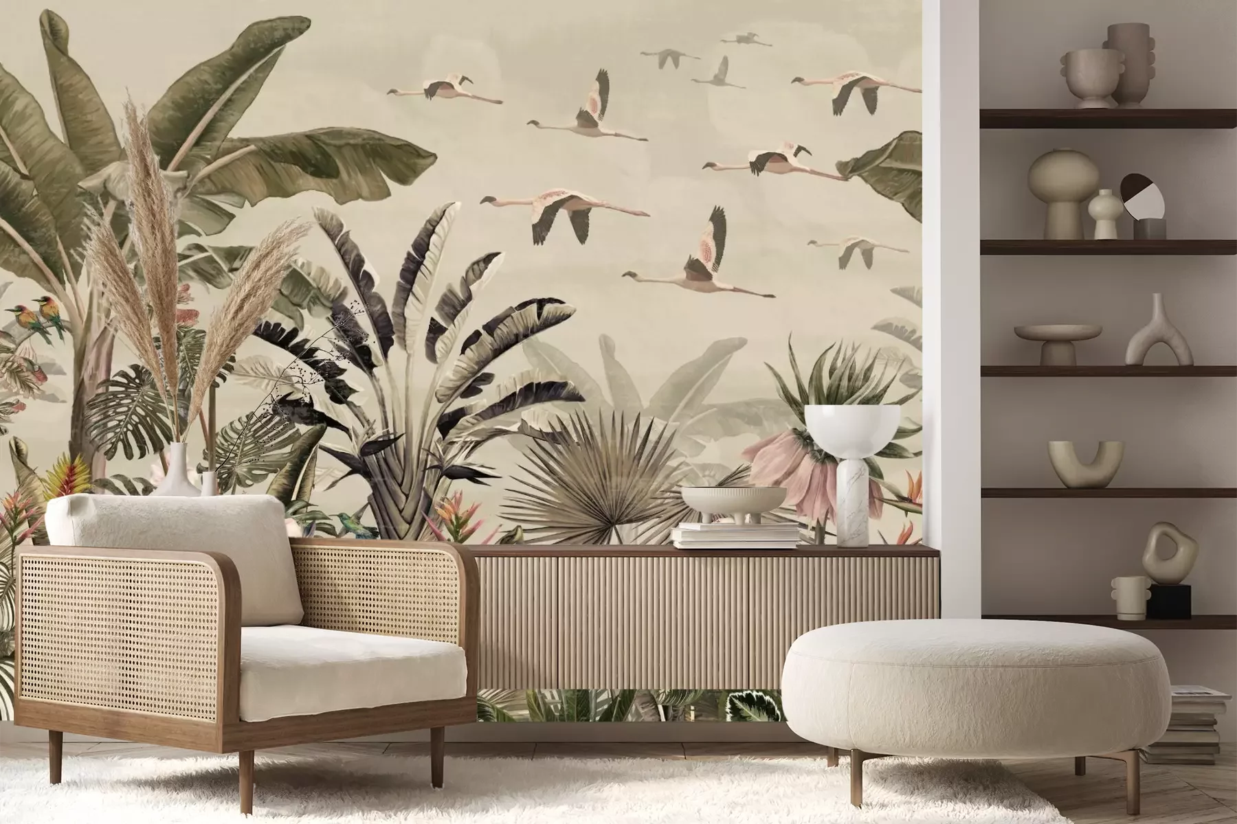 Het materiaal Premium+ is een gestructureerd vinyl op vlies met een gewicht van 255 g/m², dat kleine oneffenheden in de muur effectief camoufleert. De subtiele structuur van fijn zand geeft het oppervlak een exclusieve uitstraling, terwijl de halfmatte afwerking de diepte van de kleuren benadrukt. Het materiaal is dampdoorlatend, waardoor het ook in de keuken en badkamer kan worden gebruikt. De maximale breedte van één baan bedraagt 100 cm – bij grotere afmetingen wordt het fotobehang in meerdere gelijke banen verdeeld. De lijm wordt direct op de muur aangebracht en het behang wordt rand-aan-rand geplakt, wat zorgt voor een esthetisch resultaat zonder zichtbare naden. Het oppervlak kan gemakkelijk worden schoongemaakt door het voorzichtig af te nemen met een vochtige doek.