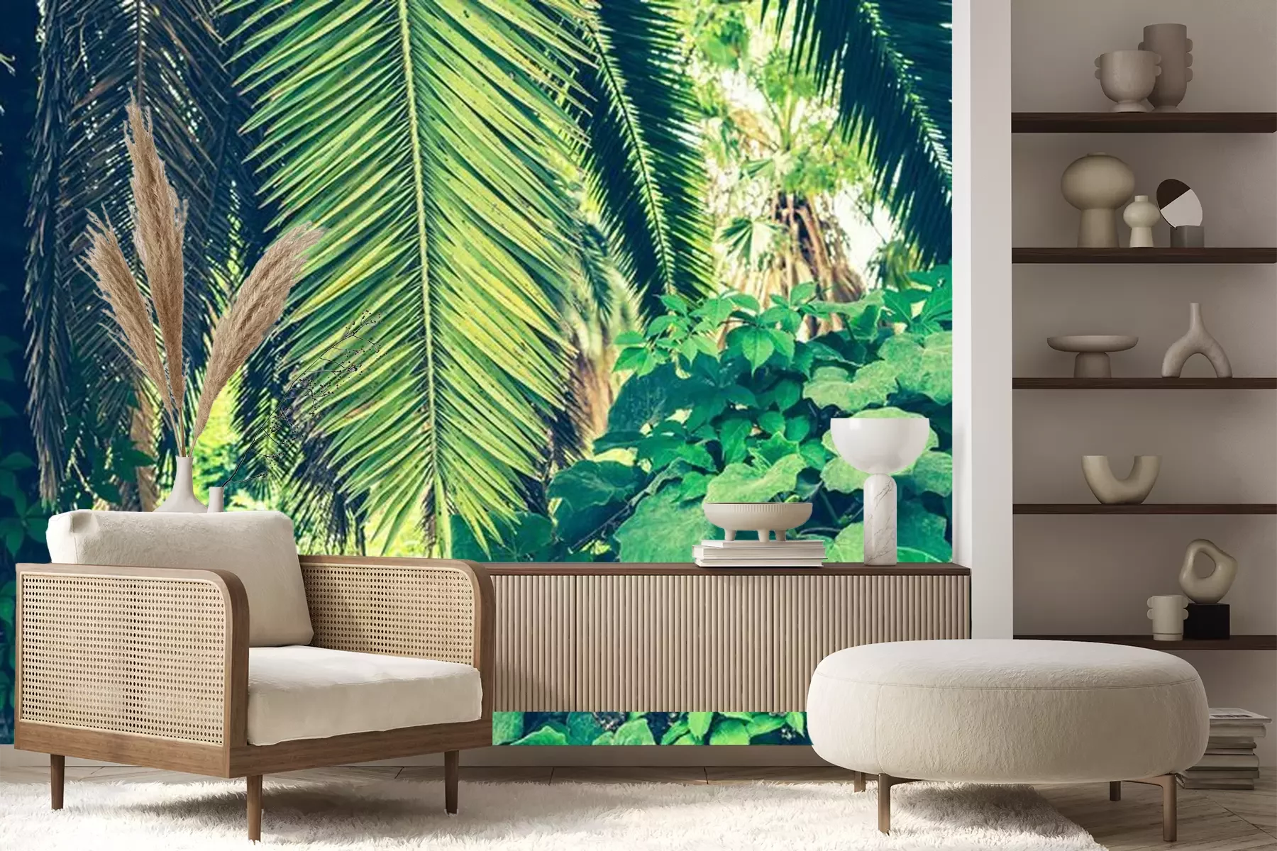 Het materiaal Premium+ is een gestructureerd vinyl op vlies met een gewicht van 255 g/m², dat kleine oneffenheden in de muur effectief camoufleert. De subtiele structuur van fijn zand geeft het oppervlak een exclusieve uitstraling, terwijl de halfmatte afwerking de diepte van de kleuren benadrukt. Het materiaal is dampdoorlatend, waardoor het ook in de keuken en badkamer kan worden gebruikt. De maximale breedte van één baan bedraagt 100 cm – bij grotere afmetingen wordt het fotobehang in meerdere gelijke banen verdeeld. De lijm wordt direct op de muur aangebracht en het behang wordt rand-aan-rand geplakt, wat zorgt voor een esthetisch resultaat zonder zichtbare naden. Het oppervlak kan gemakkelijk worden schoongemaakt door het voorzichtig af te nemen met een vochtige doek.