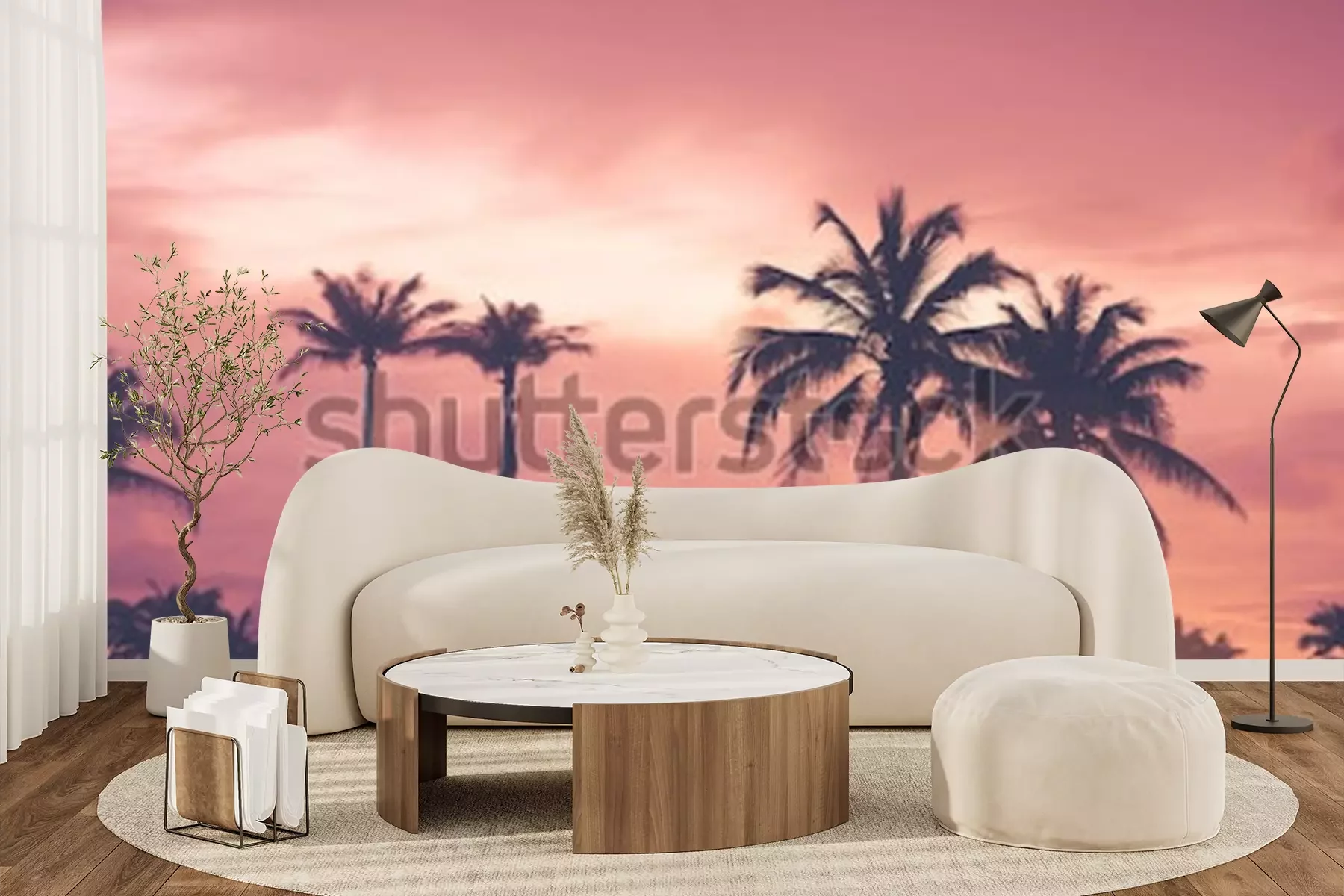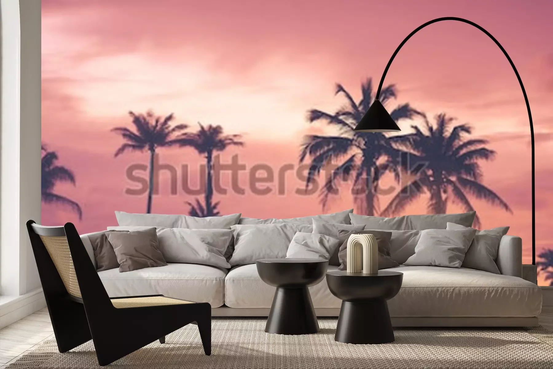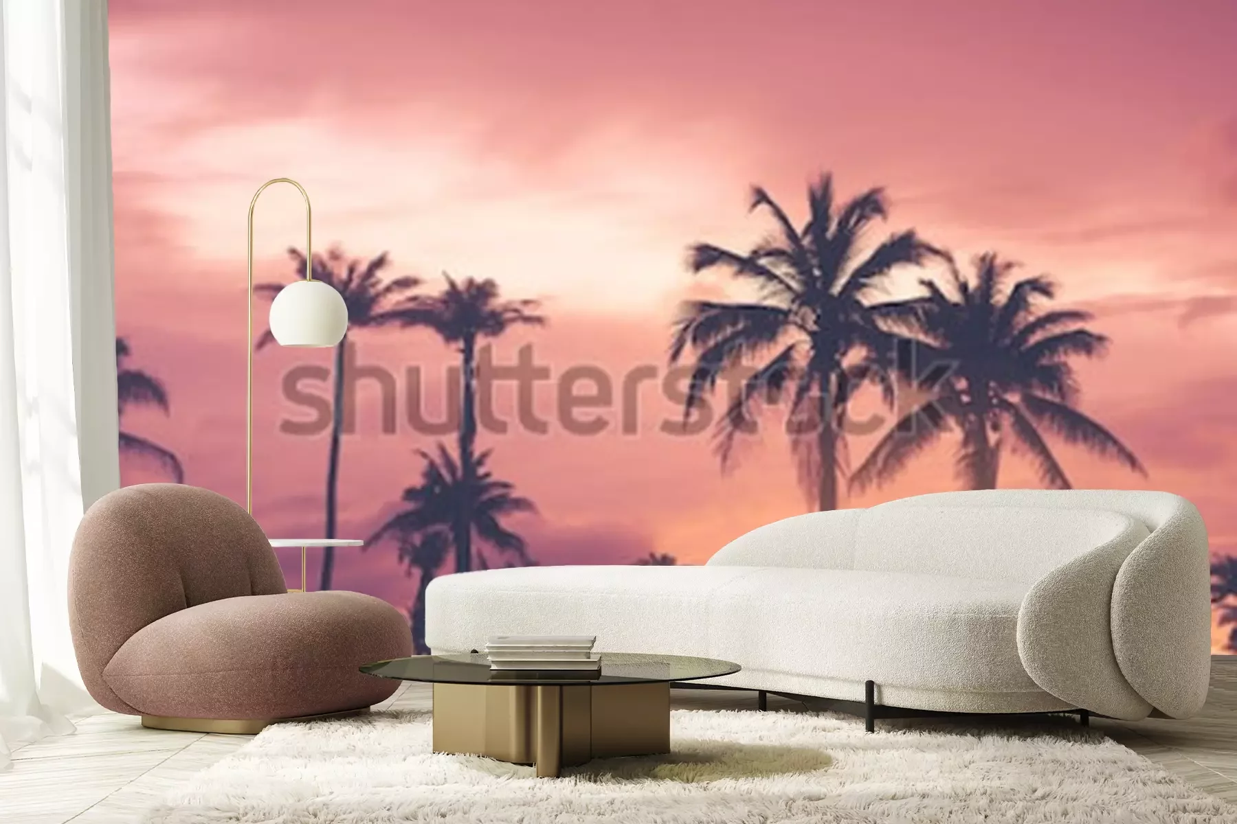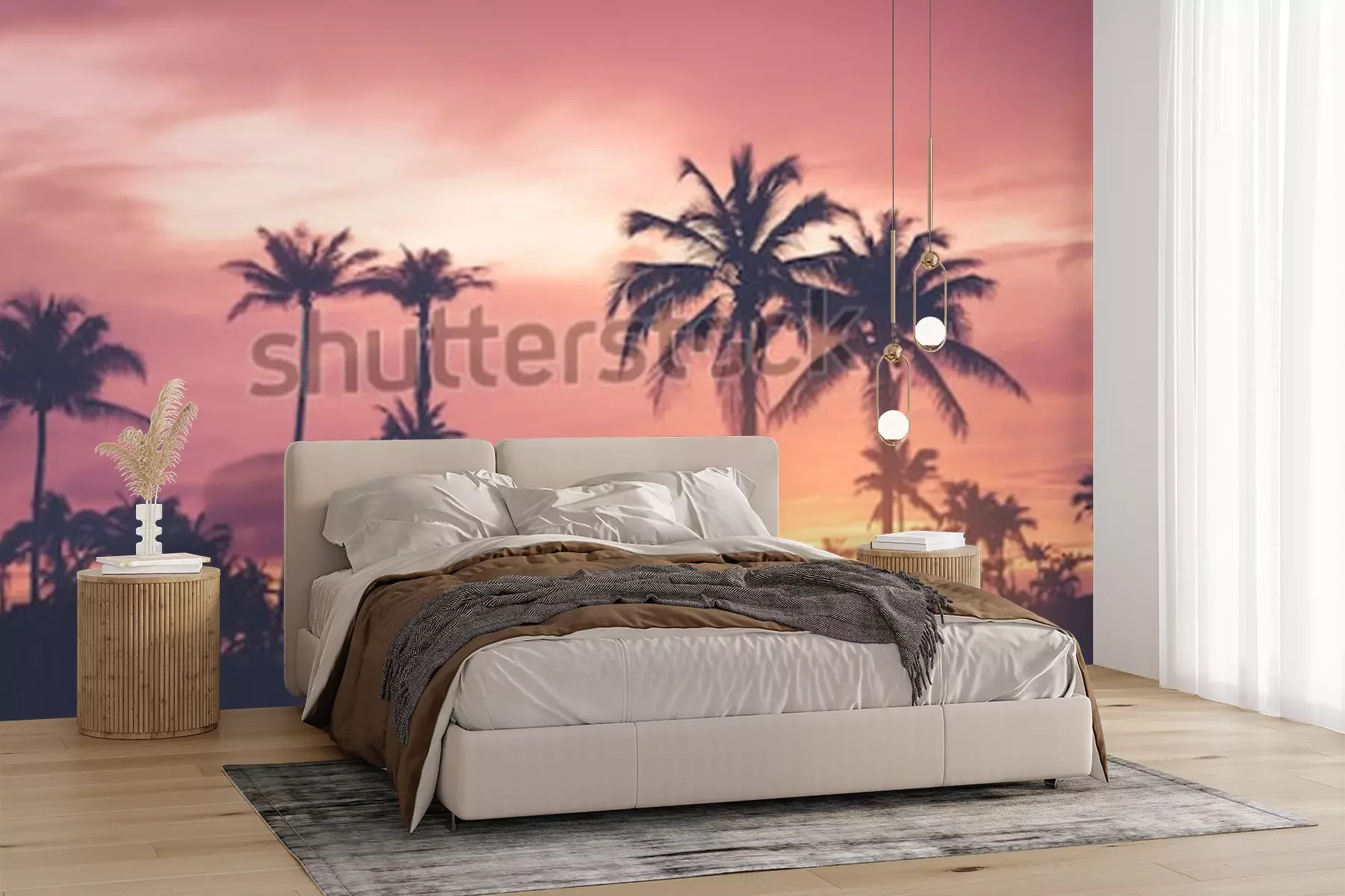 Fotobehang Tropische palmbomen bij zonsondergang