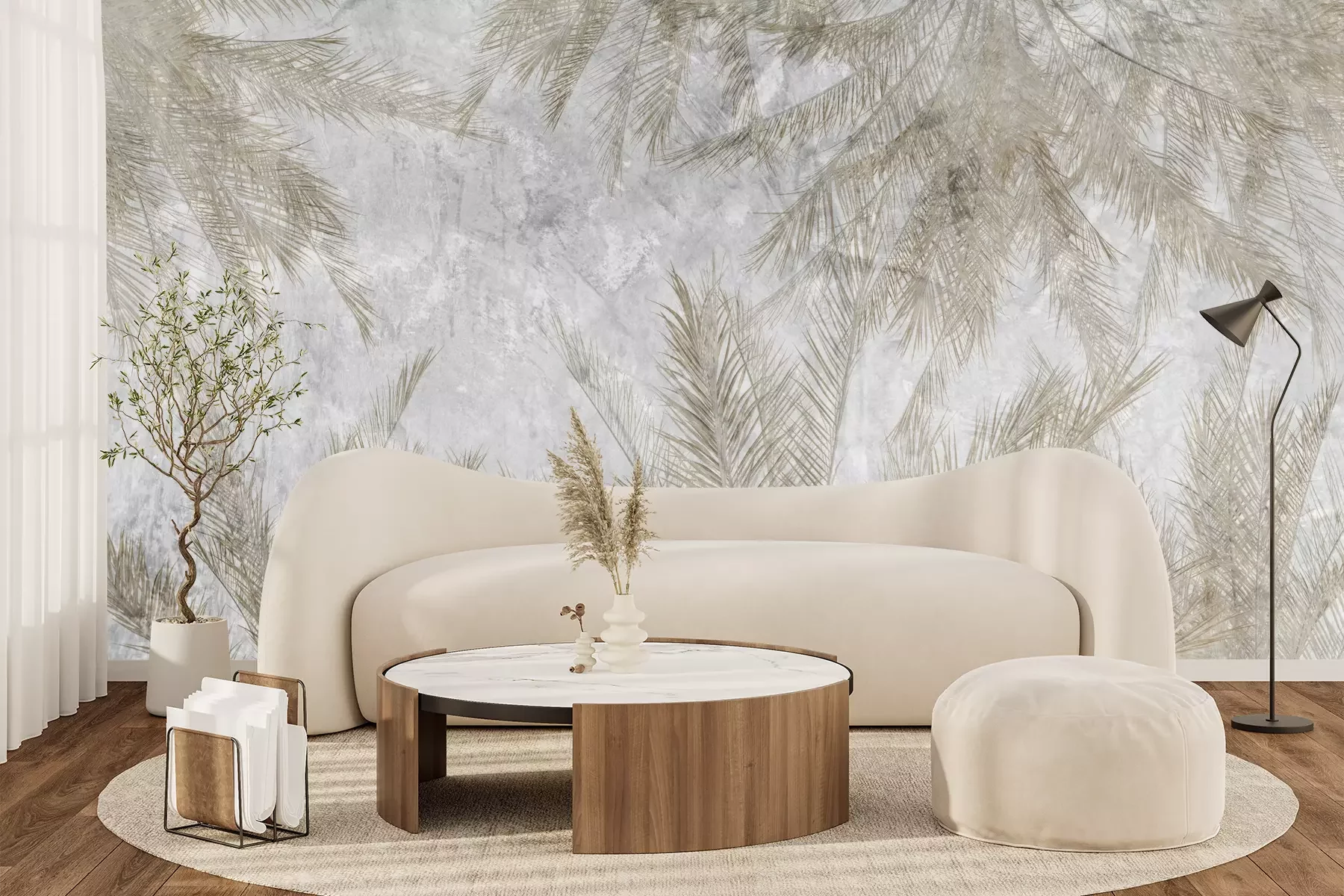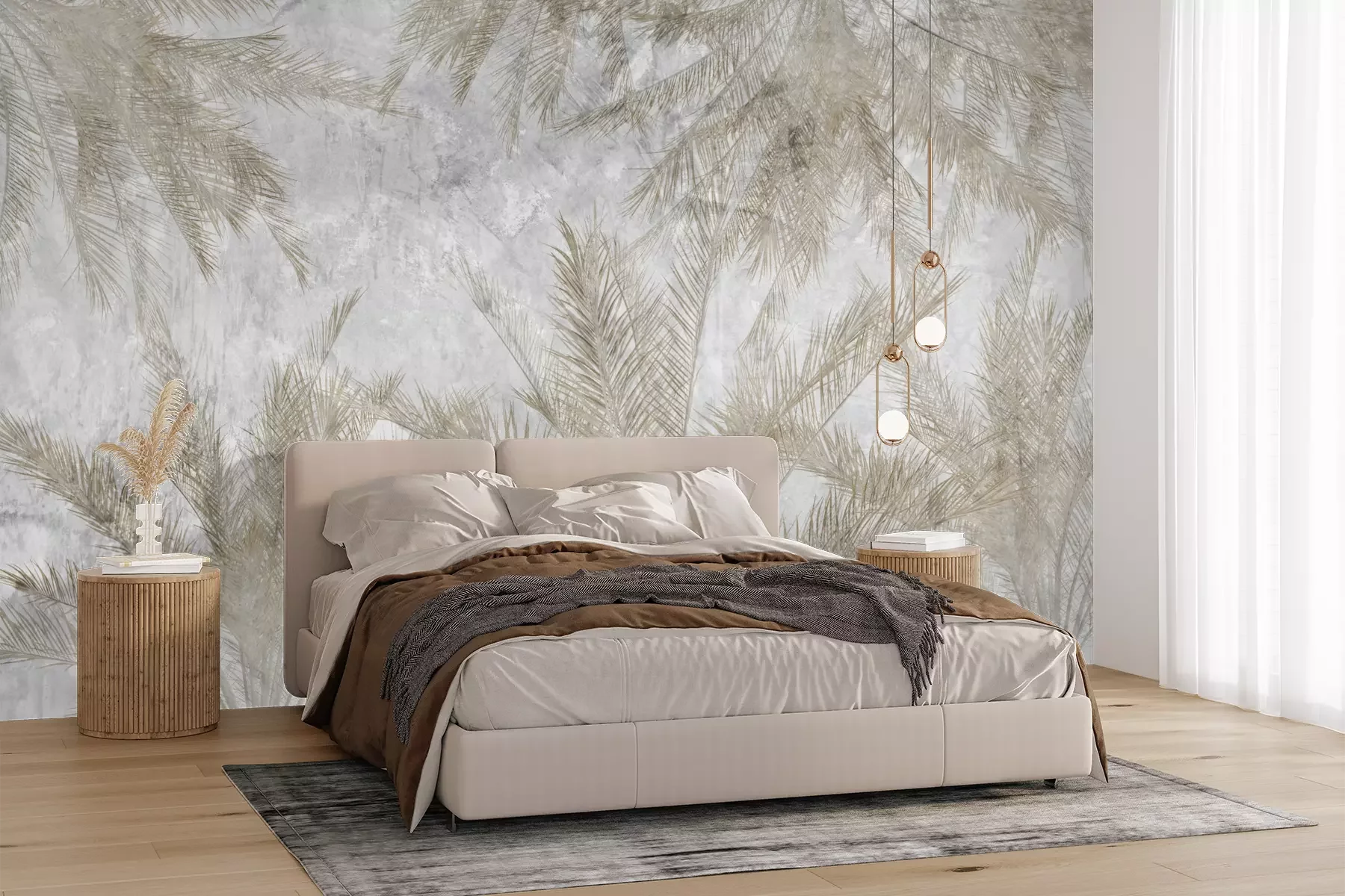 Het materiaal Premium+ is een gestructureerd vinyl op vlies met een gewicht van 255 g/m², dat kleine oneffenheden in de muur effectief camoufleert. De subtiele structuur van fijn zand geeft het oppervlak een exclusieve uitstraling, terwijl de halfmatte afwerking de diepte van de kleuren benadrukt. Het materiaal is dampdoorlatend, waardoor het ook in de keuken en badkamer kan worden gebruikt. De maximale breedte van één baan bedraagt 100 cm – bij grotere afmetingen wordt het fotobehang in meerdere gelijke banen verdeeld. De lijm wordt direct op de muur aangebracht en het behang wordt rand-aan-rand geplakt, wat zorgt voor een esthetisch resultaat zonder zichtbare naden. Het oppervlak kan gemakkelijk worden schoongemaakt door het voorzichtig af te nemen met een vochtige doek.
