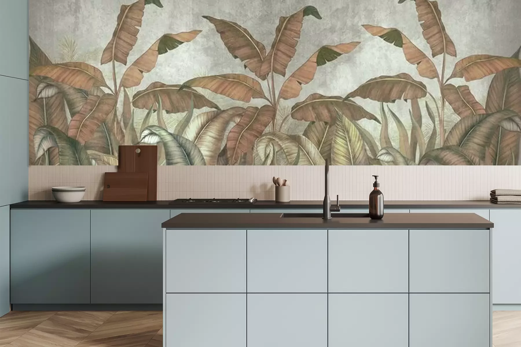 Het materiaal Premium is een glad vinyl op vlies, dat bestand is tegen uitrekken en vervorming. Het is dampdoorlatend – de muren kunnen vrij ademen – waardoor het geschikt is voor gebruik in de keuken en badkamer. Bij vervuiling kan het materiaal worden afgenomen met een vochtige doek. De maximale breedte van één baan bedraagt 95 of 105 cm, afhankelijk van de beschikbaarheid. Montage vindt plaats met de rand-aan-rand methode, wat een esthetisch resultaat zonder zichtbare naden oplevert. Omdat de lijm rechtstreeks op de muur wordt aangebracht, verloopt de installatie van het fotobehang snel en eenvoudig.