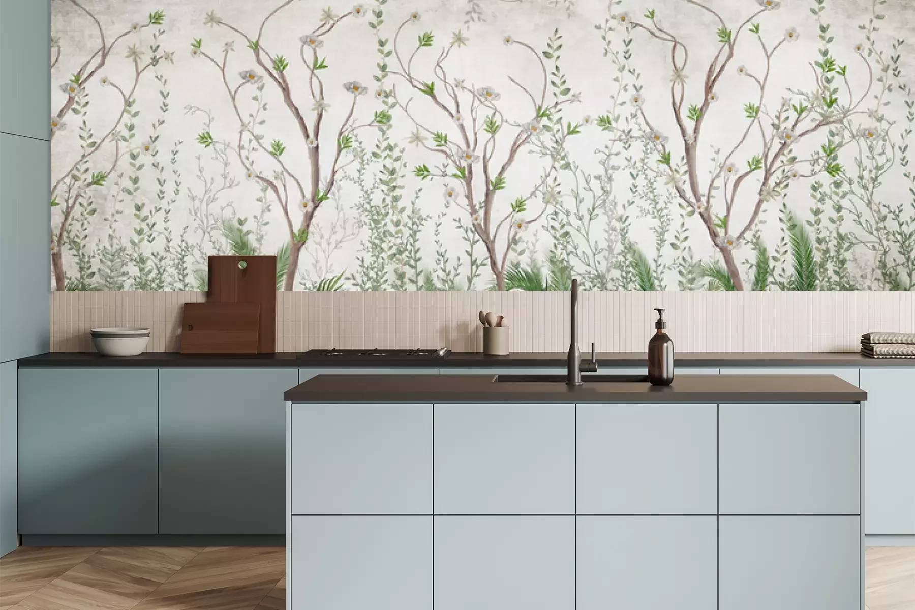 Het materiaal Premium is een glad vinyl op vlies, dat bestand is tegen uitrekken en vervorming. Het is dampdoorlatend – de muren kunnen vrij ademen – waardoor het geschikt is voor gebruik in de keuken en badkamer. Bij vervuiling kan het materiaal worden afgenomen met een vochtige doek. De maximale breedte van één baan bedraagt 95 of 105 cm, afhankelijk van de beschikbaarheid. Montage vindt plaats met de rand-aan-rand methode, wat een esthetisch resultaat zonder zichtbare naden oplevert. Omdat de lijm rechtstreeks op de muur wordt aangebracht, verloopt de installatie van het fotobehang snel en eenvoudig.