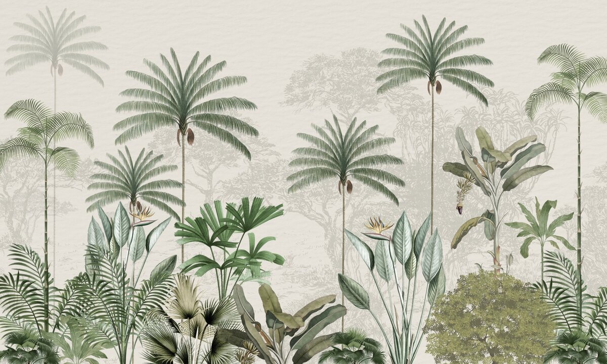 Fotobehang: Tropische planten jungle groen landschap met bomen