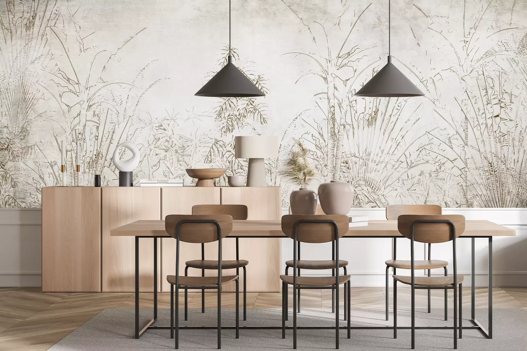 Het materiaal Standard is een hoogwaardig latexmateriaal met een glad, mat oppervlak. Dankzij de HP Latex-printtechnologie zijn de kleuren intens, duurzaam en UV-bestendig, waardoor het patroon jarenlang een onberispelijke uitstraling behoudt. Vervuilde oppervlakken kunnen voorzichtig worden afgeveegd met een droge doek. De maximale breedte van één baan bedraagt 95 cm of 105 cm – afhankelijk van de bestelde fotobehangbreedte. Bij grotere afmetingen wordt het patroon verdeeld over meerdere gelijkmatige banen. Het fotobehang wordt rand-aan-randaangebracht, wat vrijwel onzichtbare naden mogelijk maakt.