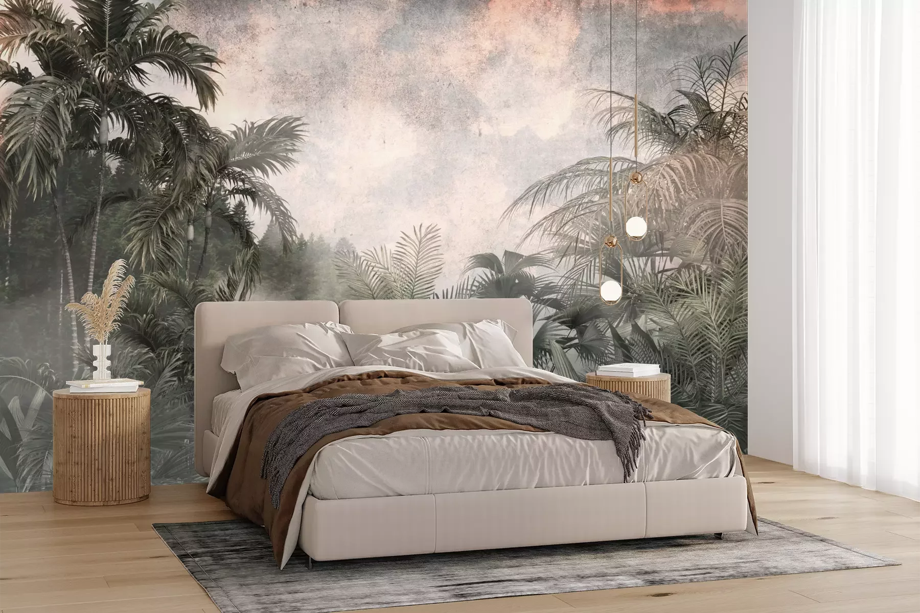 Het materiaal Premium+ is een gestructureerd vinyl op vlies met een gewicht van 255 g/m², dat kleine oneffenheden in de muur effectief camoufleert. De subtiele structuur van fijn zand geeft het oppervlak een exclusieve uitstraling, terwijl de halfmatte afwerking de diepte van de kleuren benadrukt. Het materiaal is dampdoorlatend, waardoor het ook in de keuken en badkamer kan worden gebruikt. De maximale breedte van één baan bedraagt 100 cm – bij grotere afmetingen wordt het fotobehang in meerdere gelijke banen verdeeld. De lijm wordt direct op de muur aangebracht en het behang wordt rand-aan-rand geplakt, wat zorgt voor een esthetisch resultaat zonder zichtbare naden. Het oppervlak kan gemakkelijk worden schoongemaakt door het voorzichtig af te nemen met een vochtige doek.