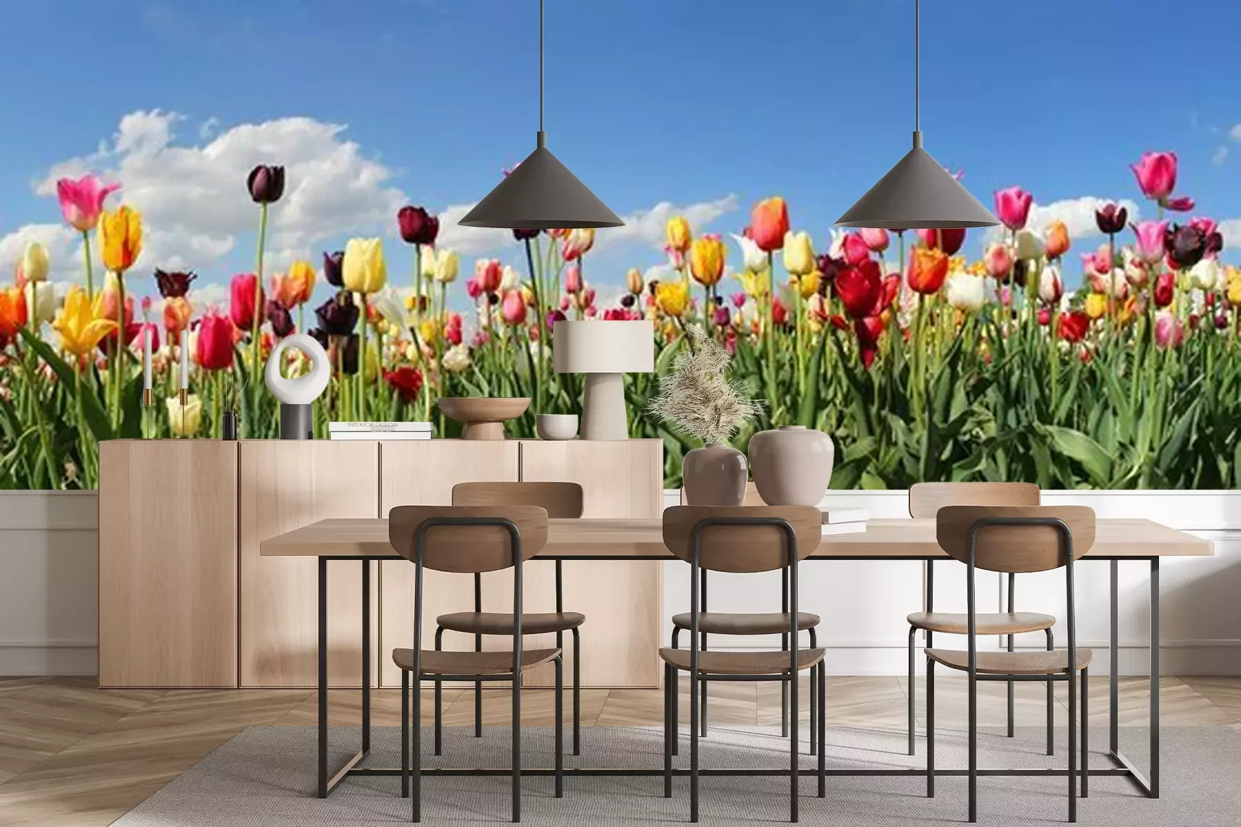 Het materiaal Standard is een hoogwaardig latexmateriaal met een glad, mat oppervlak. Dankzij de HP Latex-printtechnologie zijn de kleuren intens, duurzaam en UV-bestendig, waardoor het patroon jarenlang een onberispelijke uitstraling behoudt. Vervuilde oppervlakken kunnen voorzichtig worden afgeveegd met een droge doek. De maximale breedte van één baan bedraagt 95 cm of 105 cm – afhankelijk van de bestelde fotobehangbreedte. Bij grotere afmetingen wordt het patroon verdeeld over meerdere gelijkmatige banen. Het fotobehang wordt rand-aan-randaangebracht, wat vrijwel onzichtbare naden mogelijk maakt.