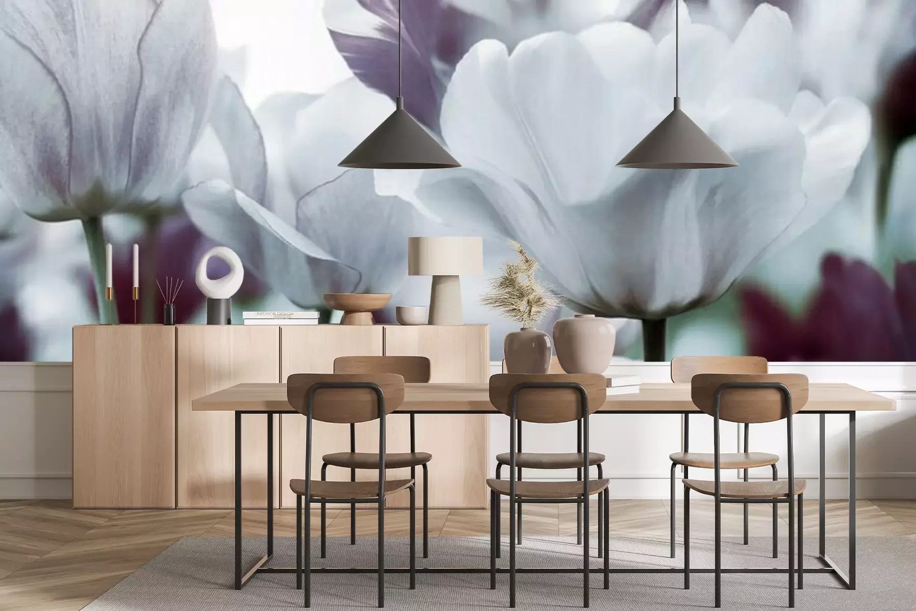 Het materiaal Standard is een hoogwaardig latexmateriaal met een glad, mat oppervlak. Dankzij de HP Latex-printtechnologie zijn de kleuren intens, duurzaam en UV-bestendig, waardoor het patroon jarenlang een onberispelijke uitstraling behoudt. Vervuilde oppervlakken kunnen voorzichtig worden afgeveegd met een droge doek. De maximale breedte van één baan bedraagt 95 cm of 105 cm – afhankelijk van de bestelde fotobehangbreedte. Bij grotere afmetingen wordt het patroon verdeeld over meerdere gelijkmatige banen. Het fotobehang wordt rand-aan-randaangebracht, wat vrijwel onzichtbare naden mogelijk maakt.