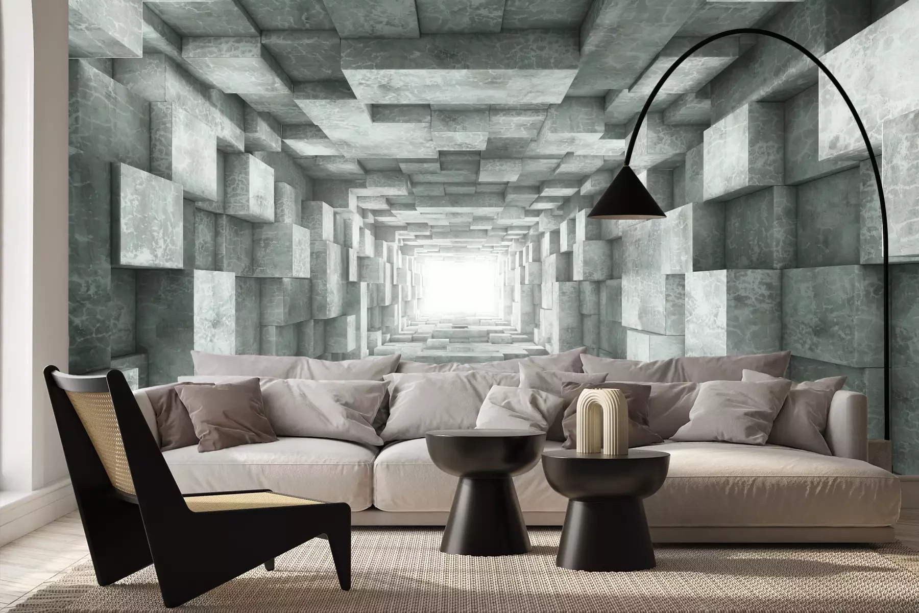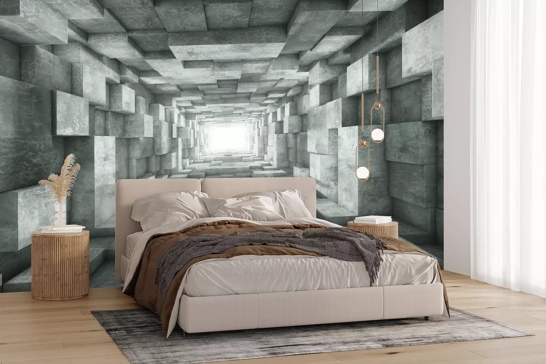 Het materiaal Premium+ is een gestructureerd vinyl op vlies met een gewicht van 255 g/m², dat kleine oneffenheden in de muur effectief camoufleert. De subtiele structuur van fijn zand geeft het oppervlak een exclusieve uitstraling, terwijl de halfmatte afwerking de diepte van de kleuren benadrukt. Het materiaal is dampdoorlatend, waardoor het ook in de keuken en badkamer kan worden gebruikt. De maximale breedte van één baan bedraagt 100 cm – bij grotere afmetingen wordt het fotobehang in meerdere gelijke banen verdeeld. De lijm wordt direct op de muur aangebracht en het behang wordt rand-aan-rand geplakt, wat zorgt voor een esthetisch resultaat zonder zichtbare naden. Het oppervlak kan gemakkelijk worden schoongemaakt door het voorzichtig af te nemen met een vochtige doek.