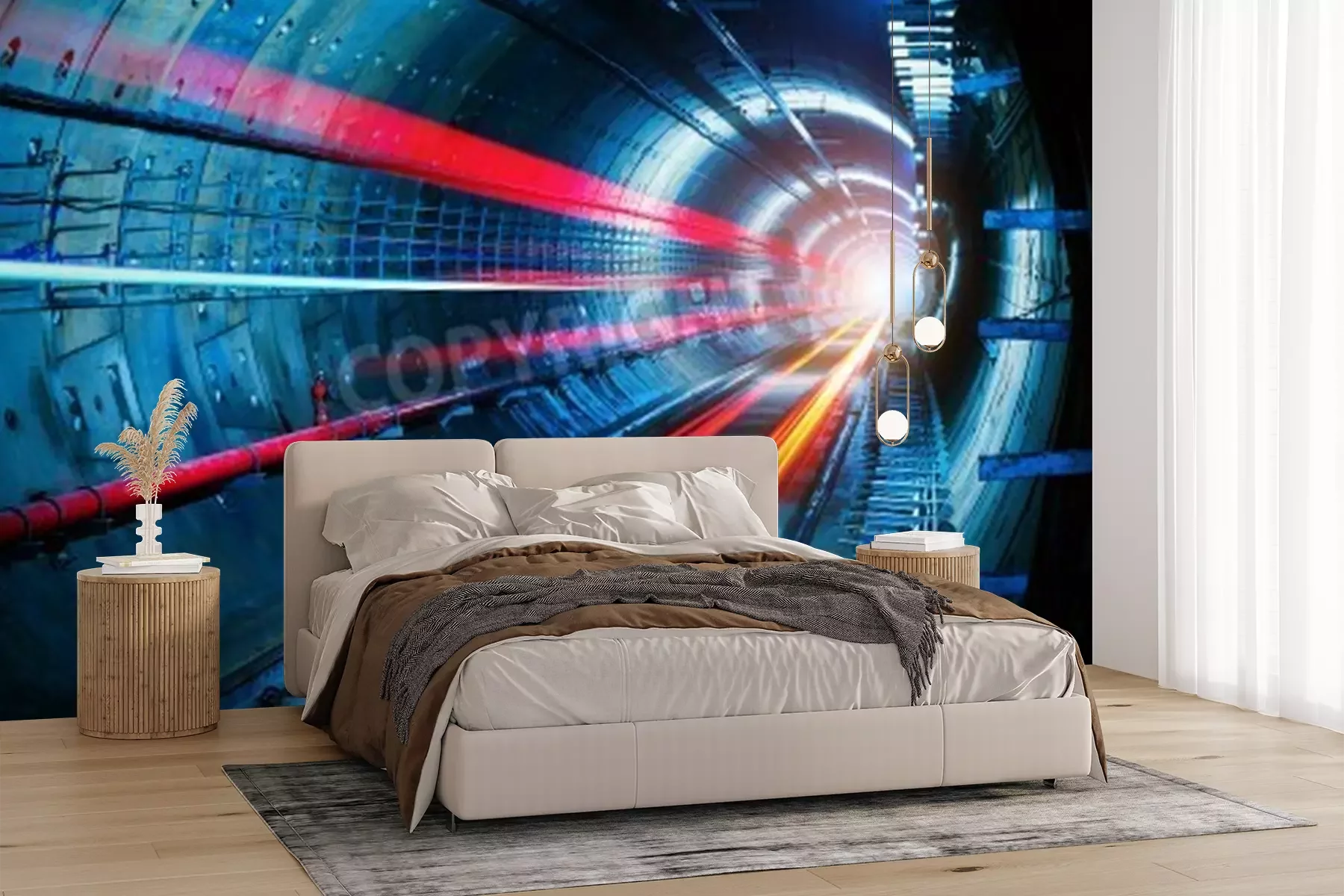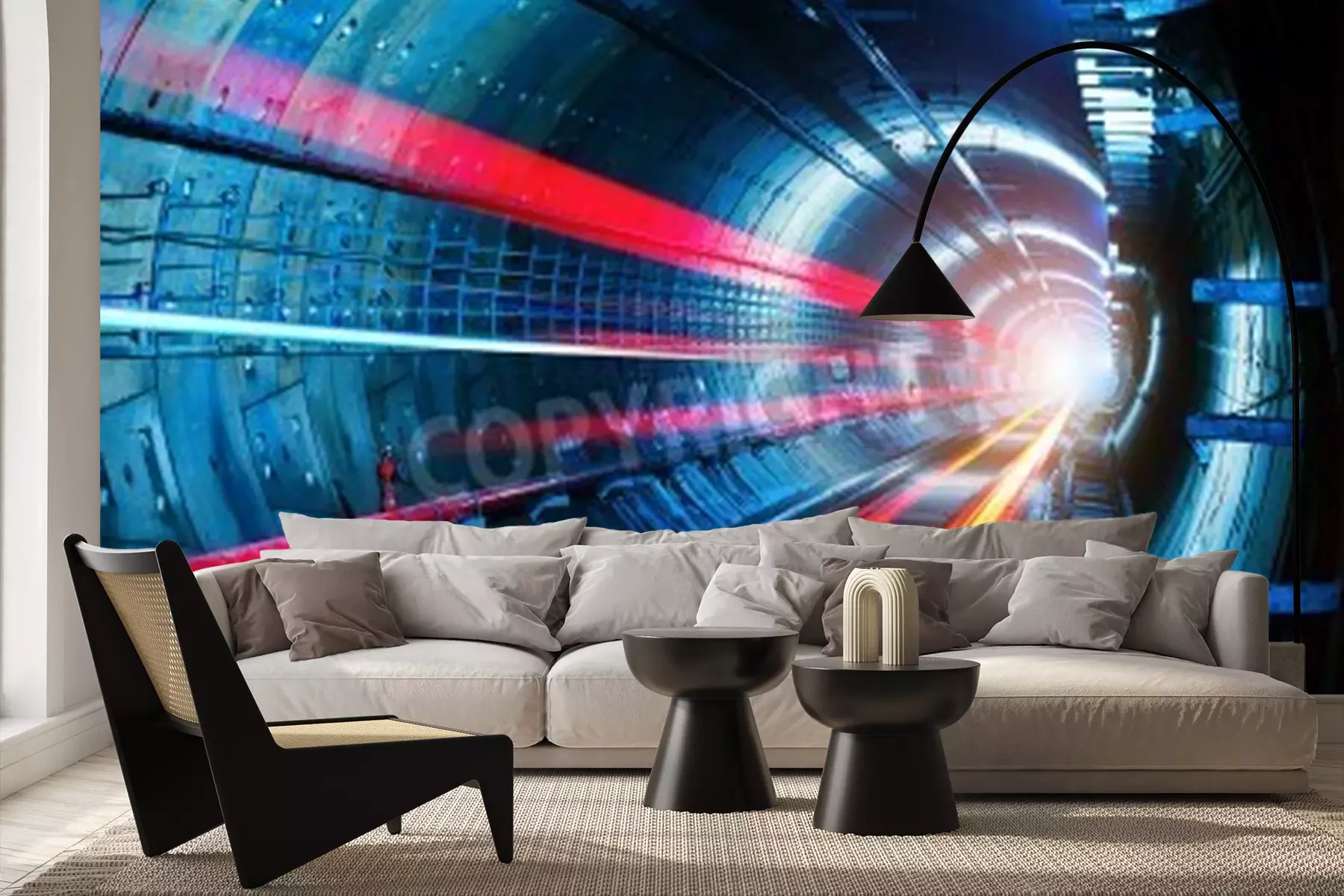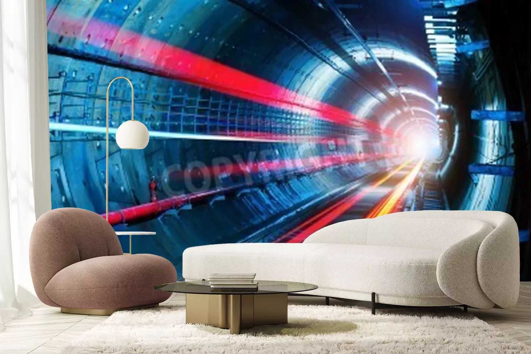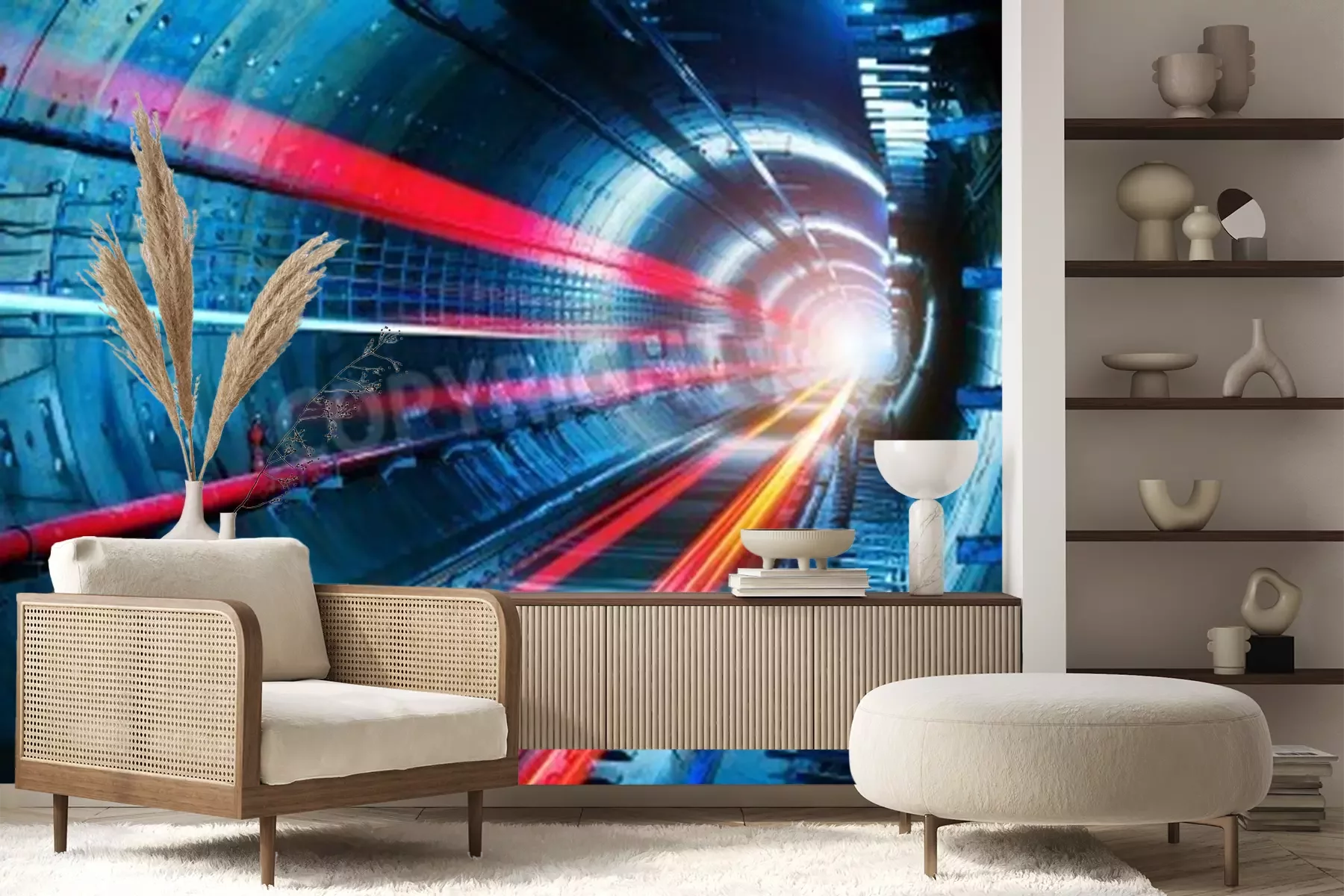 Fotobehang Tunnel met neonlicht