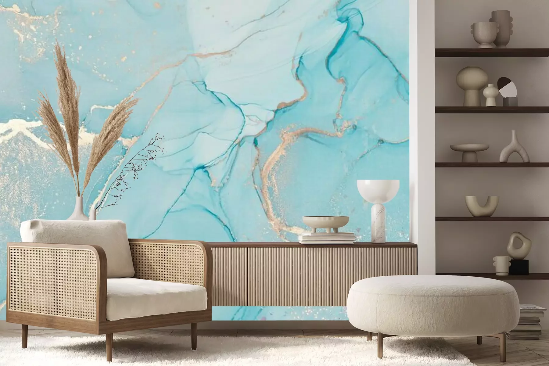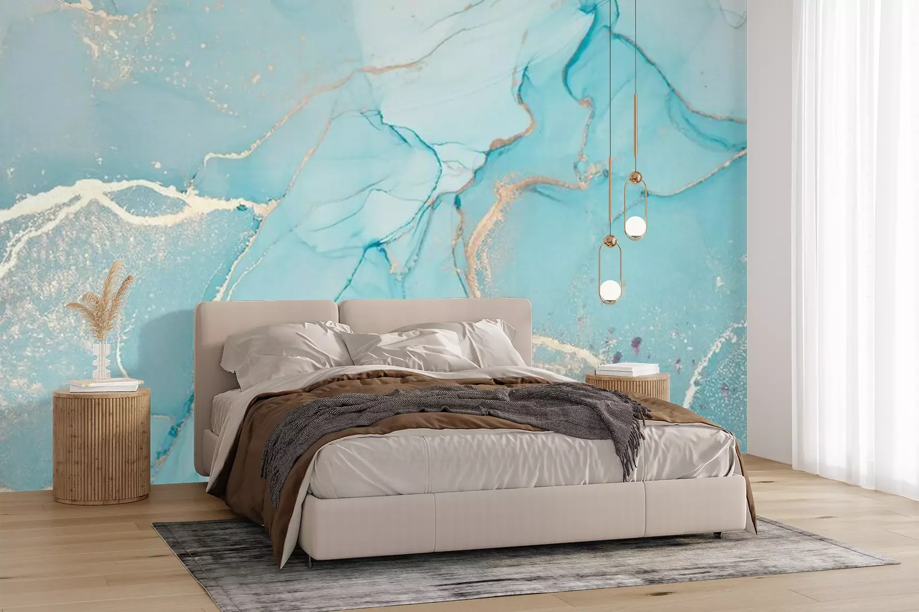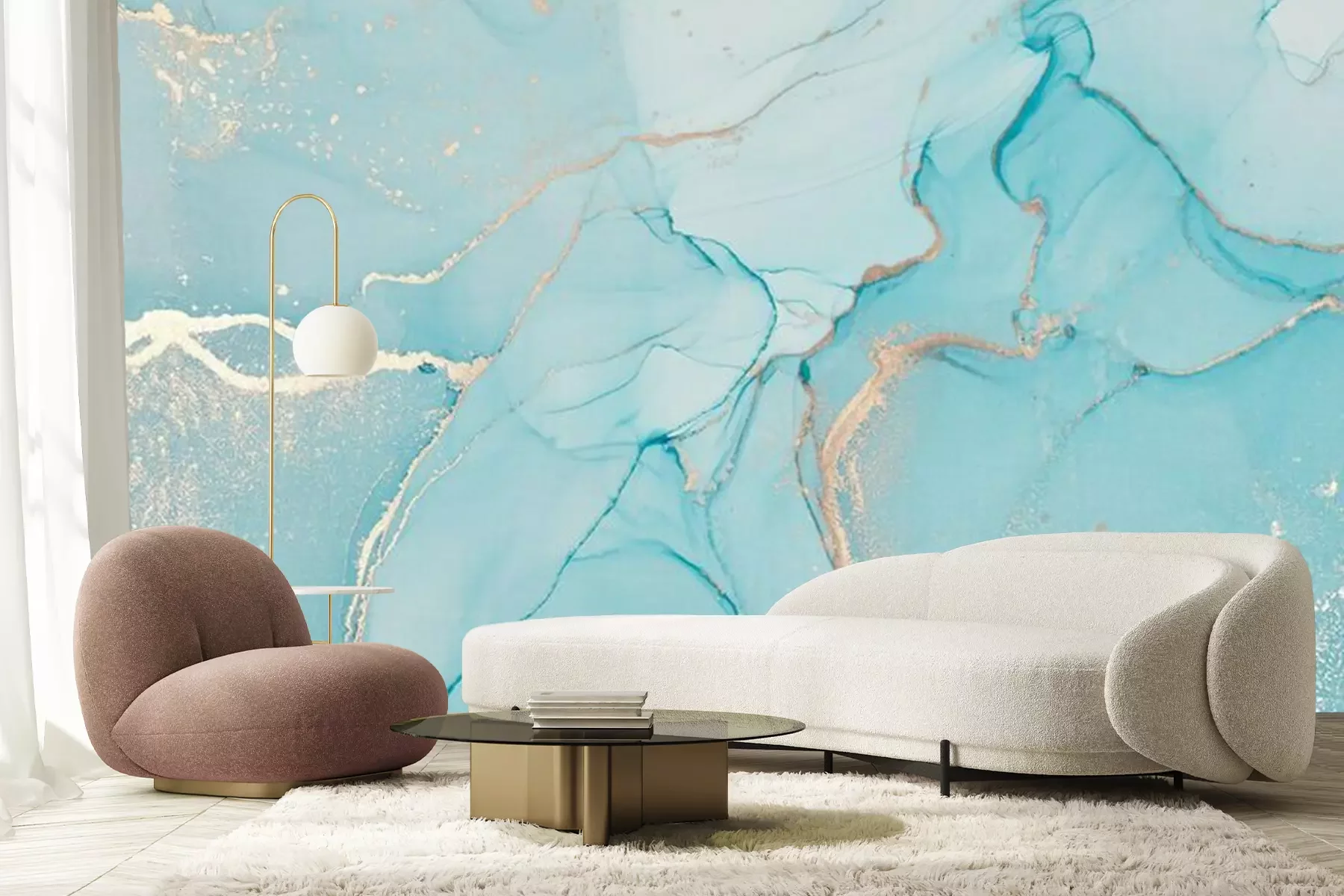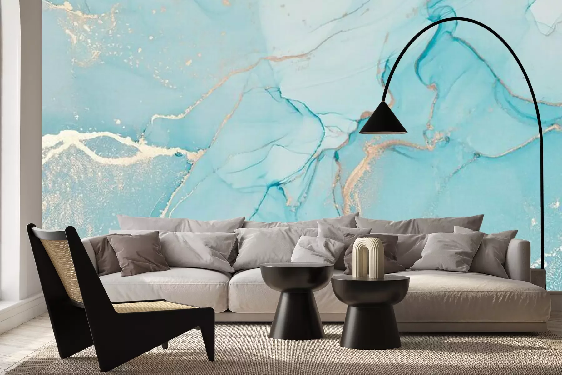 Donkerblauwe tinten verf doordringen elkaarFotobehang
