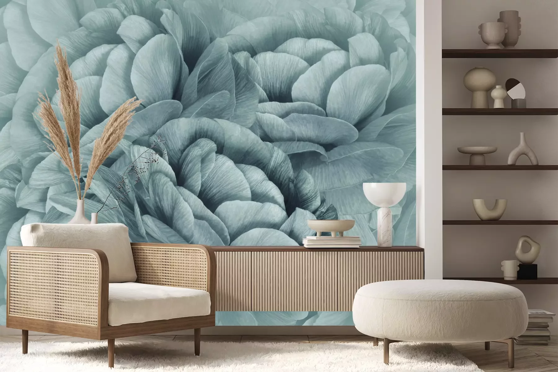 Het materiaal Standard is een hoogwaardig latexmateriaal met een glad, mat oppervlak. Dankzij de HP Latex-printtechnologie zijn de kleuren intens, duurzaam en UV-bestendig, waardoor het patroon jarenlang een onberispelijke uitstraling behoudt. Vervuilde oppervlakken kunnen voorzichtig worden afgeveegd met een droge doek. De maximale breedte van één baan bedraagt 95 cm of 105 cm – afhankelijk van de bestelde fotobehangbreedte. Bij grotere afmetingen wordt het patroon verdeeld over meerdere gelijkmatige banen. Het fotobehang wordt rand-aan-randaangebracht, wat vrijwel onzichtbare naden mogelijk maakt.