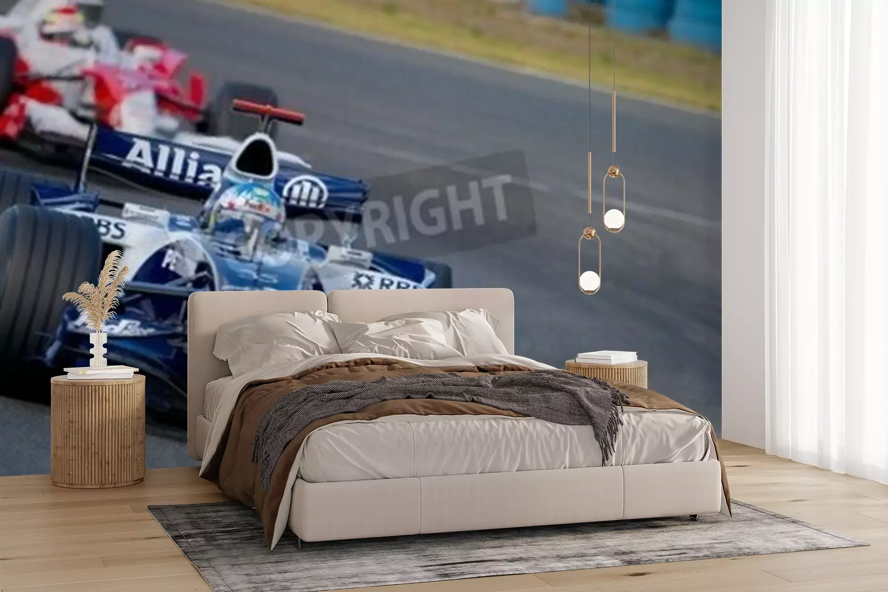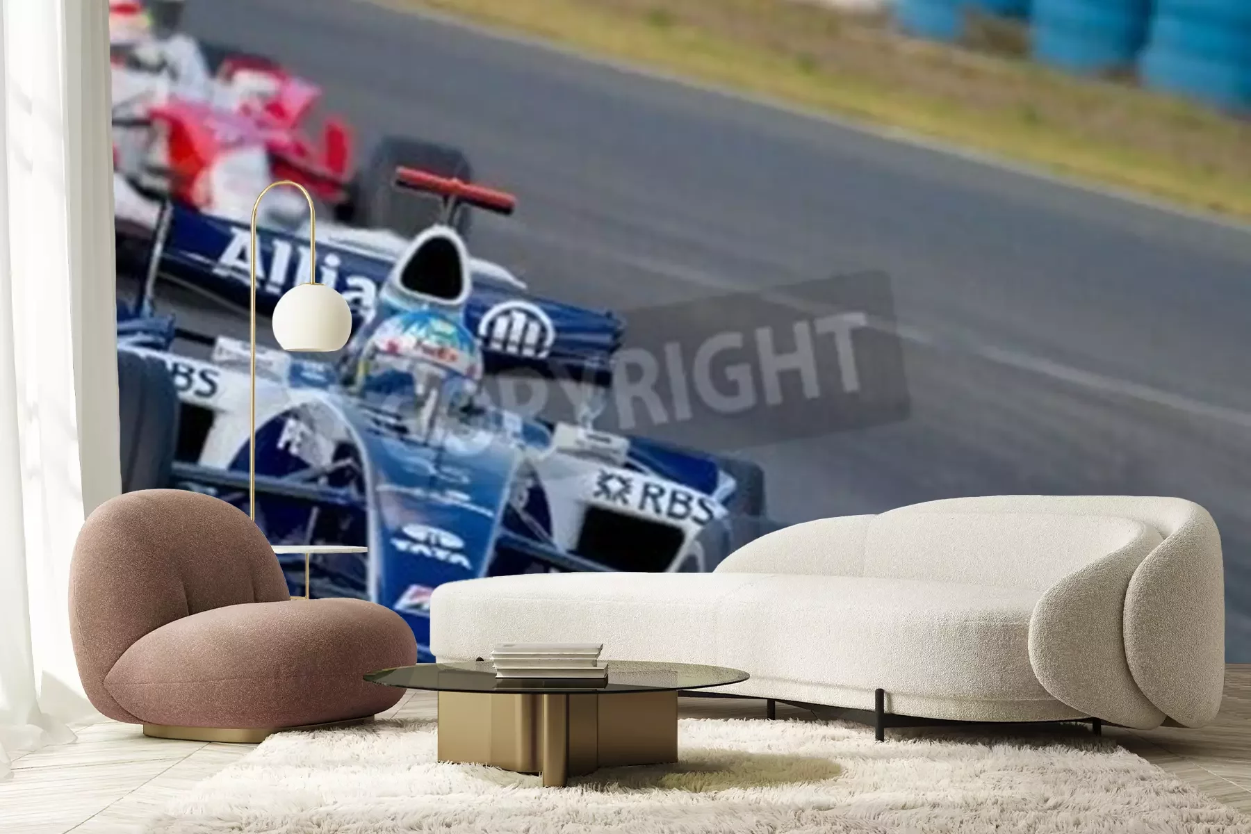 Fotobehang Twee formule 1 wagens
