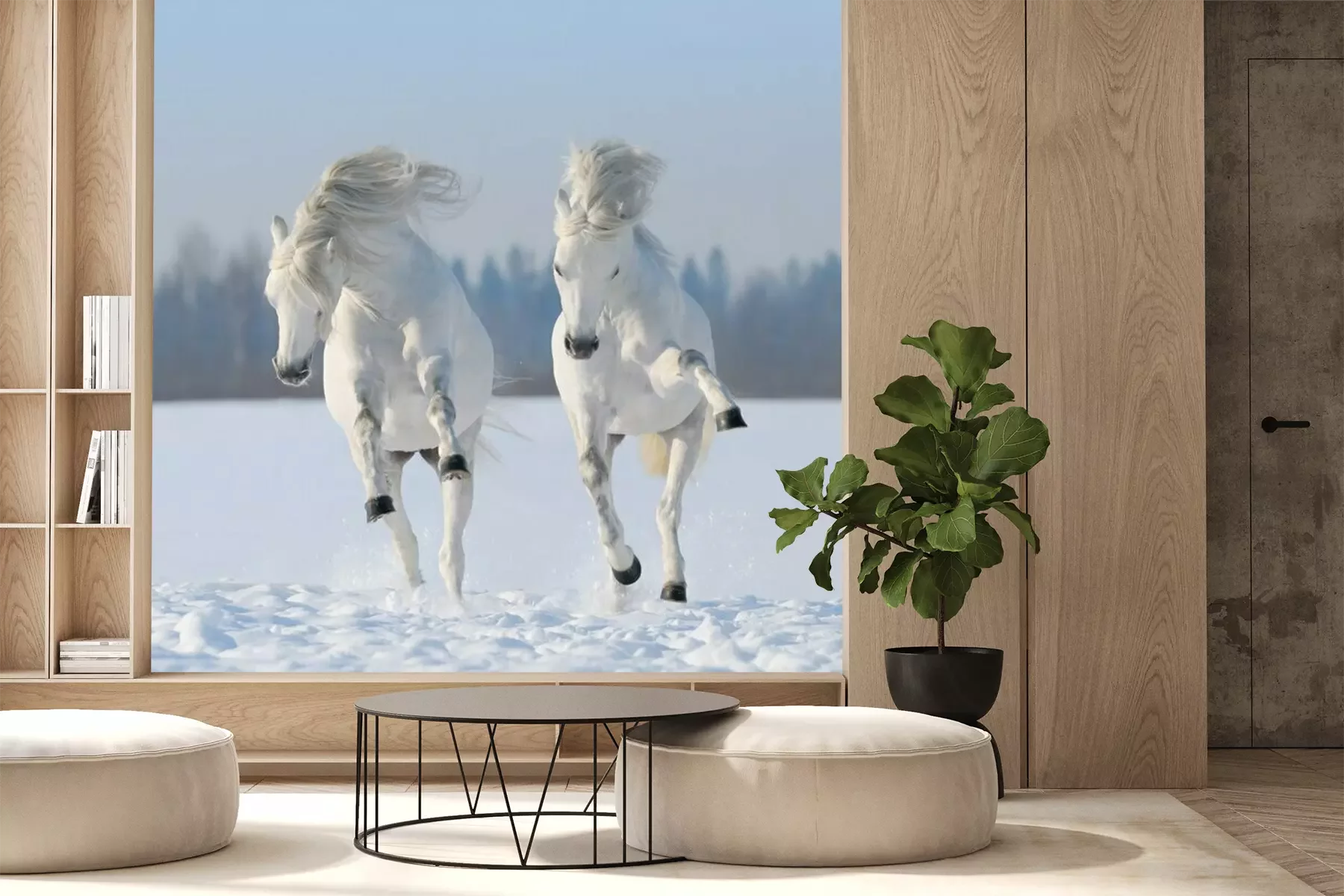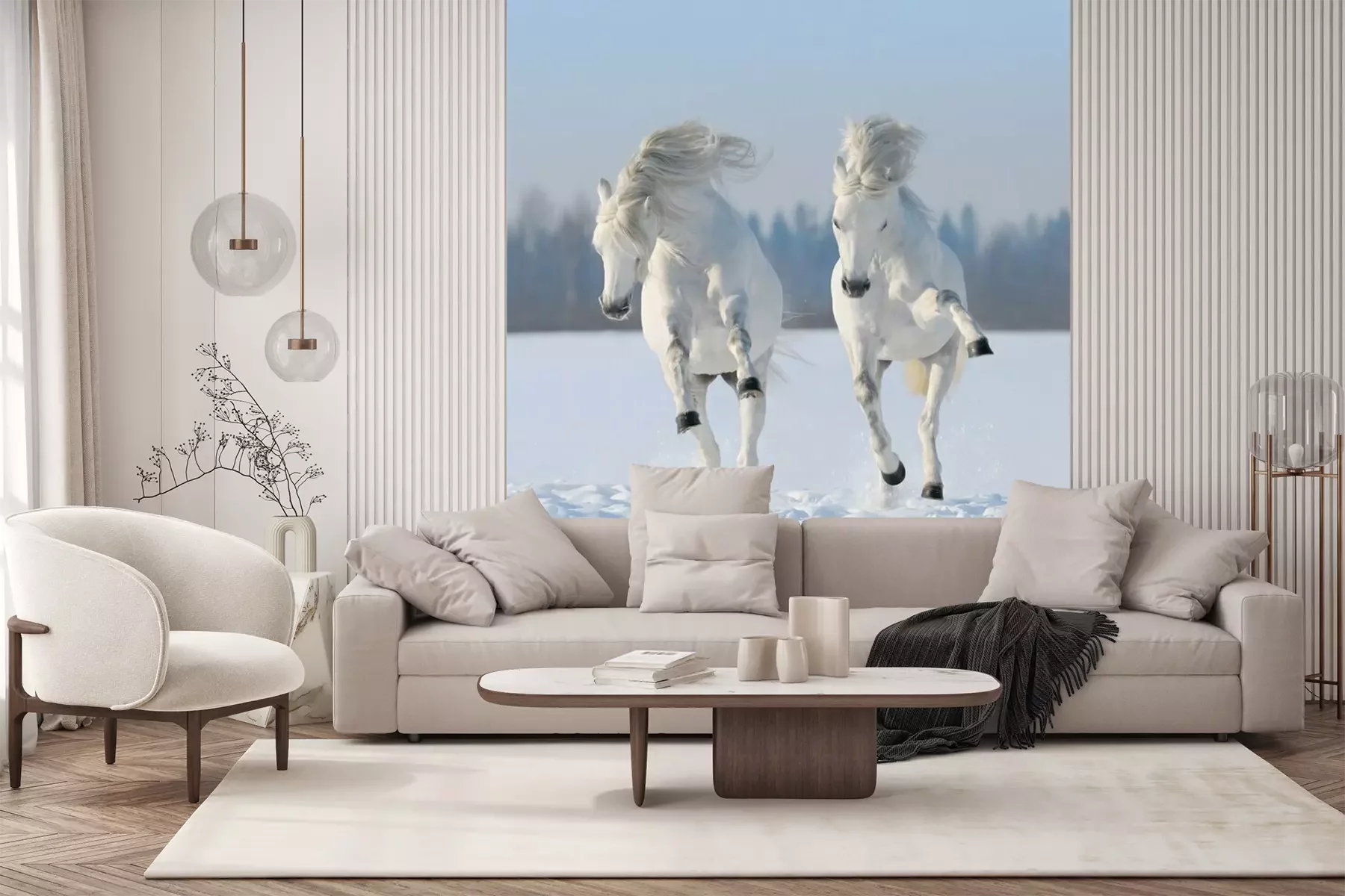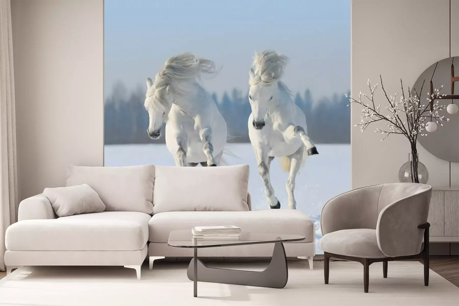 Twee paarden galopperen in de sneeuwProbleemloze bezorging verzorgd door vertrouwde vervoerders