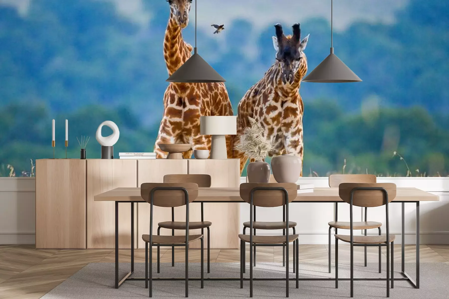 Fotobehang Twee schattige giraffen in Tanzania