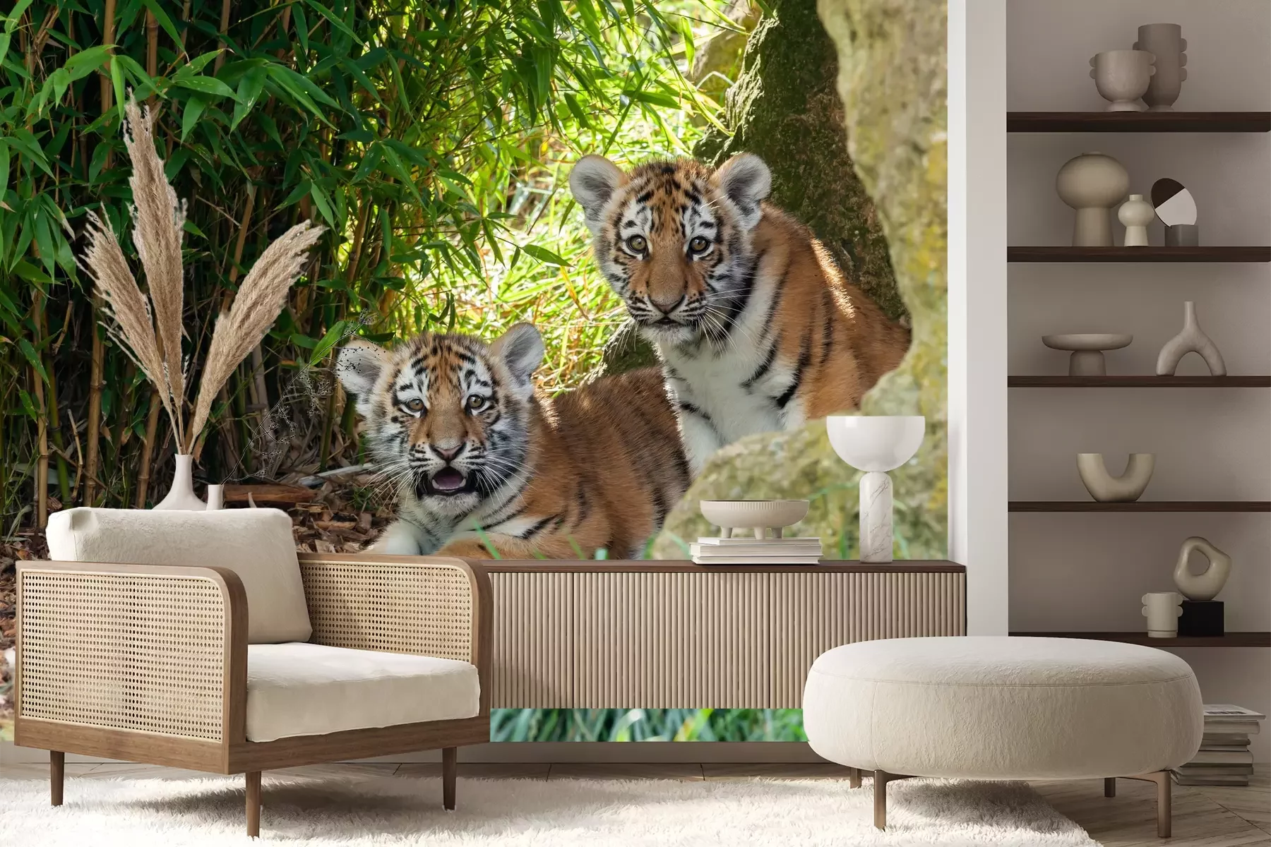 Het fotobehang wordt geleverd in banen. De afmetingen en het aantal banen waaruit het volledige fotobehang bestaat, zijn afhankelijk van het gekozen materiaal. Wanneer het formaat de maximale materiaalbreedte overschrijdt, bestaat de print uit meerdere gelijkmatige banen.