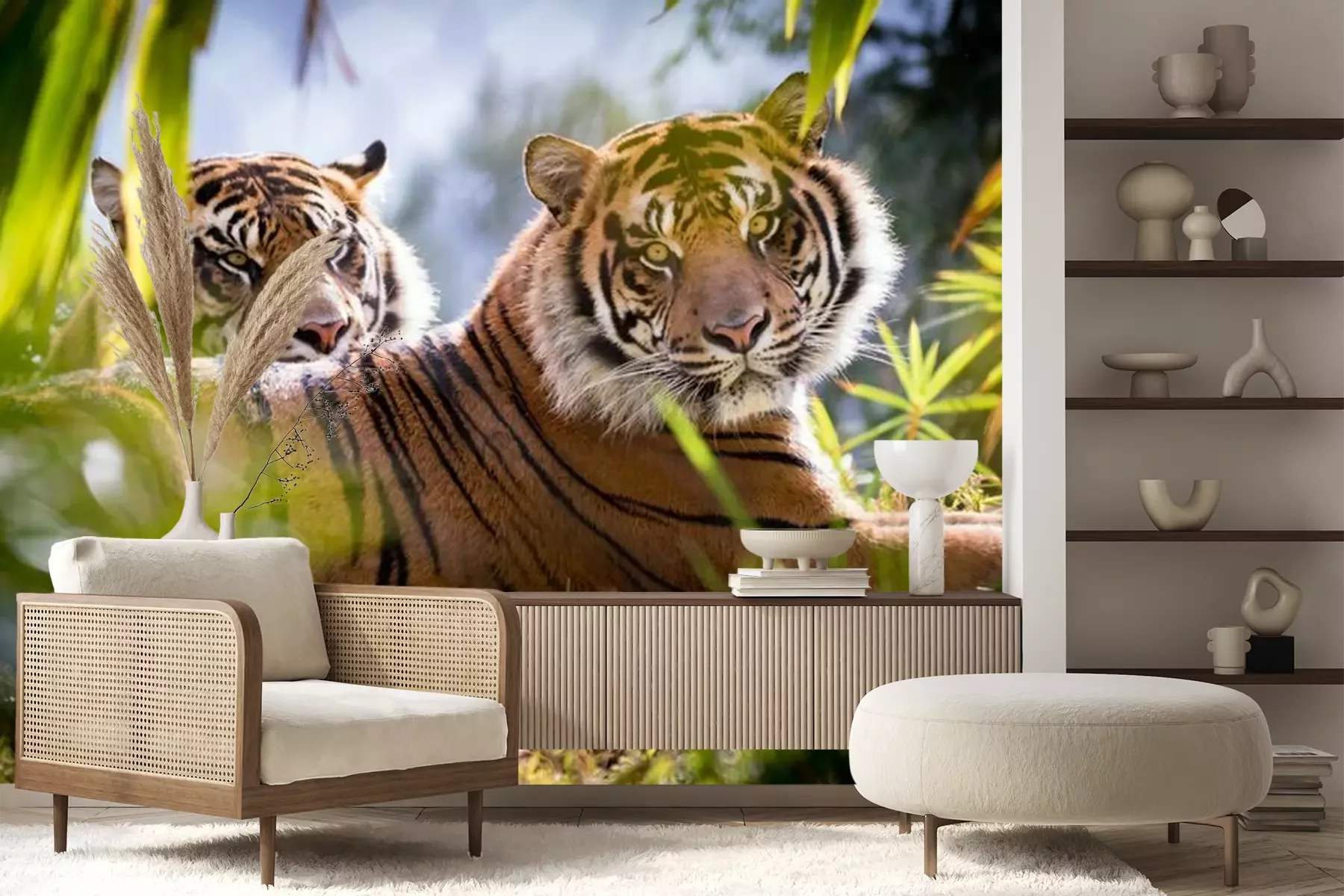 Het materiaal Premium+ is een gestructureerd vinyl op vlies met een gewicht van 255 g/m², dat kleine oneffenheden in de muur effectief camoufleert. De subtiele structuur van fijn zand geeft het oppervlak een exclusieve uitstraling, terwijl de halfmatte afwerking de diepte van de kleuren benadrukt. Het materiaal is dampdoorlatend, waardoor het ook in de keuken en badkamer kan worden gebruikt. De maximale breedte van één baan bedraagt 100 cm – bij grotere afmetingen wordt het fotobehang in meerdere gelijke banen verdeeld. De lijm wordt direct op de muur aangebracht en het behang wordt rand-aan-rand geplakt, wat zorgt voor een esthetisch resultaat zonder zichtbare naden. Het oppervlak kan gemakkelijk worden schoongemaakt door het voorzichtig af te nemen met een vochtige doek.