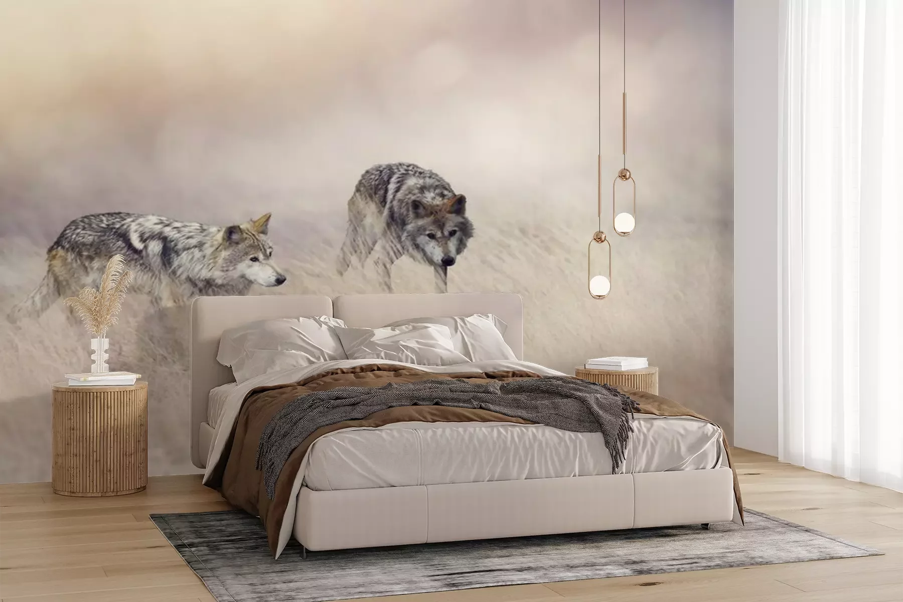 Het materiaal Premium+ is een gestructureerd vinyl op vlies met een gewicht van 255 g/m², dat kleine oneffenheden in de muur effectief camoufleert. De subtiele structuur van fijn zand geeft het oppervlak een exclusieve uitstraling, terwijl de halfmatte afwerking de diepte van de kleuren benadrukt. Het materiaal is dampdoorlatend, waardoor het ook in de keuken en badkamer kan worden gebruikt. De maximale breedte van één baan bedraagt 100 cm – bij grotere afmetingen wordt het fotobehang in meerdere gelijke banen verdeeld. De lijm wordt direct op de muur aangebracht en het behang wordt rand-aan-rand geplakt, wat zorgt voor een esthetisch resultaat zonder zichtbare naden. Het oppervlak kan gemakkelijk worden schoongemaakt door het voorzichtig af te nemen met een vochtige doek.
