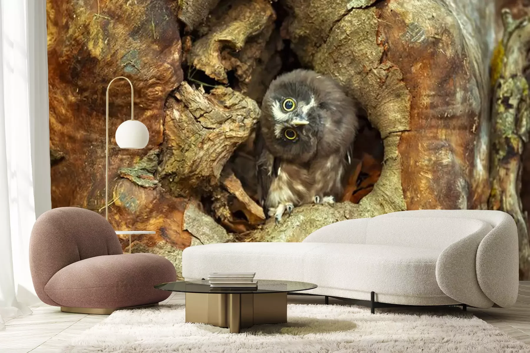 Fotobehang Uil in een hol