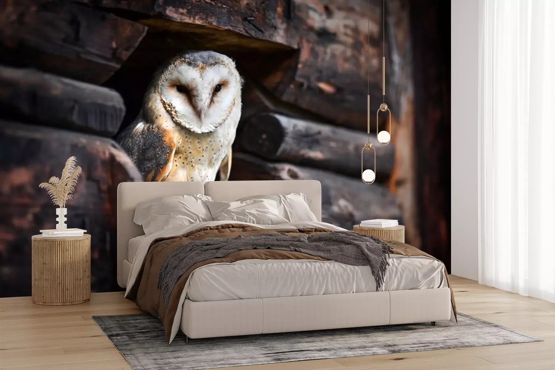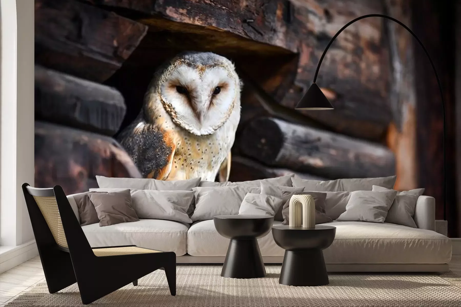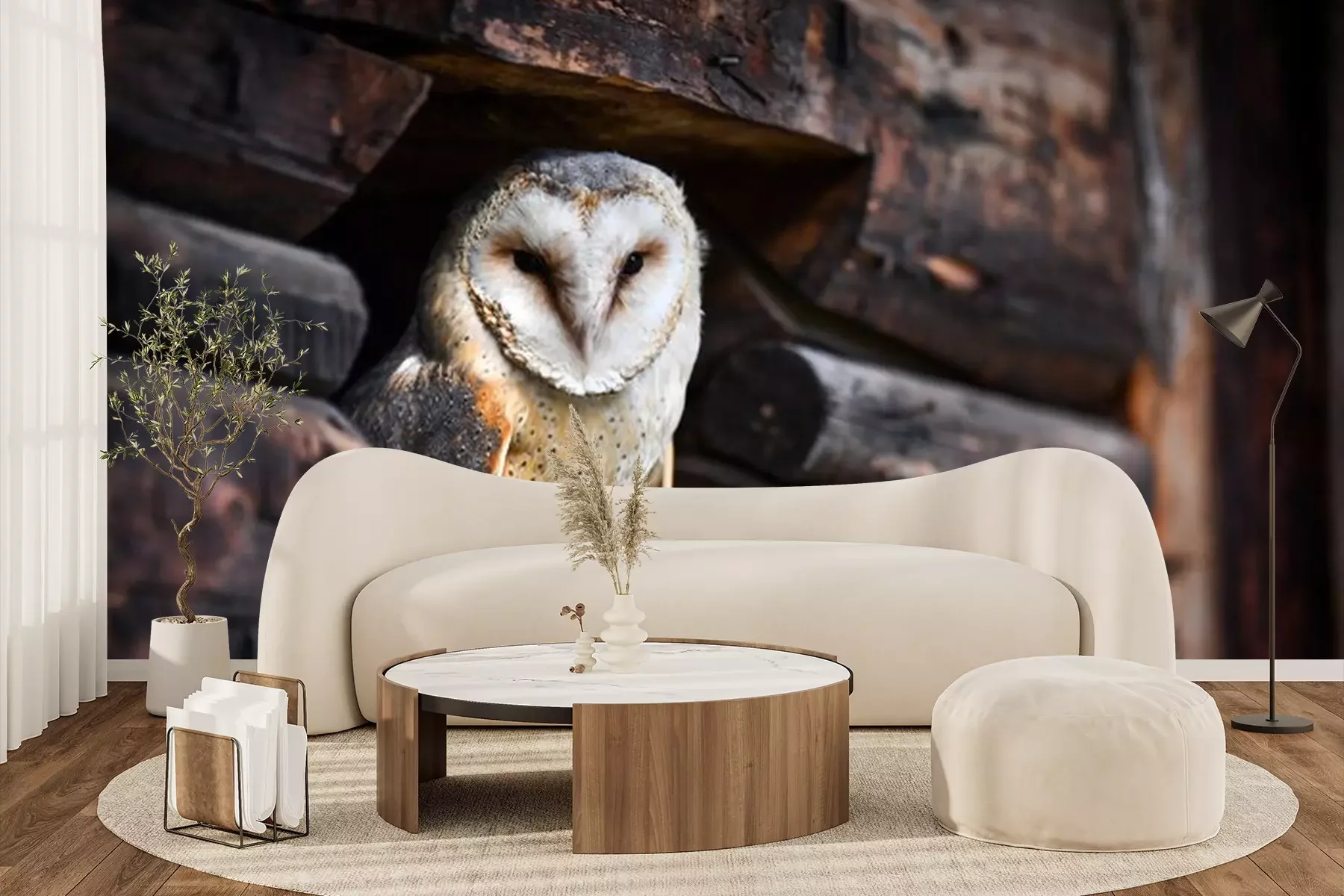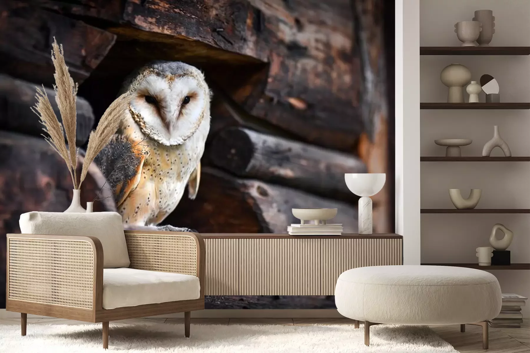 Fotobehang Uil in een houten dekking