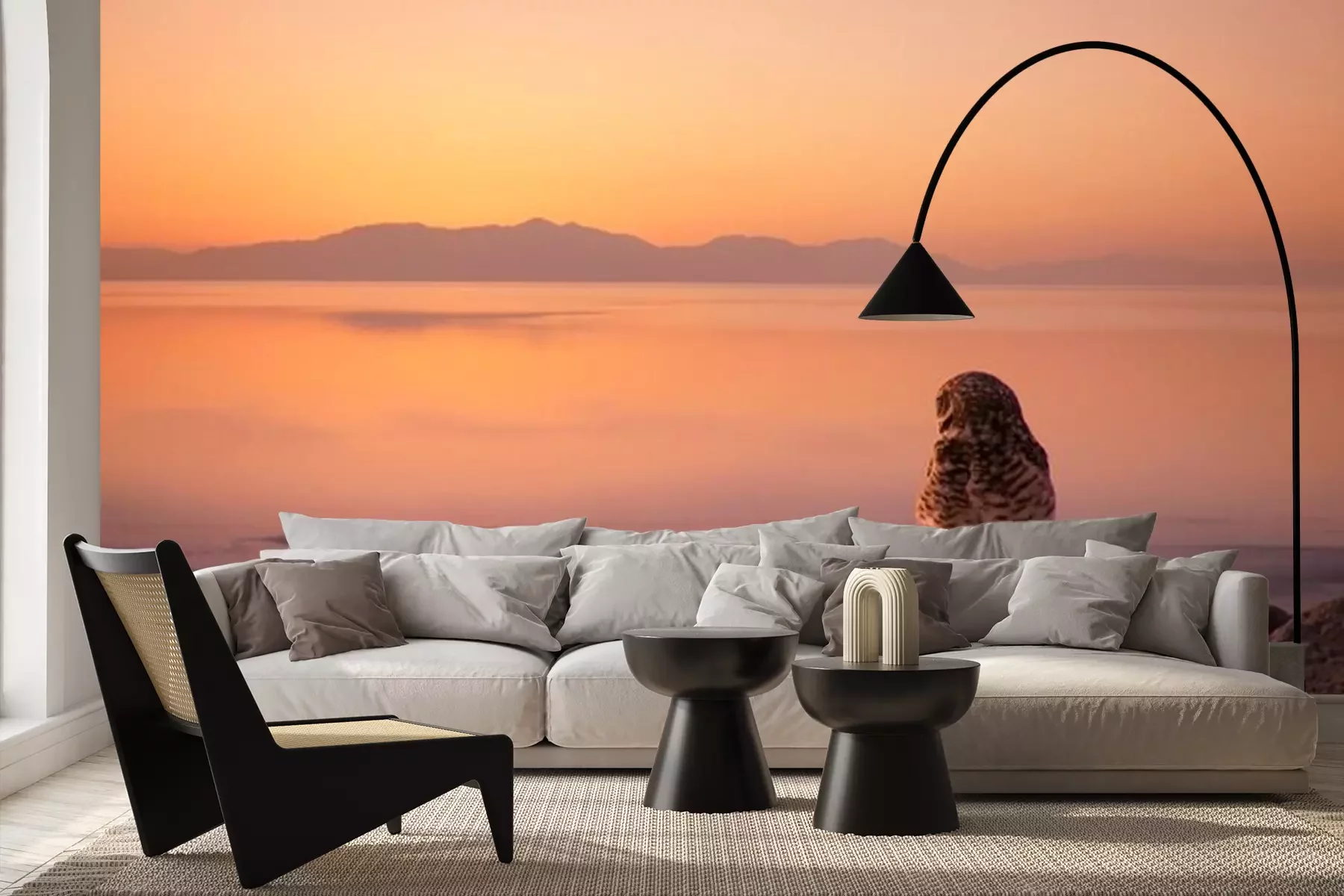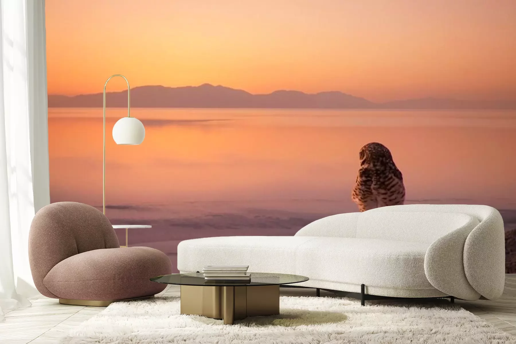 Fotobehang Uil op de achtergrond van de zonsondergang