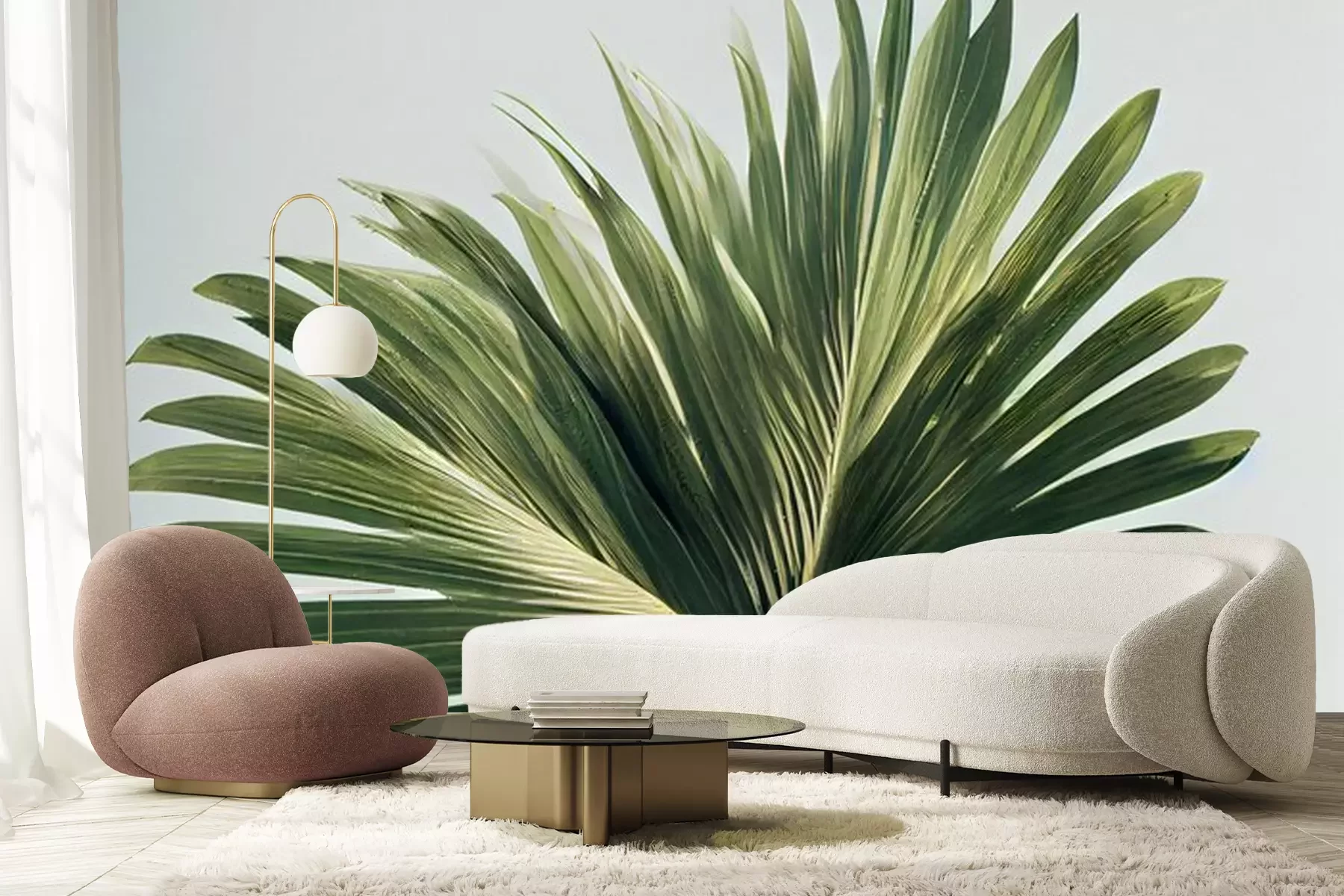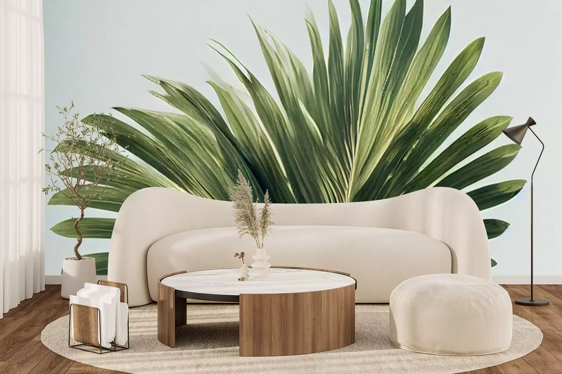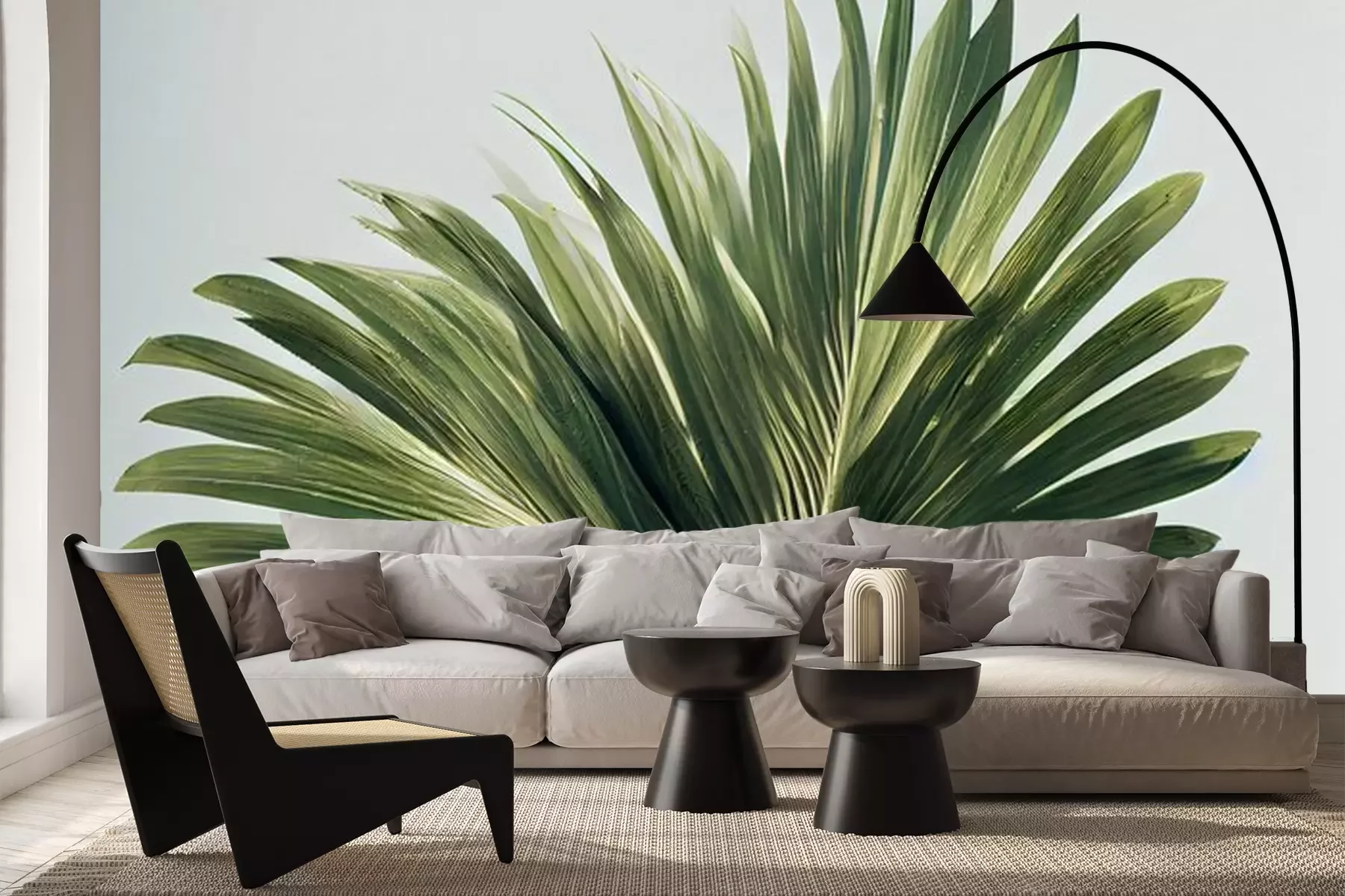 Fotobehang Uitspreidend blad op een grijze achtergrond
