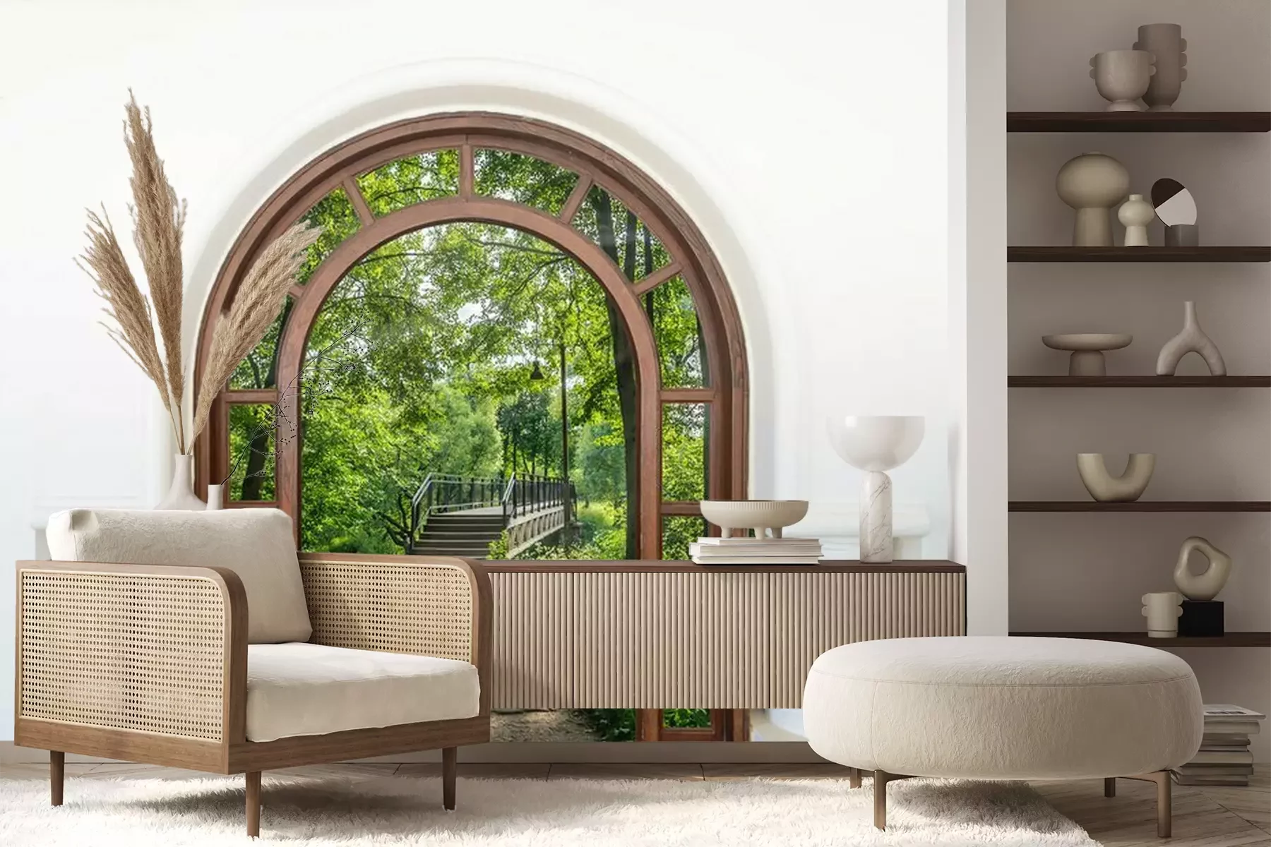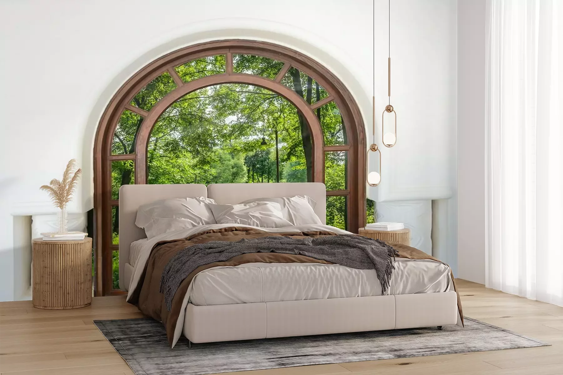 Het materiaal Premium+ is een gestructureerd vinyl op vlies met een gewicht van 255 g/m², dat kleine oneffenheden in de muur effectief camoufleert. De subtiele structuur van fijn zand geeft het oppervlak een exclusieve uitstraling, terwijl de halfmatte afwerking de diepte van de kleuren benadrukt. Het materiaal is dampdoorlatend, waardoor het ook in de keuken en badkamer kan worden gebruikt. De maximale breedte van één baan bedraagt 100 cm – bij grotere afmetingen wordt het fotobehang in meerdere gelijke banen verdeeld. De lijm wordt direct op de muur aangebracht en het behang wordt rand-aan-rand geplakt, wat zorgt voor een esthetisch resultaat zonder zichtbare naden. Het oppervlak kan gemakkelijk worden schoongemaakt door het voorzichtig af te nemen met een vochtige doek.