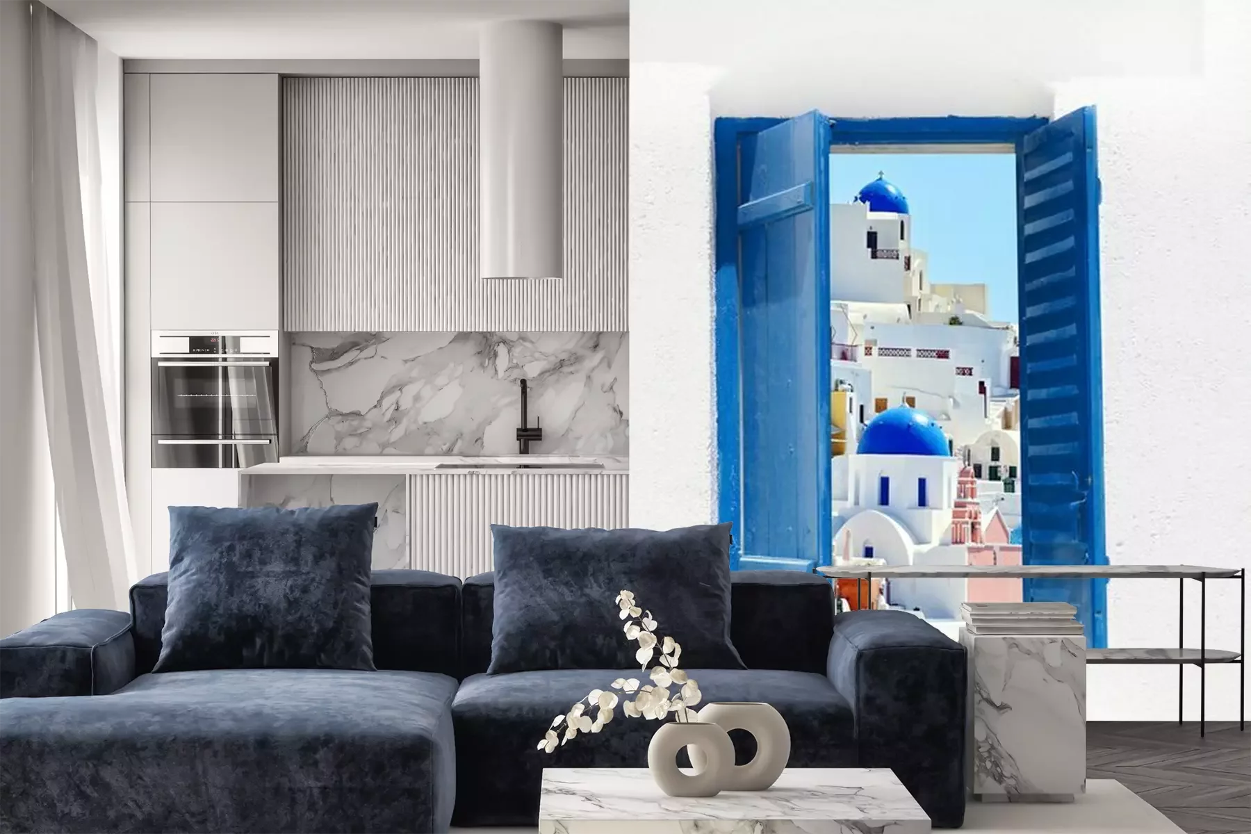 Het materiaal Premium is een glad vinyl op vlies, dat bestand is tegen uitrekken en vervorming. Het is dampdoorlatend – de muren kunnen vrij ademen – waardoor het geschikt is voor gebruik in de keuken en badkamer. Bij vervuiling kan het materiaal worden afgenomen met een vochtige doek. De maximale breedte van één baan bedraagt 95 of 105 cm, afhankelijk van de beschikbaarheid. Montage vindt plaats met de rand-aan-rand methode, wat een esthetisch resultaat zonder zichtbare naden oplevert. Omdat de lijm rechtstreeks op de muur wordt aangebracht, verloopt de installatie van het fotobehang snel en eenvoudig.