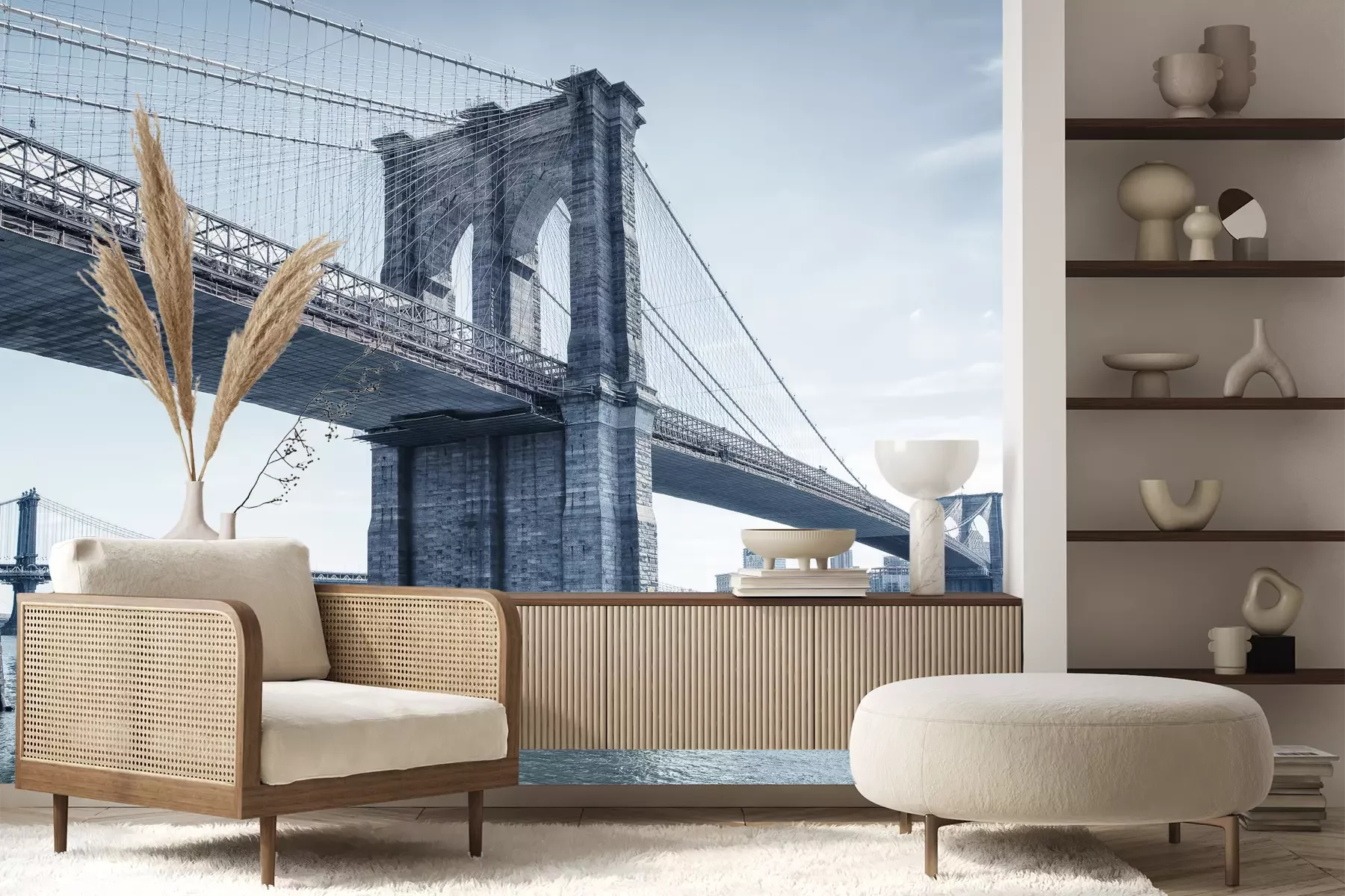 Het materiaal Premium+ is een gestructureerd vinyl op vlies met een gewicht van 255 g/m², dat kleine oneffenheden in de muur effectief camoufleert. De subtiele structuur van fijn zand geeft het oppervlak een exclusieve uitstraling, terwijl de halfmatte afwerking de diepte van de kleuren benadrukt. Het materiaal is dampdoorlatend, waardoor het ook in de keuken en badkamer kan worden gebruikt. De maximale breedte van één baan bedraagt 100 cm – bij grotere afmetingen wordt het fotobehang in meerdere gelijke banen verdeeld. De lijm wordt direct op de muur aangebracht en het behang wordt rand-aan-rand geplakt, wat zorgt voor een esthetisch resultaat zonder zichtbare naden. Het oppervlak kan gemakkelijk worden schoongemaakt door het voorzichtig af te nemen met een vochtige doek.