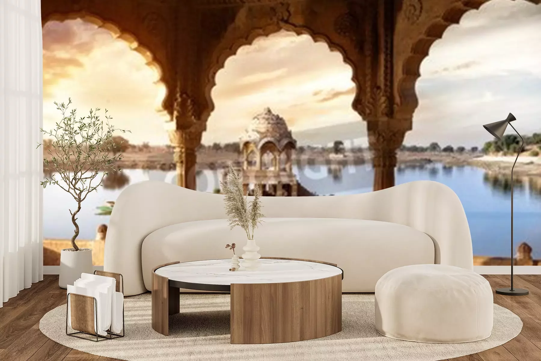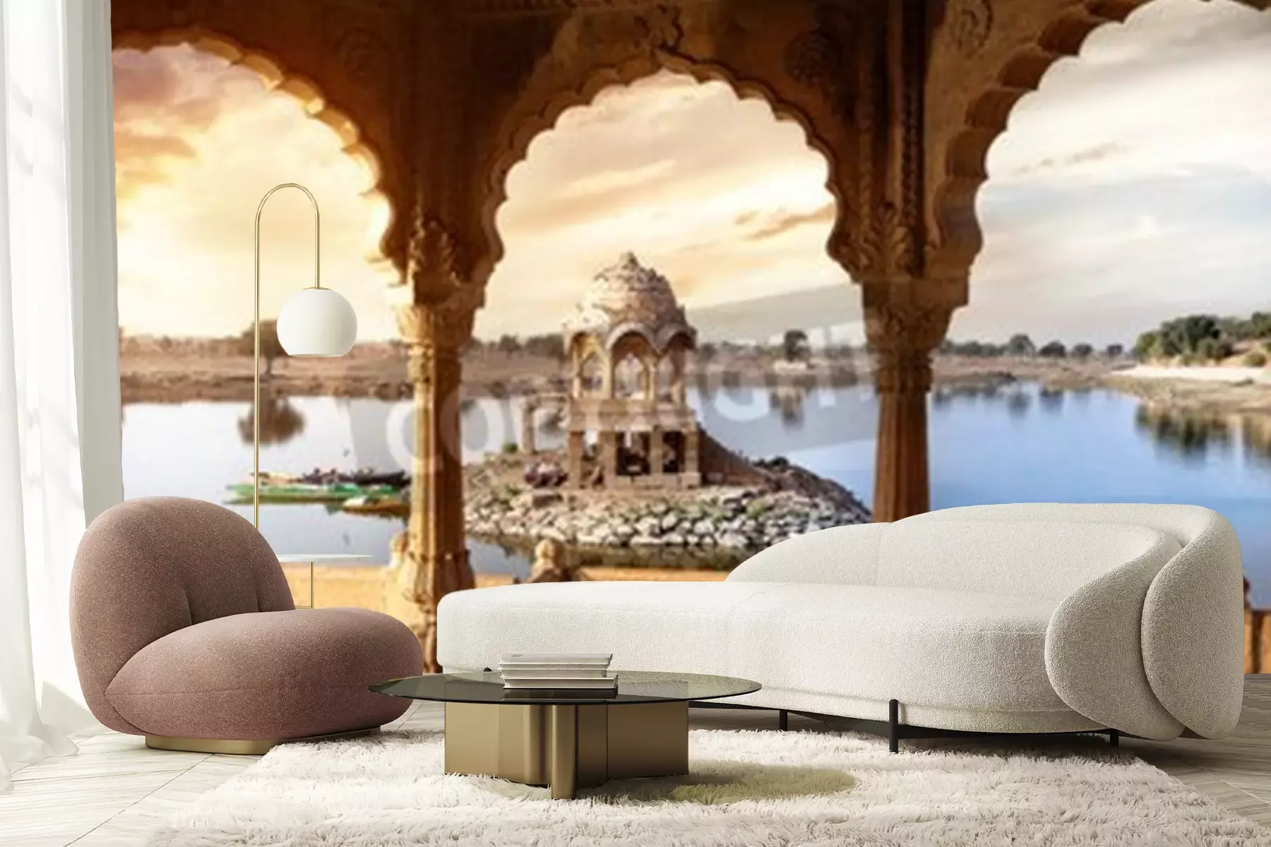 Fotobehang Uitzicht op de woestijn vanuit een tempel