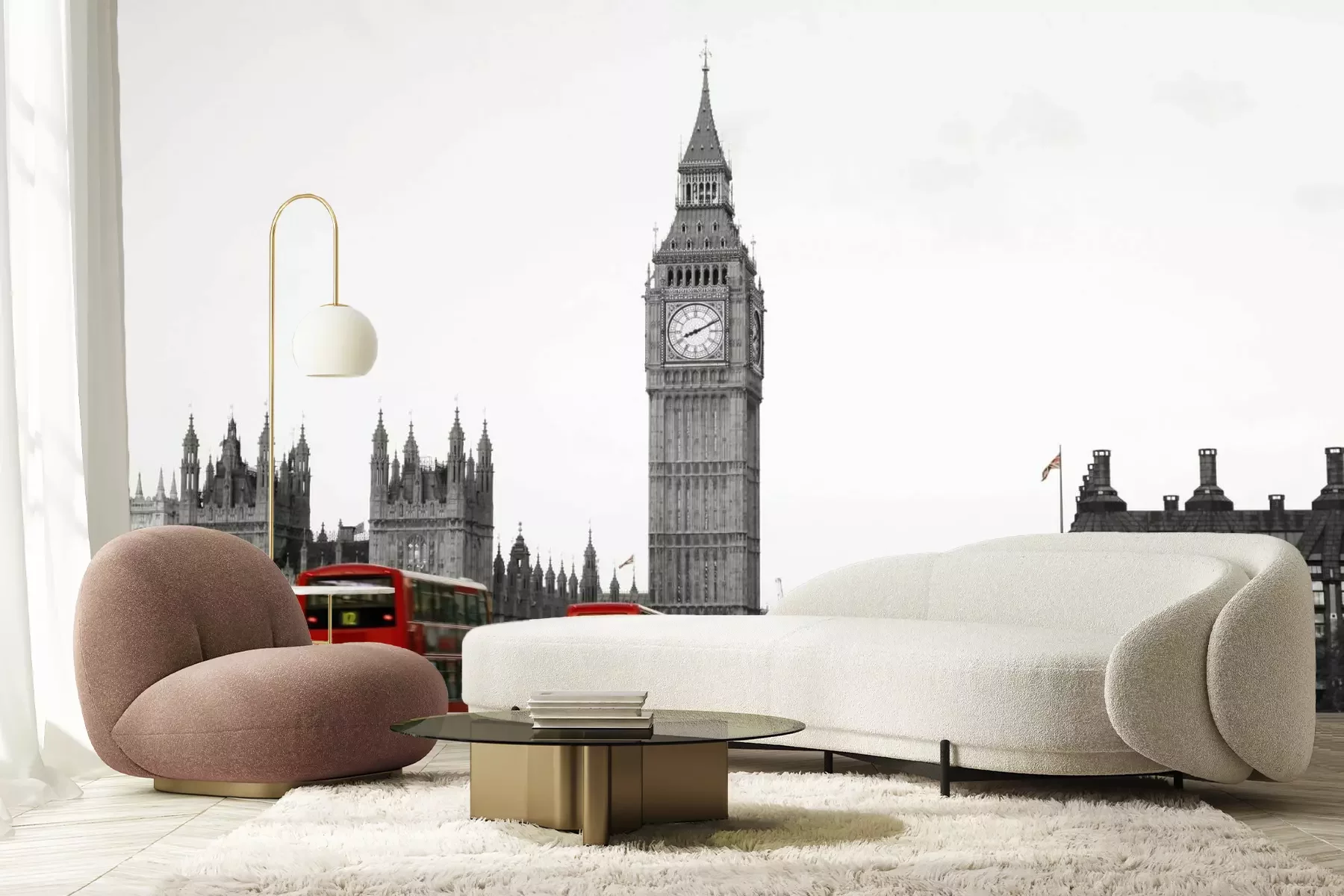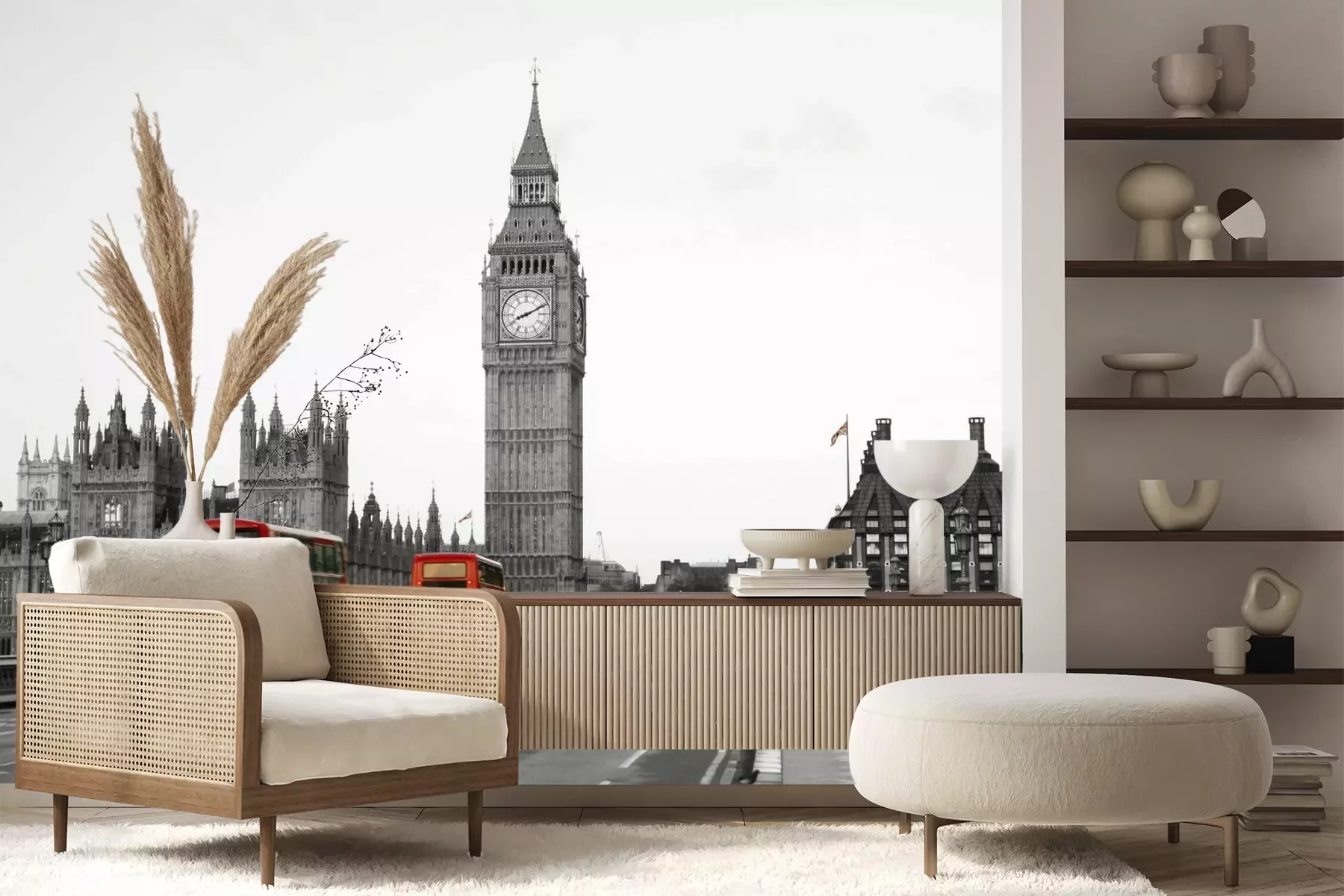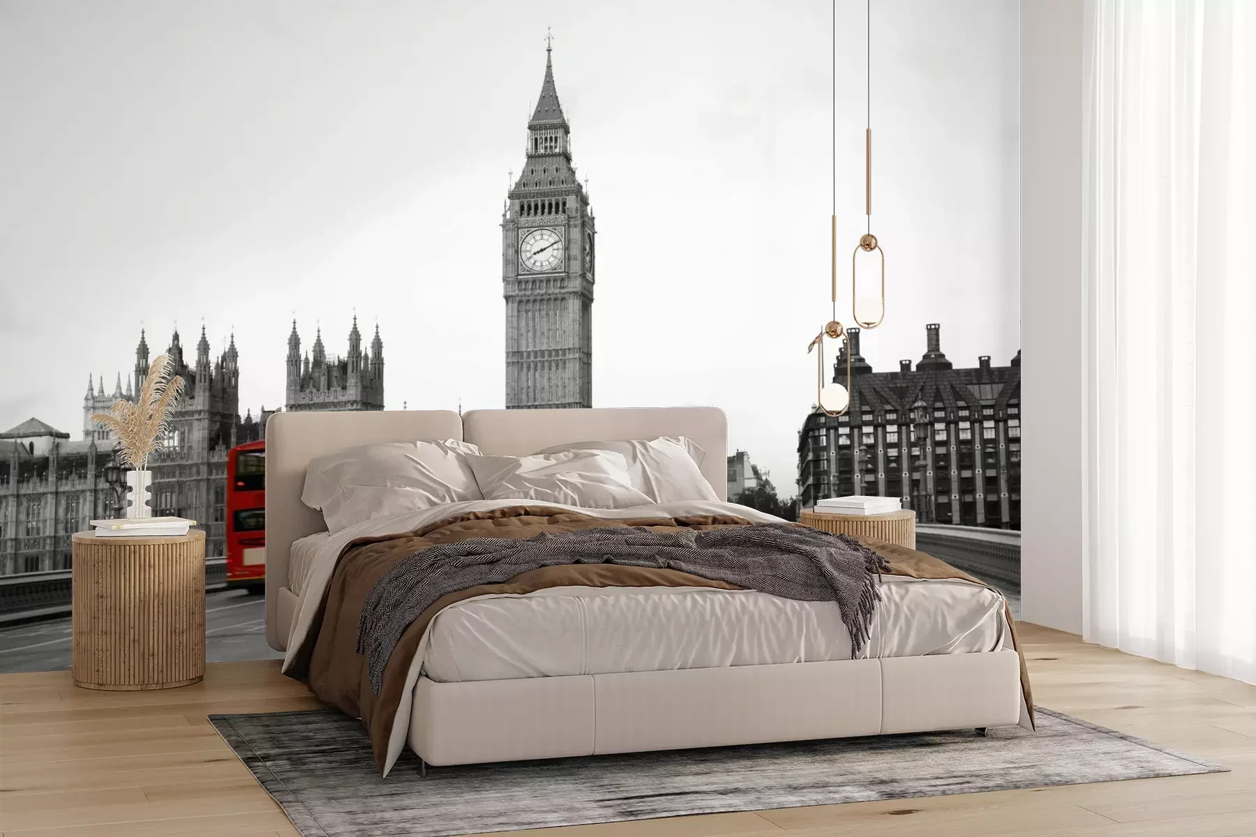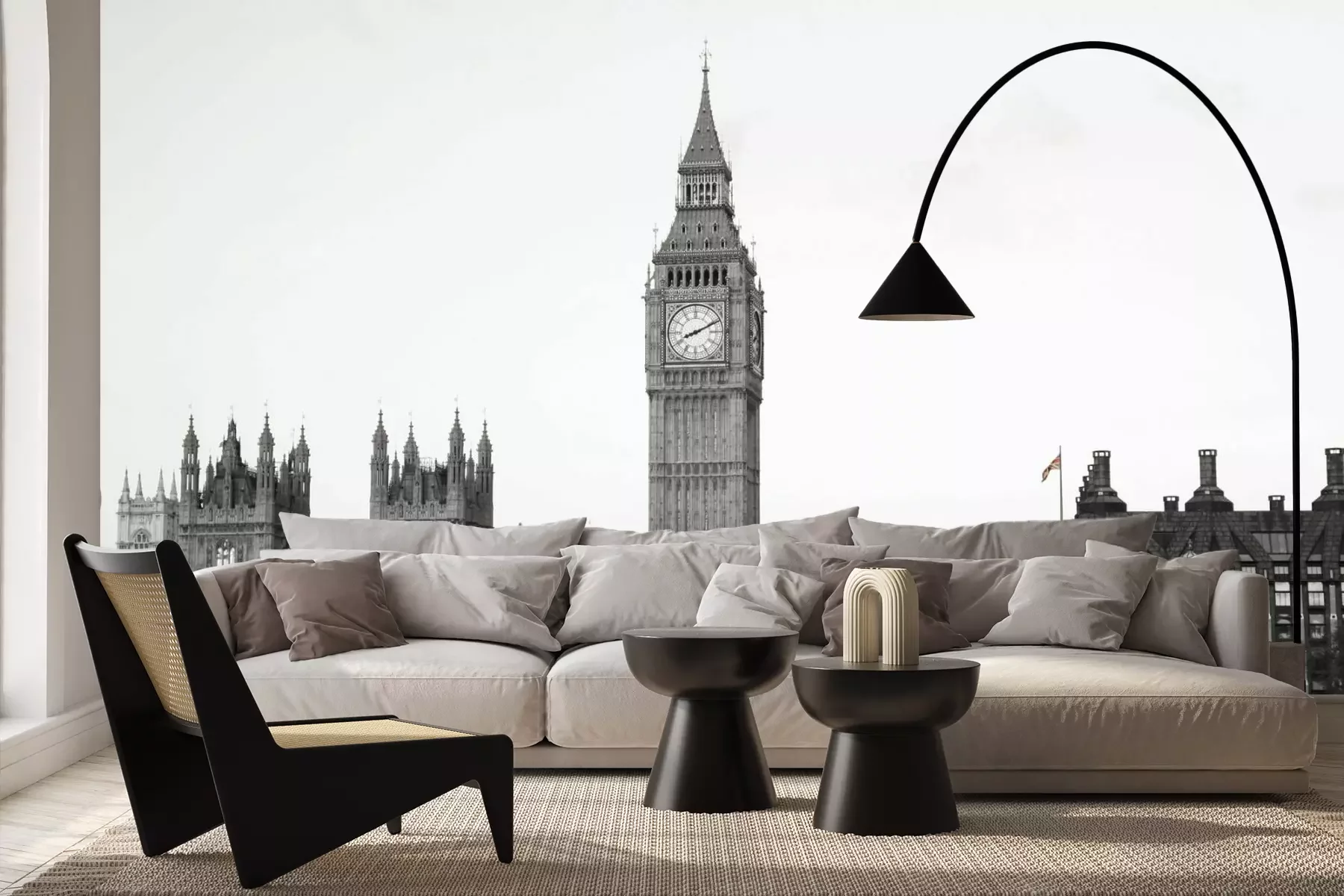 Londen in de mist in zwart-witProbleemloze bezorging verzorgd door vertrouwde vervoerders