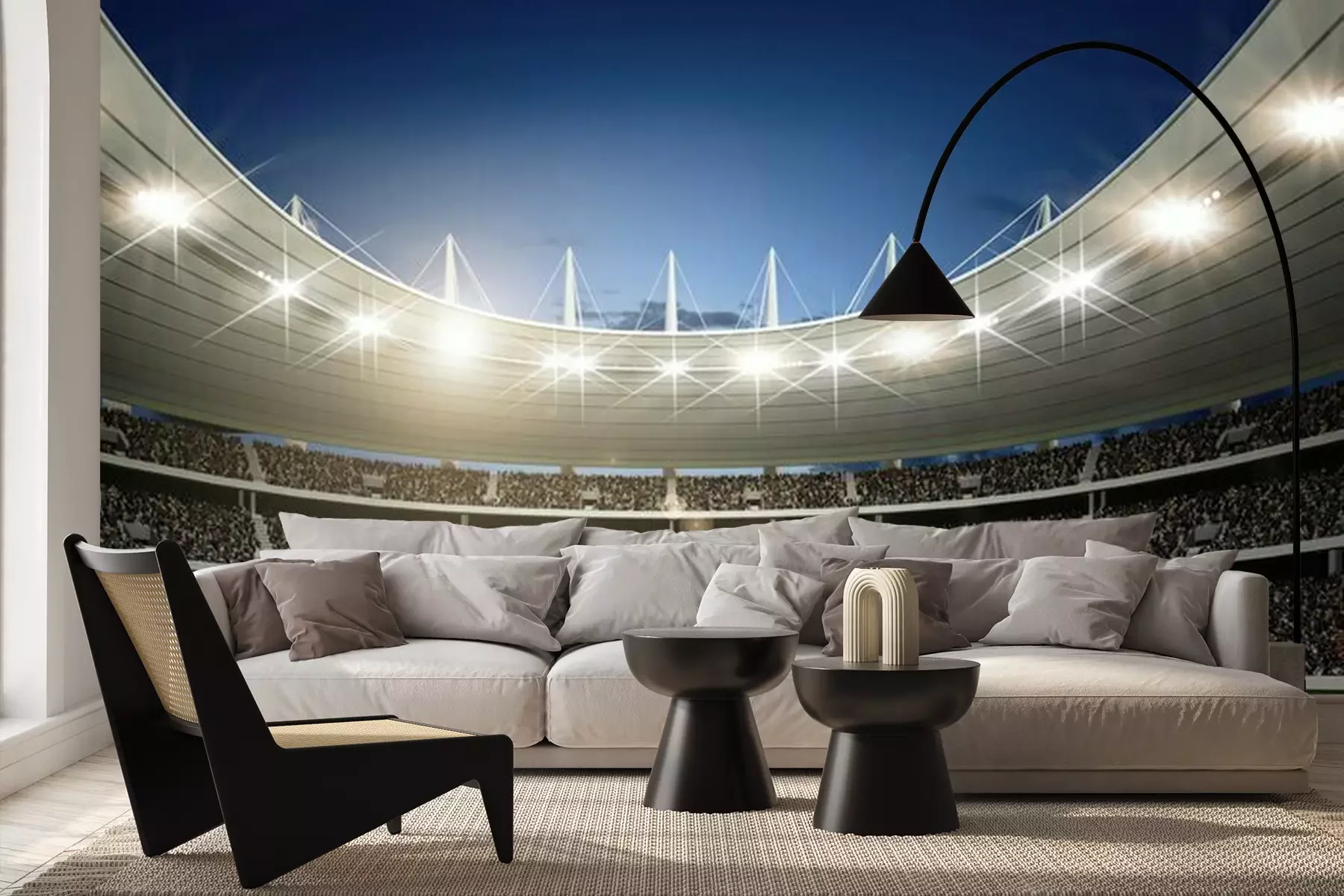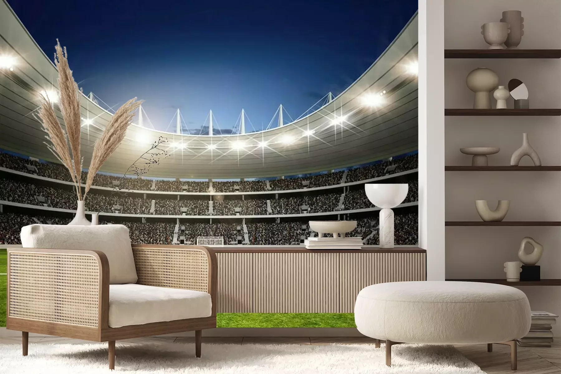 Een voetbalveld verlicht door schijnwerpersFotobehang