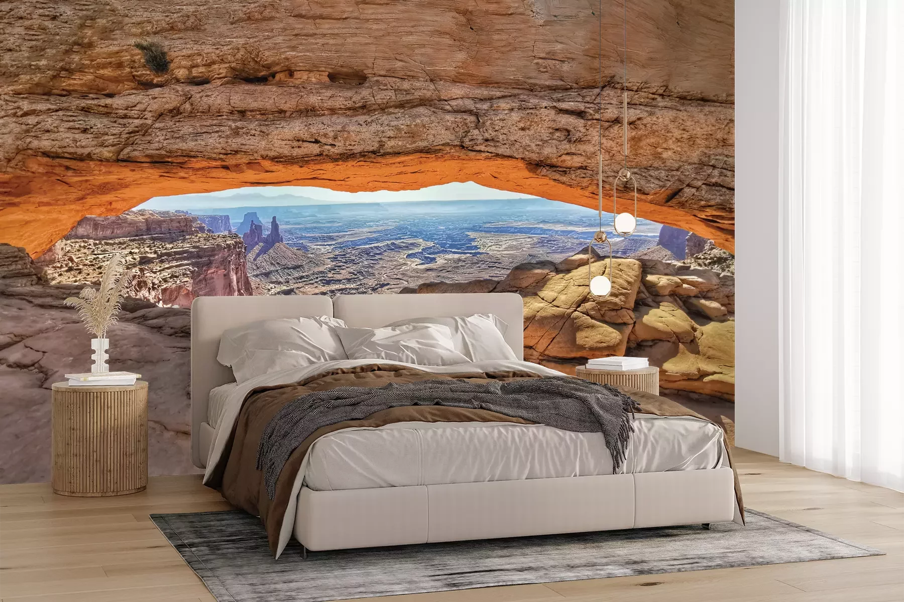 Het materiaal Premium+ is een gestructureerd vinyl op vlies met een gewicht van 255 g/m², dat kleine oneffenheden in de muur effectief camoufleert. De subtiele structuur van fijn zand geeft het oppervlak een exclusieve uitstraling, terwijl de halfmatte afwerking de diepte van de kleuren benadrukt. Het materiaal is dampdoorlatend, waardoor het ook in de keuken en badkamer kan worden gebruikt. De maximale breedte van één baan bedraagt 100 cm – bij grotere afmetingen wordt het fotobehang in meerdere gelijke banen verdeeld. De lijm wordt direct op de muur aangebracht en het behang wordt rand-aan-rand geplakt, wat zorgt voor een esthetisch resultaat zonder zichtbare naden. Het oppervlak kan gemakkelijk worden schoongemaakt door het voorzichtig af te nemen met een vochtige doek.