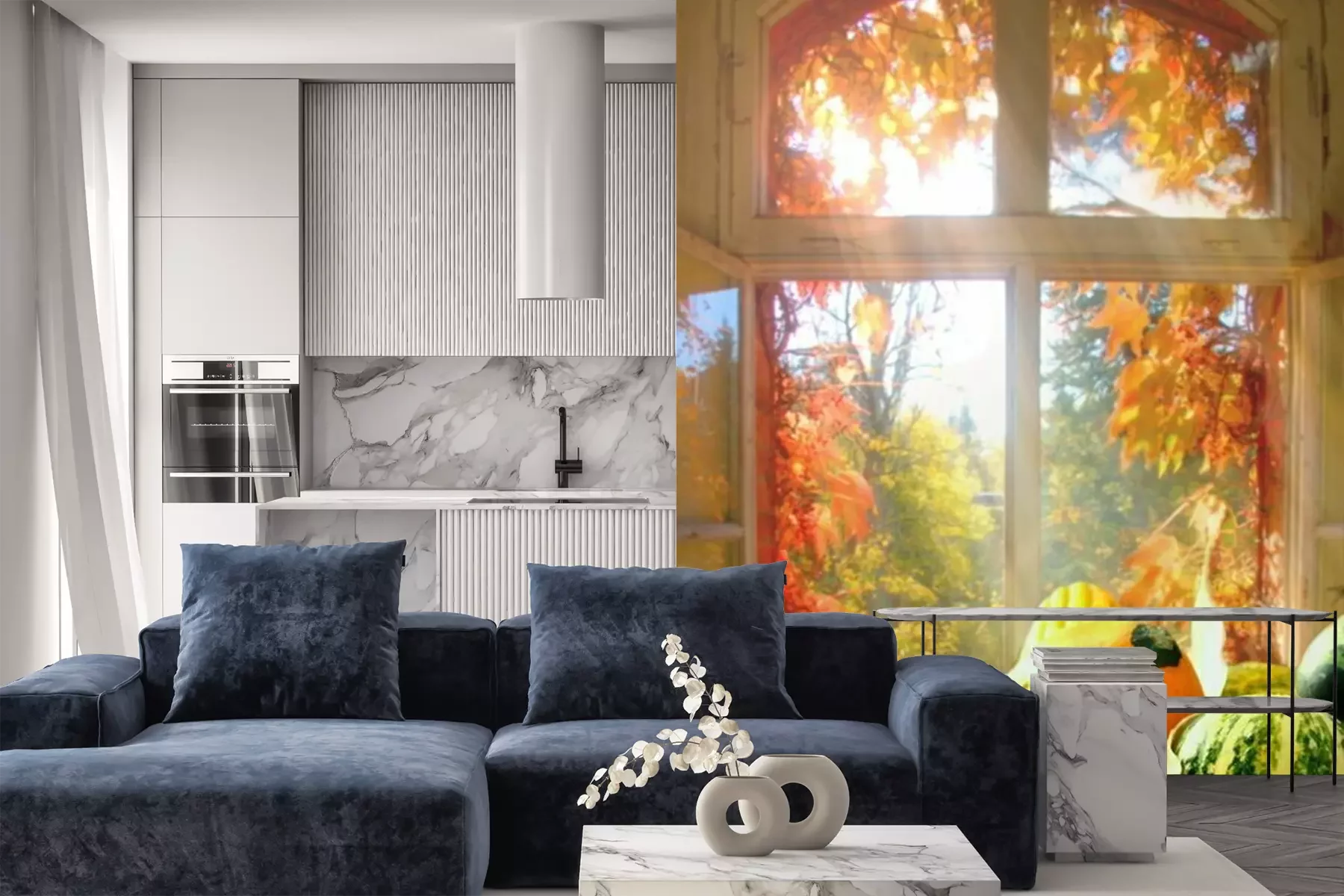 Het materiaal Premium+ is een gestructureerd vinyl op vlies met een gewicht van 255 g/m², dat kleine oneffenheden in de muur effectief camoufleert. De subtiele structuur van fijn zand geeft het oppervlak een exclusieve uitstraling, terwijl de halfmatte afwerking de diepte van de kleuren benadrukt. Het materiaal is dampdoorlatend, waardoor het ook in de keuken en badkamer kan worden gebruikt. De maximale breedte van één baan bedraagt 100 cm – bij grotere afmetingen wordt het fotobehang in meerdere gelijke banen verdeeld. De lijm wordt direct op de muur aangebracht en het behang wordt rand-aan-rand geplakt, wat zorgt voor een esthetisch resultaat zonder zichtbare naden. Het oppervlak kan gemakkelijk worden schoongemaakt door het voorzichtig af te nemen met een vochtige doek.