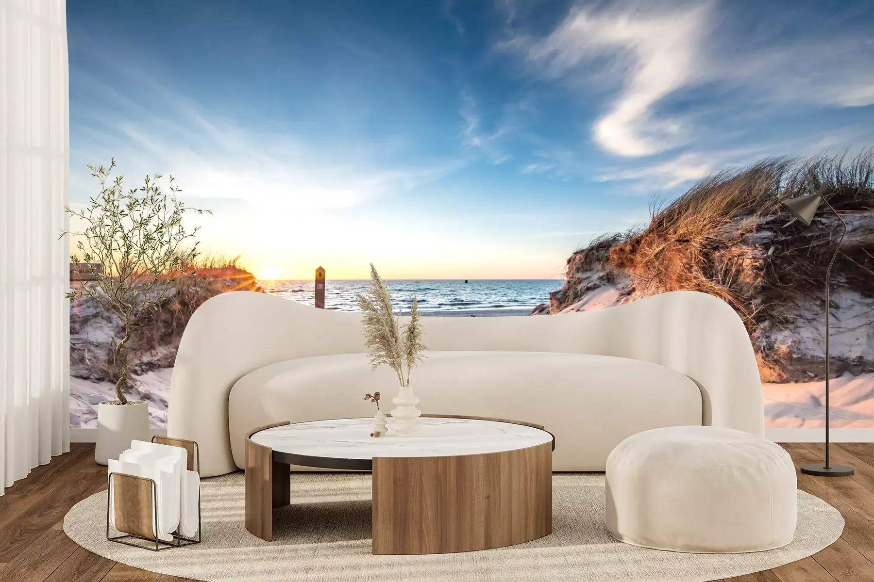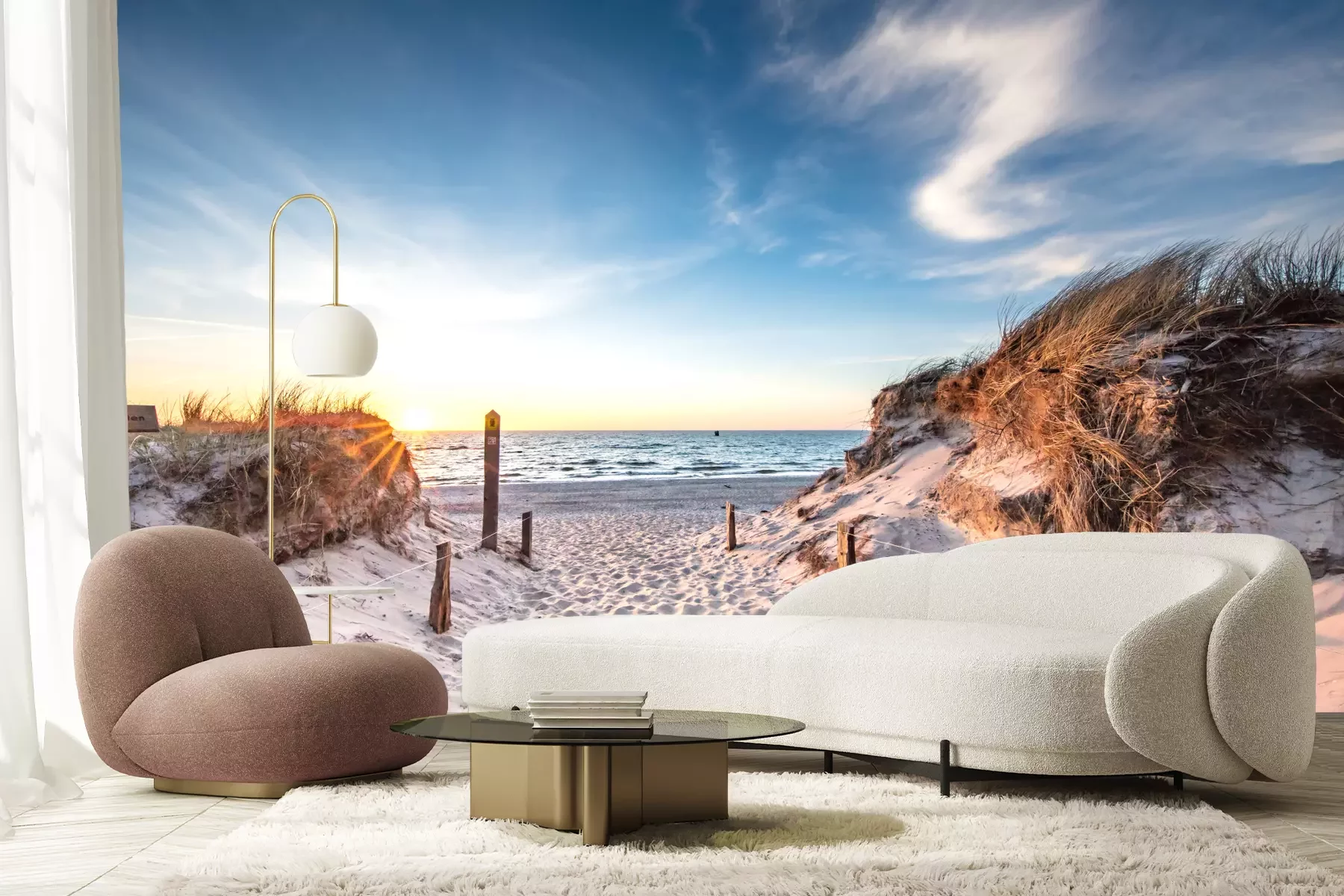 Het materiaal Premium+ is een gestructureerd vinyl op vlies met een gewicht van 255 g/m², dat kleine oneffenheden in de muur effectief camoufleert. De subtiele structuur van fijn zand geeft het oppervlak een exclusieve uitstraling, terwijl de halfmatte afwerking de diepte van de kleuren benadrukt. Het materiaal is dampdoorlatend, waardoor het ook in de keuken en badkamer kan worden gebruikt. De maximale breedte van één baan bedraagt 100 cm – bij grotere afmetingen wordt het fotobehang in meerdere gelijke banen verdeeld. De lijm wordt direct op de muur aangebracht en het behang wordt rand-aan-rand geplakt, wat zorgt voor een esthetisch resultaat zonder zichtbare naden. Het oppervlak kan gemakkelijk worden schoongemaakt door het voorzichtig af te nemen met een vochtige doek.
