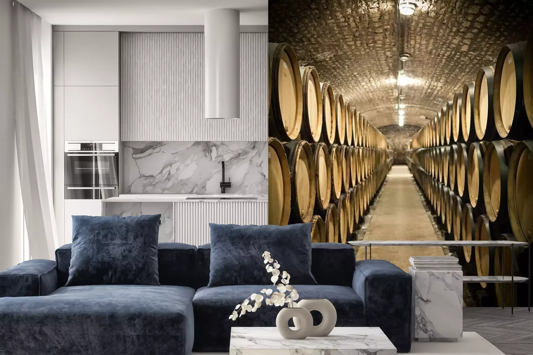 Het materiaal Premium is een glad vinyl op vlies, dat bestand is tegen uitrekken en vervorming. Het is dampdoorlatend – de muren kunnen vrij ademen – waardoor het geschikt is voor gebruik in de keuken en badkamer. Bij vervuiling kan het materiaal worden afgenomen met een vochtige doek. De maximale breedte van één baan bedraagt 95 of 105 cm, afhankelijk van de beschikbaarheid. Montage vindt plaats met de rand-aan-rand methode, wat een esthetisch resultaat zonder zichtbare naden oplevert. Omdat de lijm rechtstreeks op de muur wordt aangebracht, verloopt de installatie van het fotobehang snel en eenvoudig.