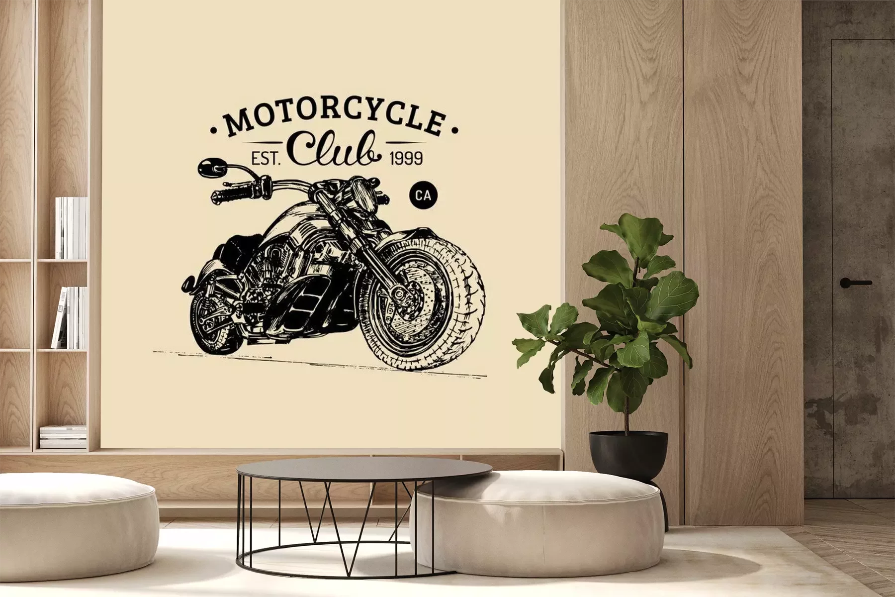 Fotobehang Vector motor reclame poster. Geschetste illustratie voor MC badge.Bike logo voor aangepaste bedrijf, chopper winkel etc.