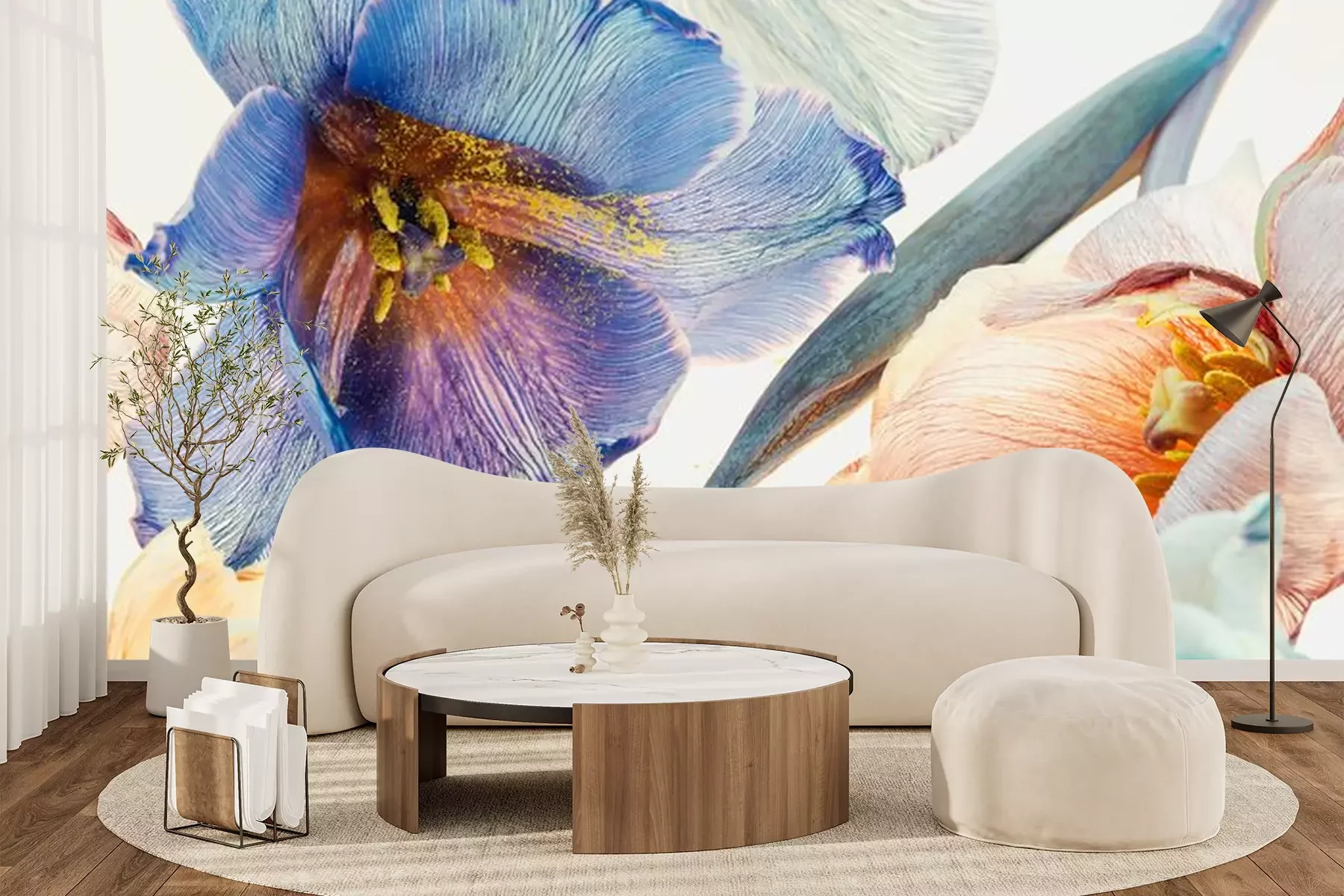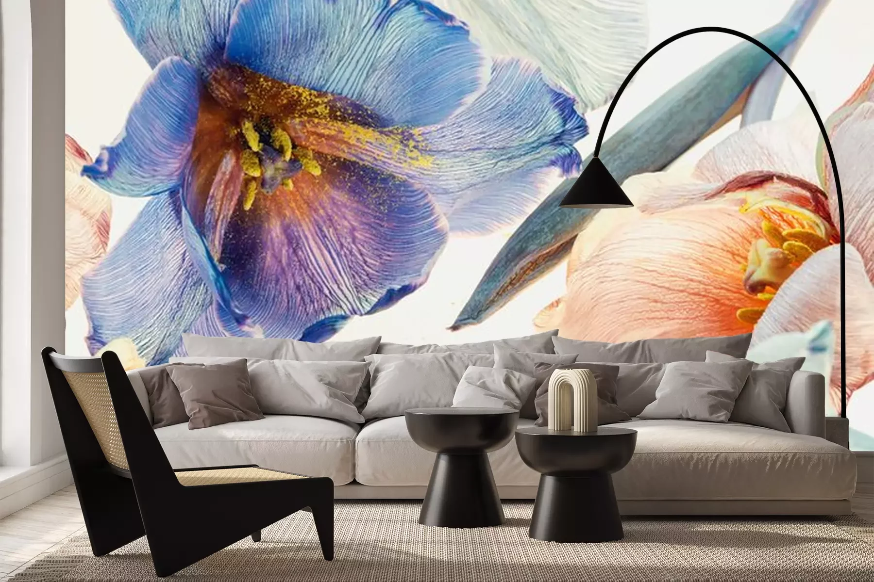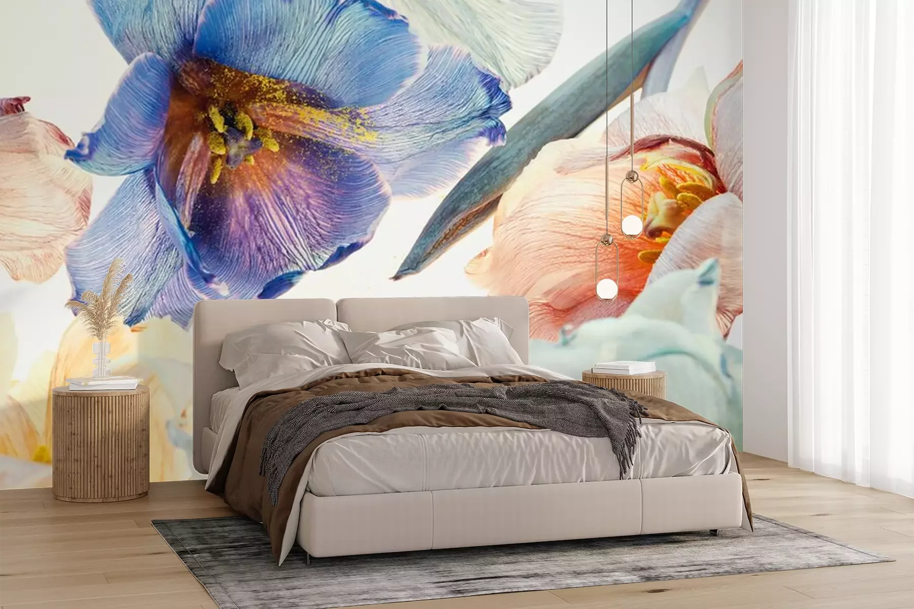 Fotobehang Veelkleurige tulpen op lichte achtergrond